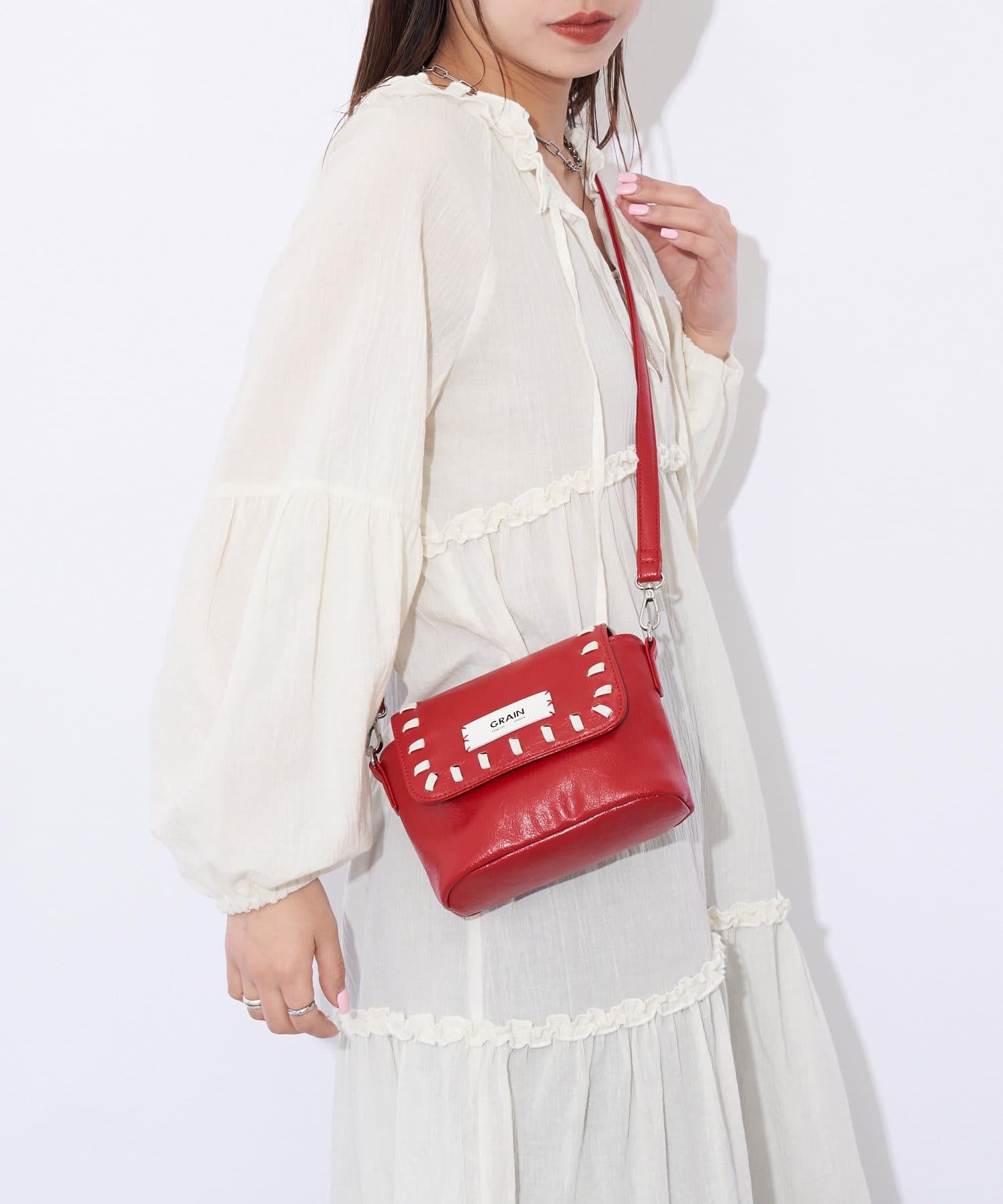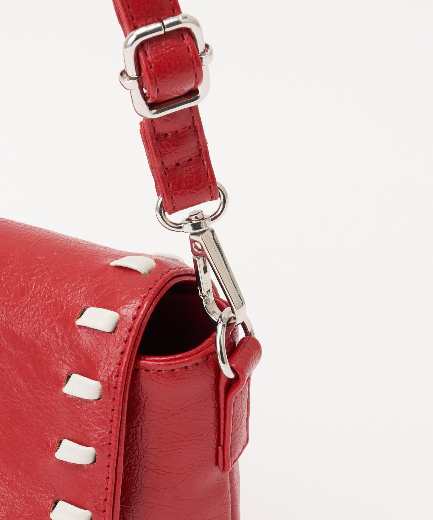 光亮的仿皮材質和包蓋上的縫線設計為這款包增添了一絲微妙的個性。