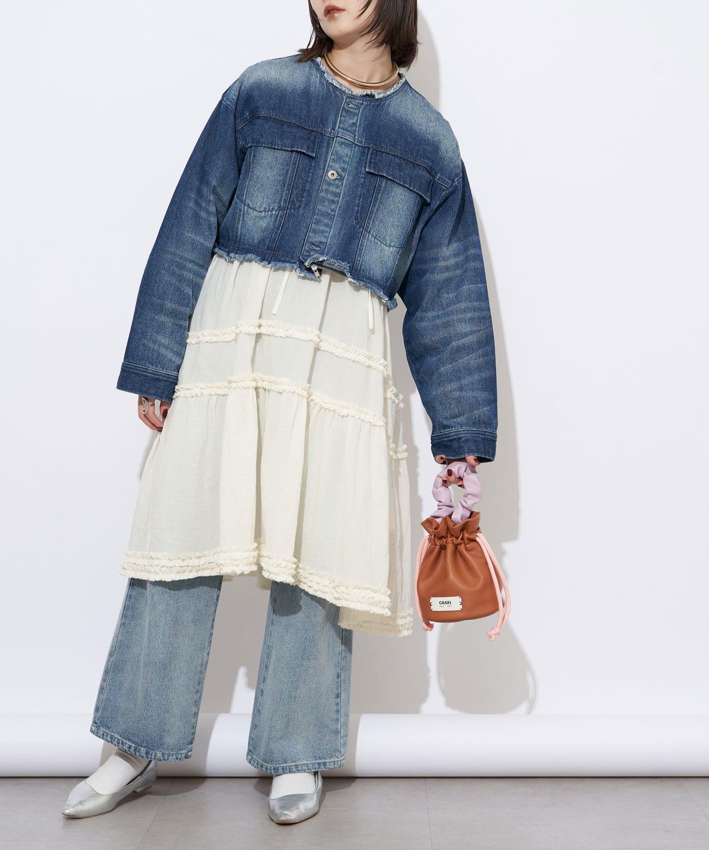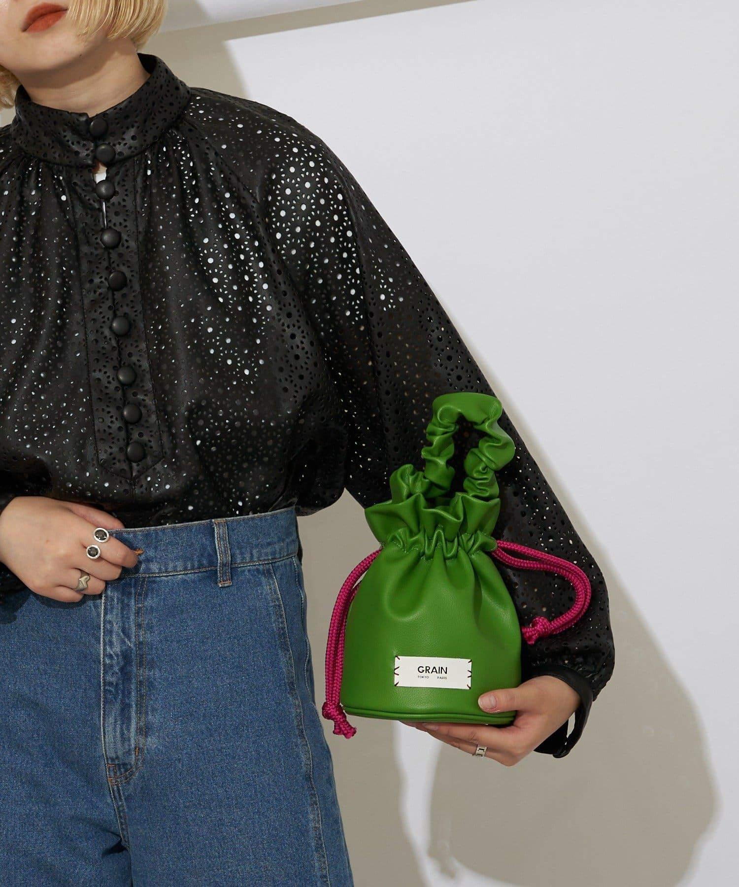 【GRAIN/穀物】褶皺手柄束口圓形包包 #Loon
