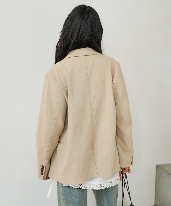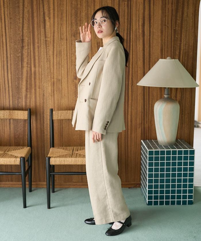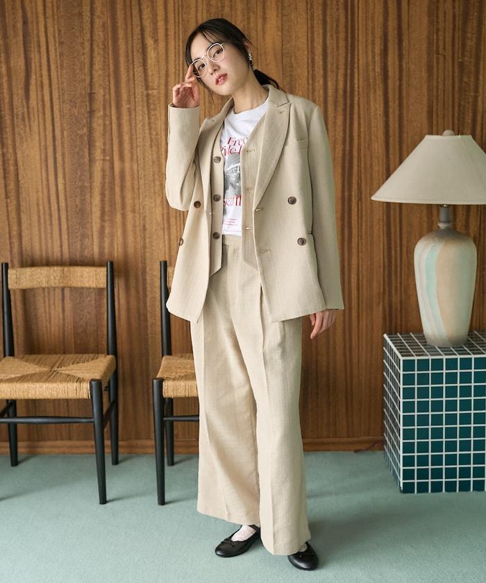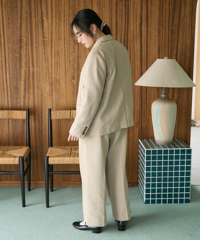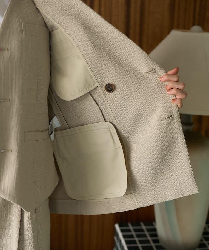 為了營造出復古的感覺,面料用較粗的線表現出凹凸感,給人一種略帶休閒的印象。