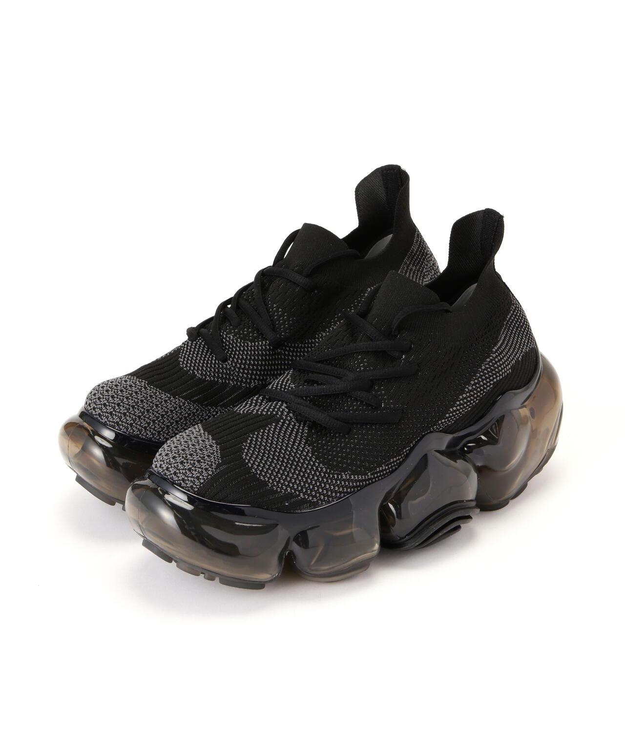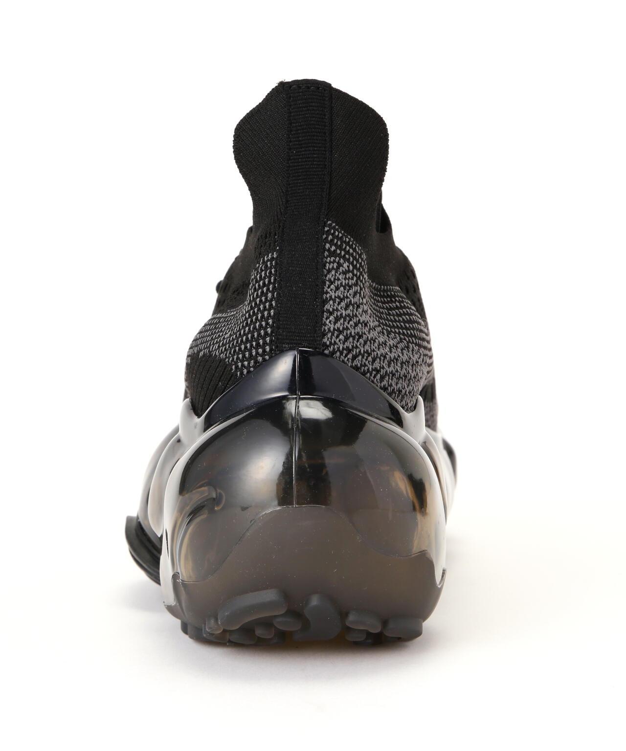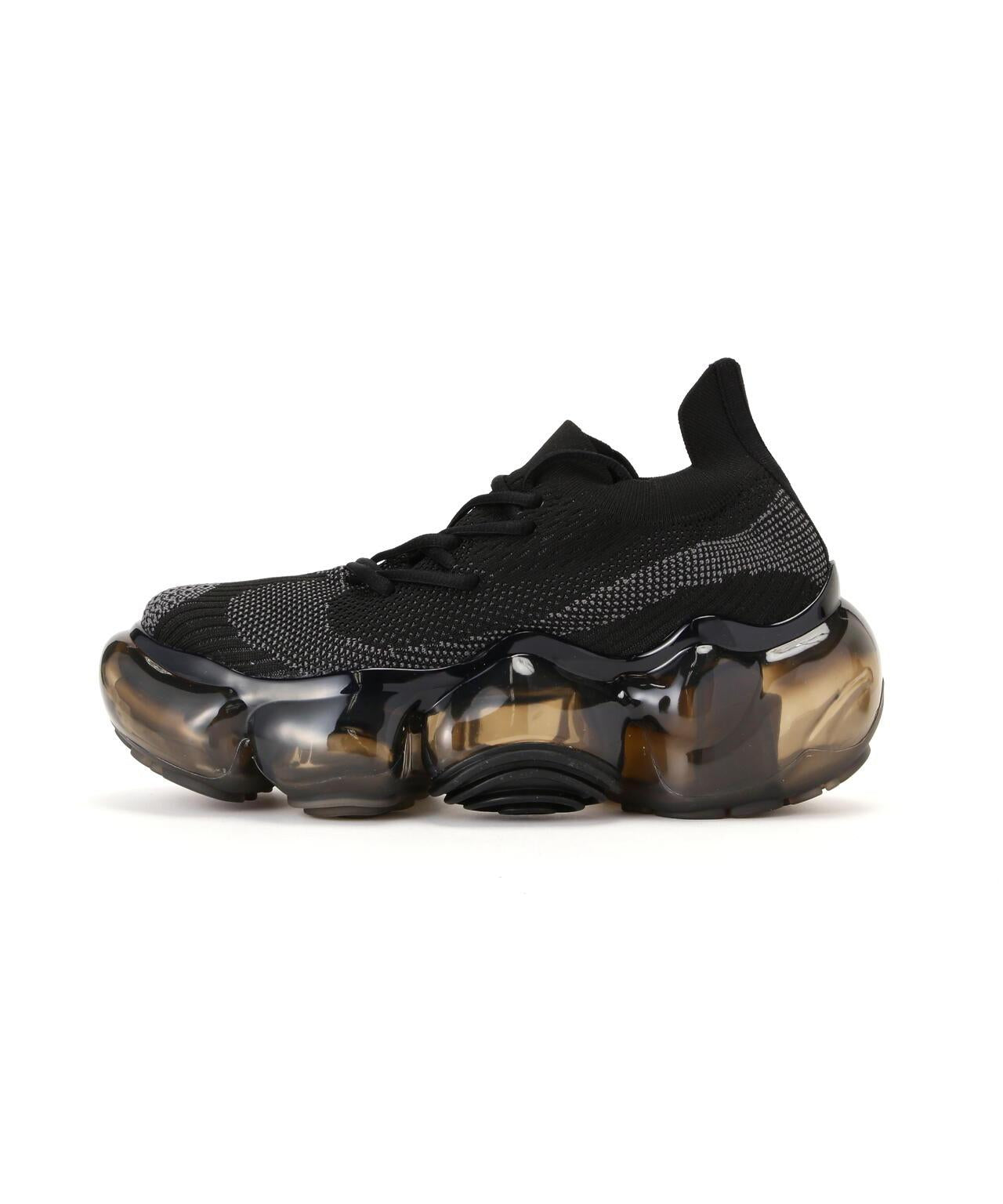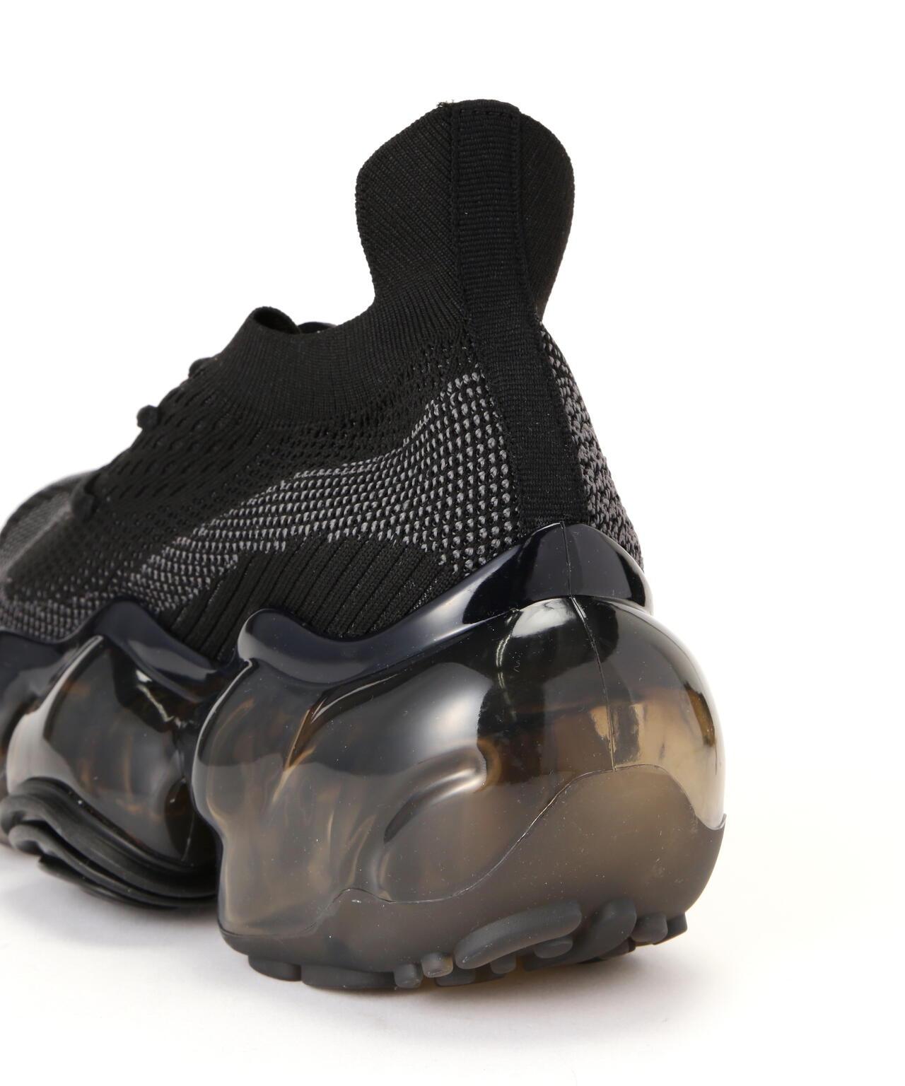 這雙鞋看起來就像踩在一個巨大的凝膠形狀的東西上。 鞋底本應堅固到足以支撐整個身體,但卻被做成了流體和柔軟的樣子,這種設計讓人感到癢癢的。外側的橡膠部件為設計增添了亮點。鞋面纖細,與寬大的鞋底形成鮮明對比。尖銳的外形、腳背和從腳趾到腳跟的平緩坡度給人一種優雅、修長的印象,這是現有運動鞋所沒有的。針織鞋面上不對稱的鞋孔和圖案延續了抽象的外底設計。鞋跟高度約為 7 厘米