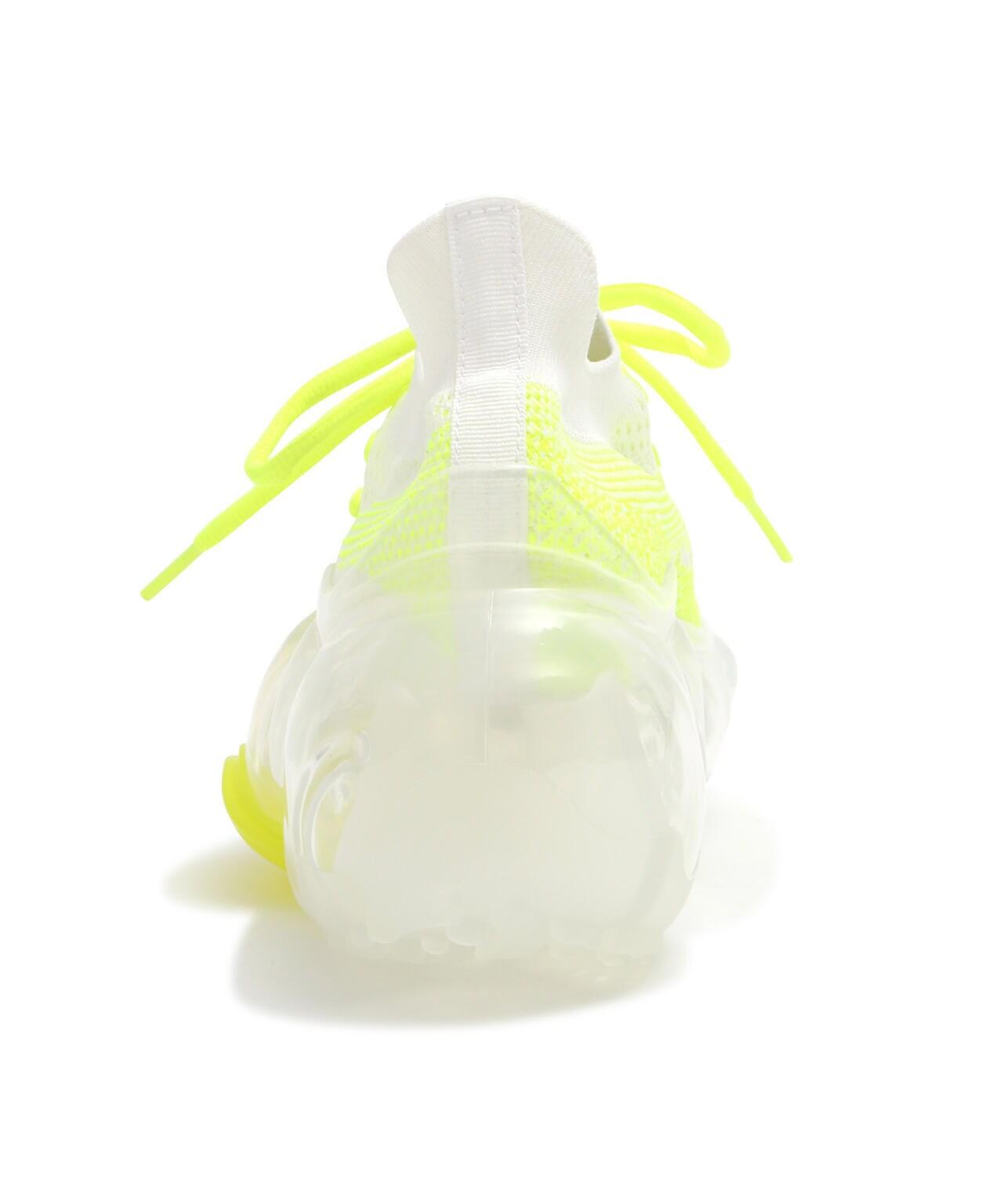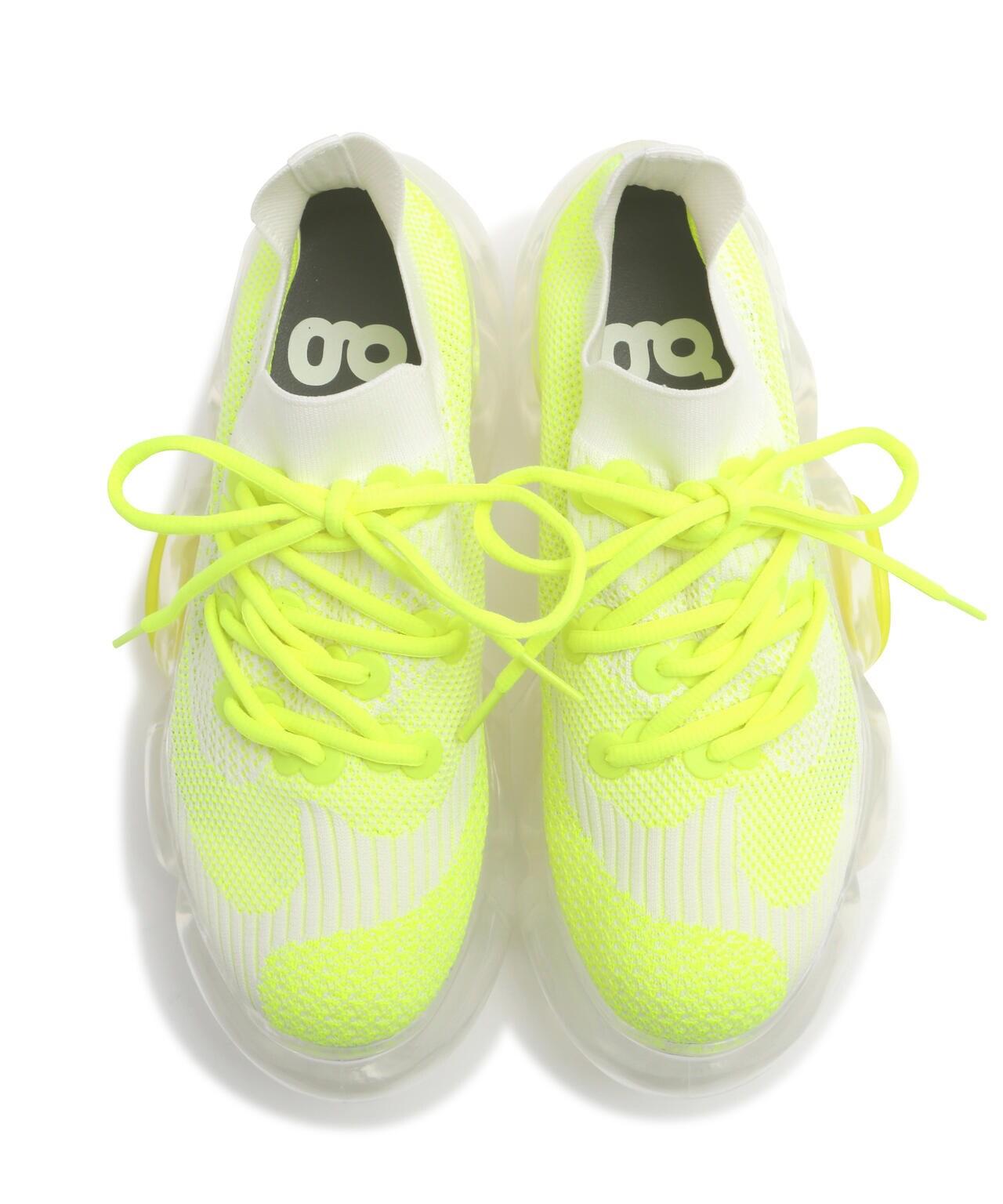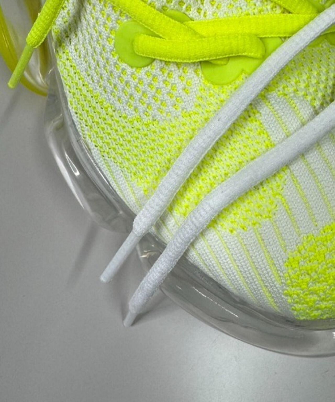 ROYAL FLASH 特別定製產品--基於新款流行的 MOOPIE 型號。與之前的款式不同,這款新鞋有黃色的橡膠鞋帶孔。熒光黃色的孔由熒光黃色和白色的組合針織物點綴。
