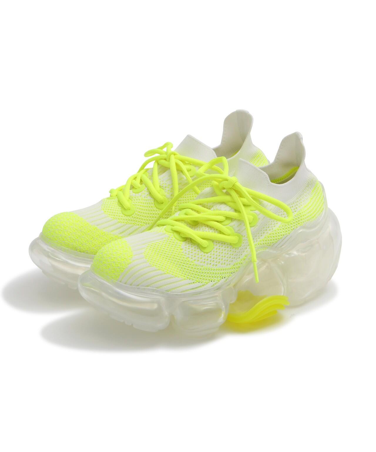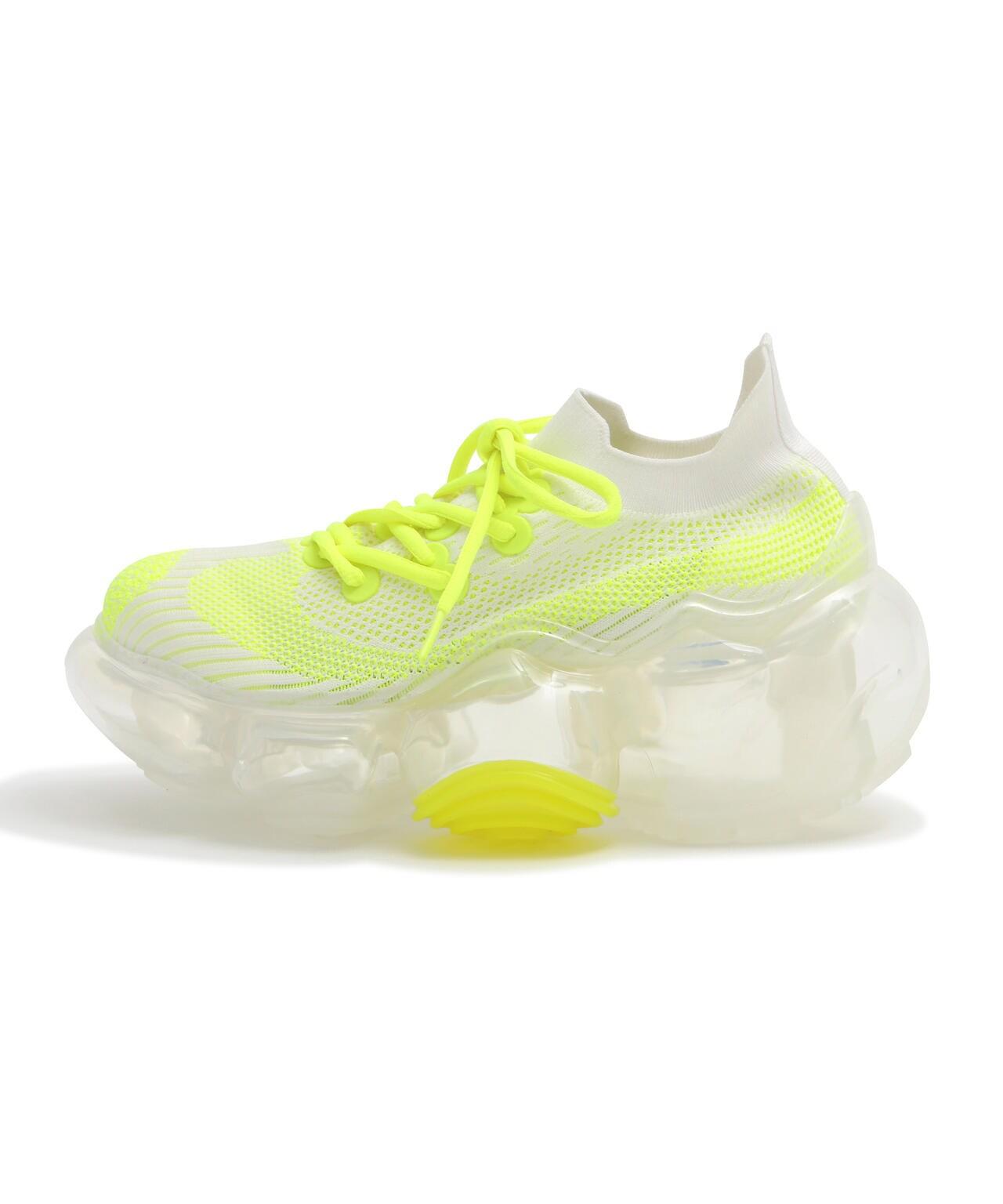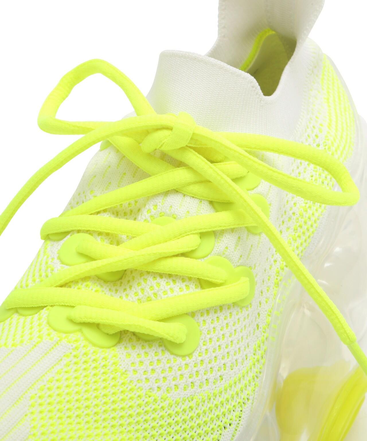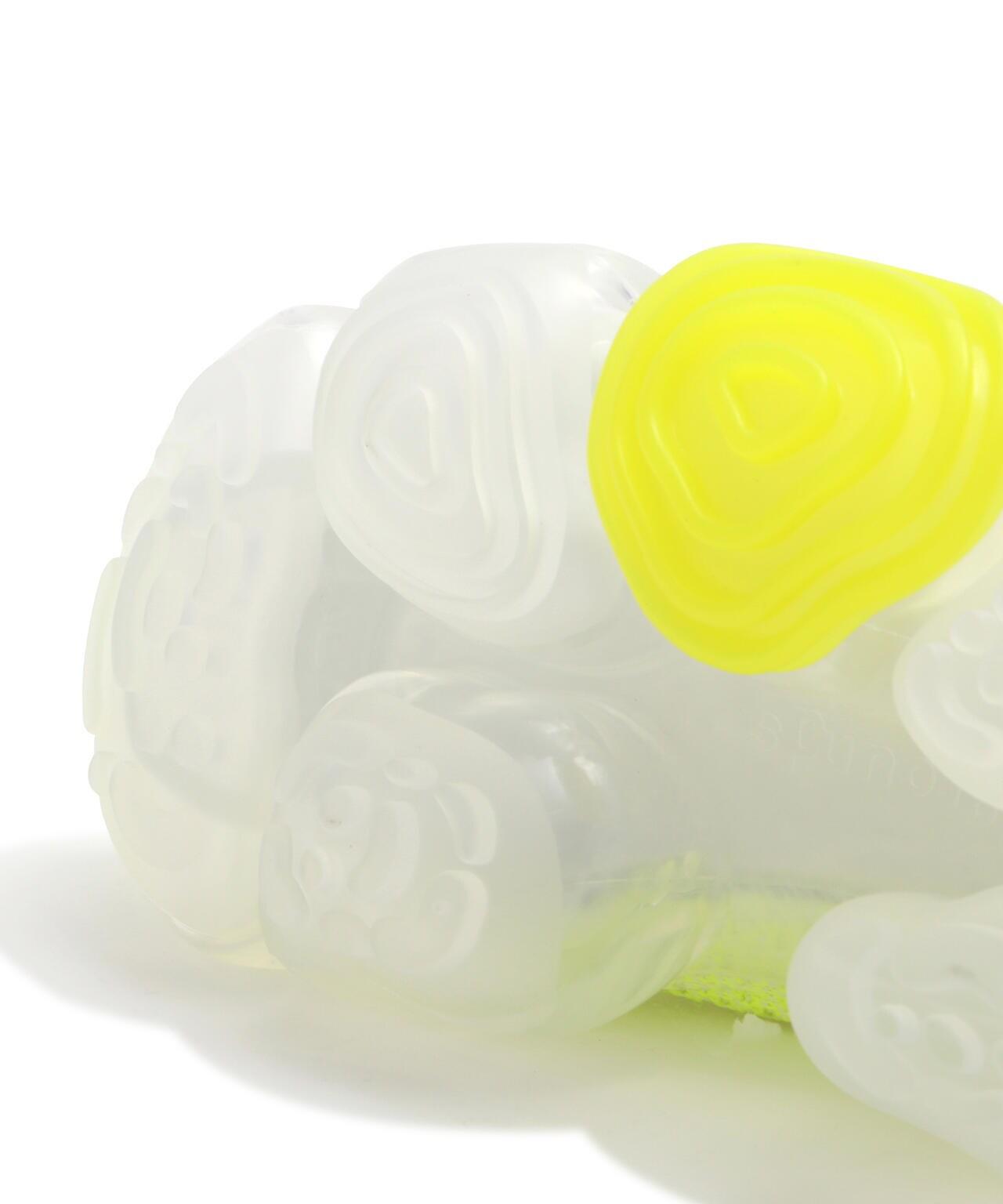 ROYAL FLASH 特別定製產品--基於新款流行的 MOOPIE 型號。與之前的款式不同,這款新鞋有黃色的橡膠鞋帶孔。熒光黃色的孔由熒光黃色和白色的組合針織物點綴。