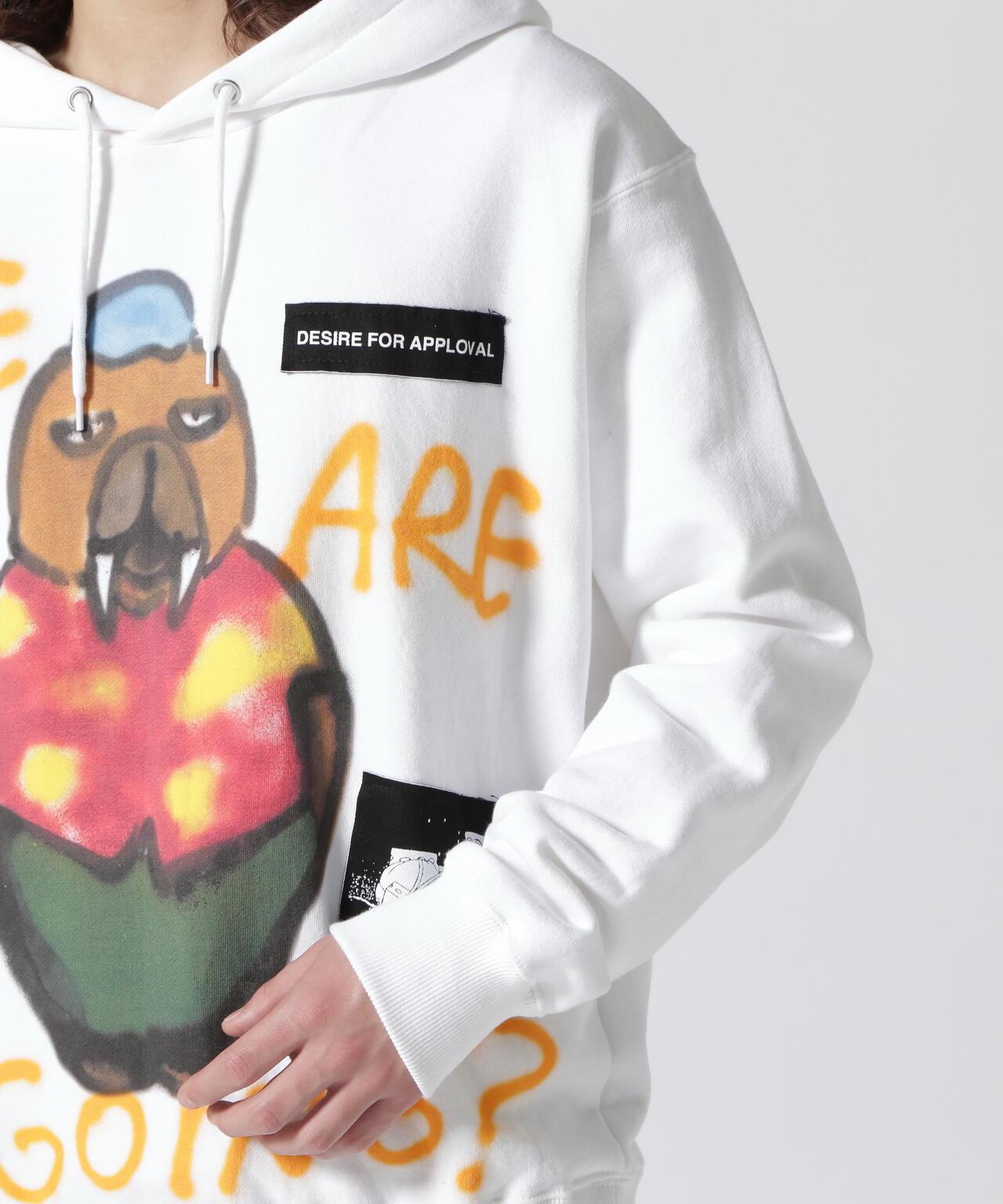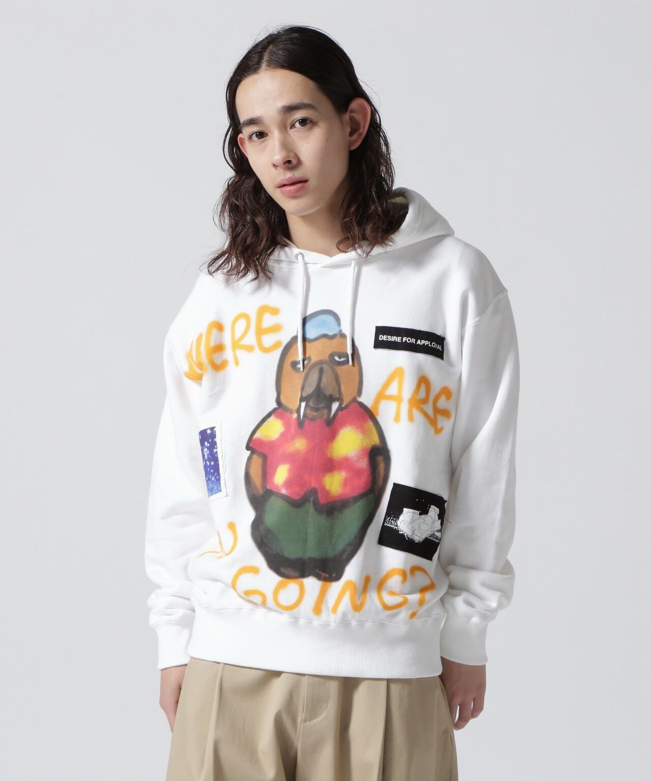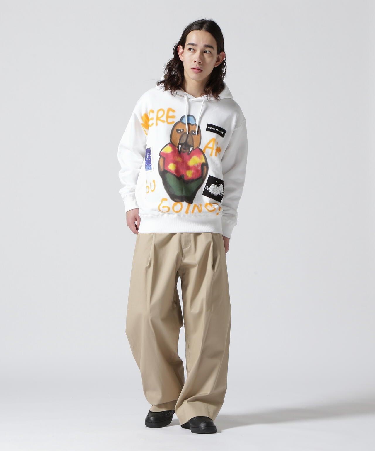 藝術家井真一郎與懸疑推理動畫片《奇異出租車》的特別合作項目,該片因其獨特的故事情節和貫穿全片的有趣預示而成為熱門話題。這件作品將《Odd Taxi》融入了 guernika 的標準單品 "Paint Parka "中。中心插圖部分以印刷形式表現,而信息文字則以手繪形式繪製在每件作品上。背面印有為此次合作創作的 Odd Taxi 徽標。由於是手繪製作,每件作品都會有個體差異。請注意,彩繪效果可能與照片有所不同。*印有人物。-注意事項