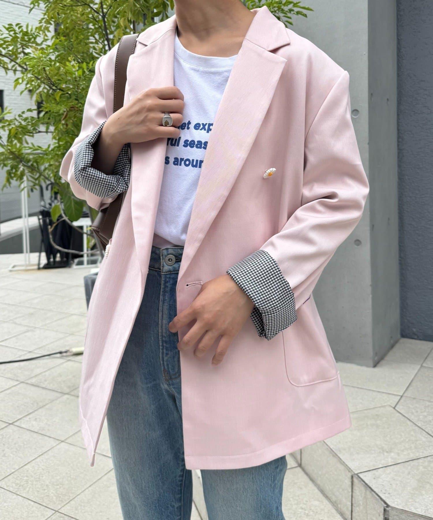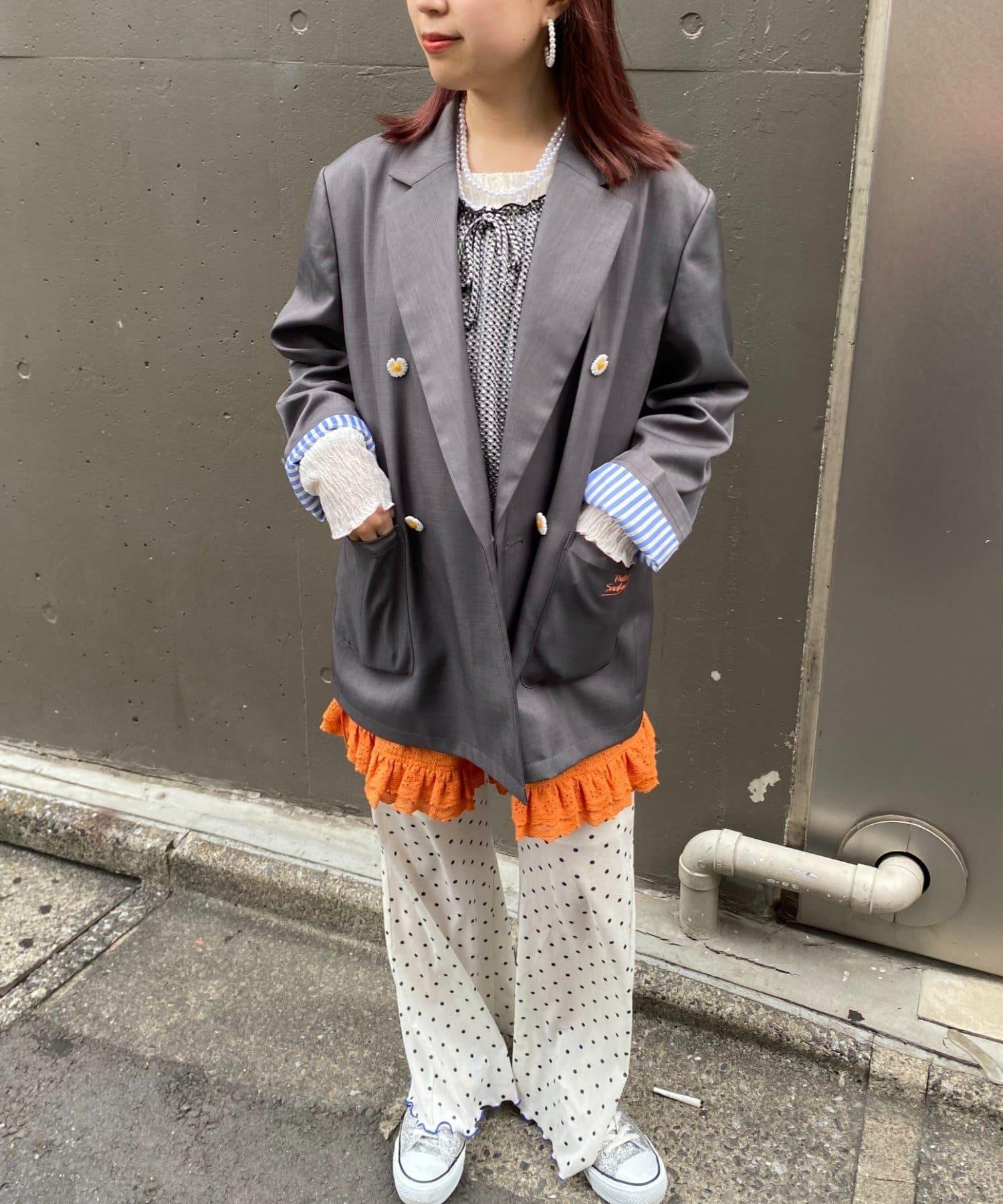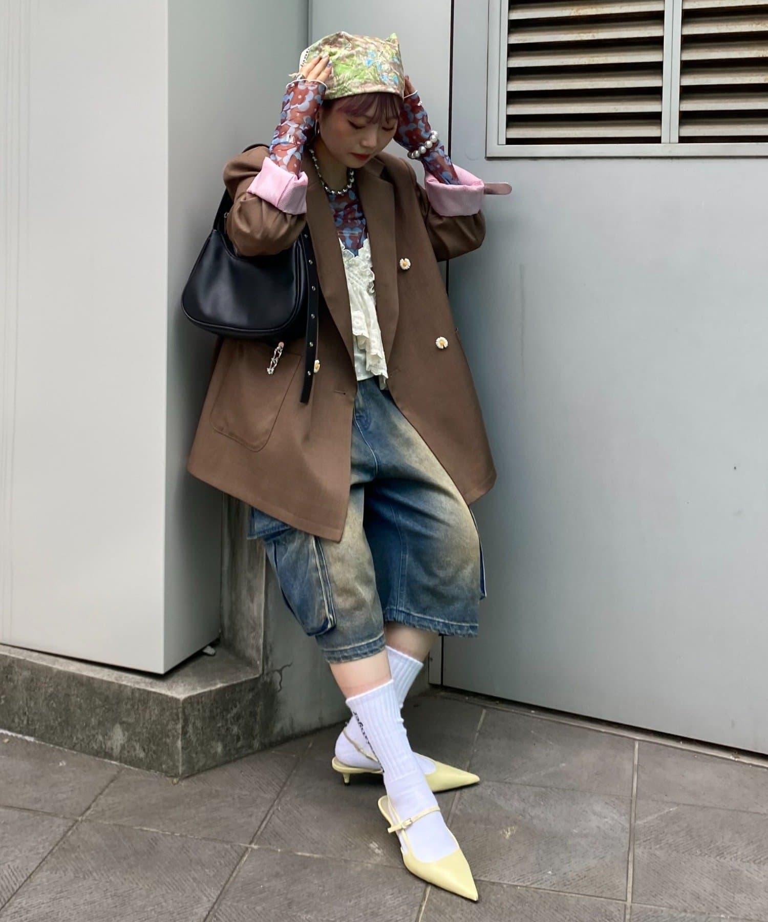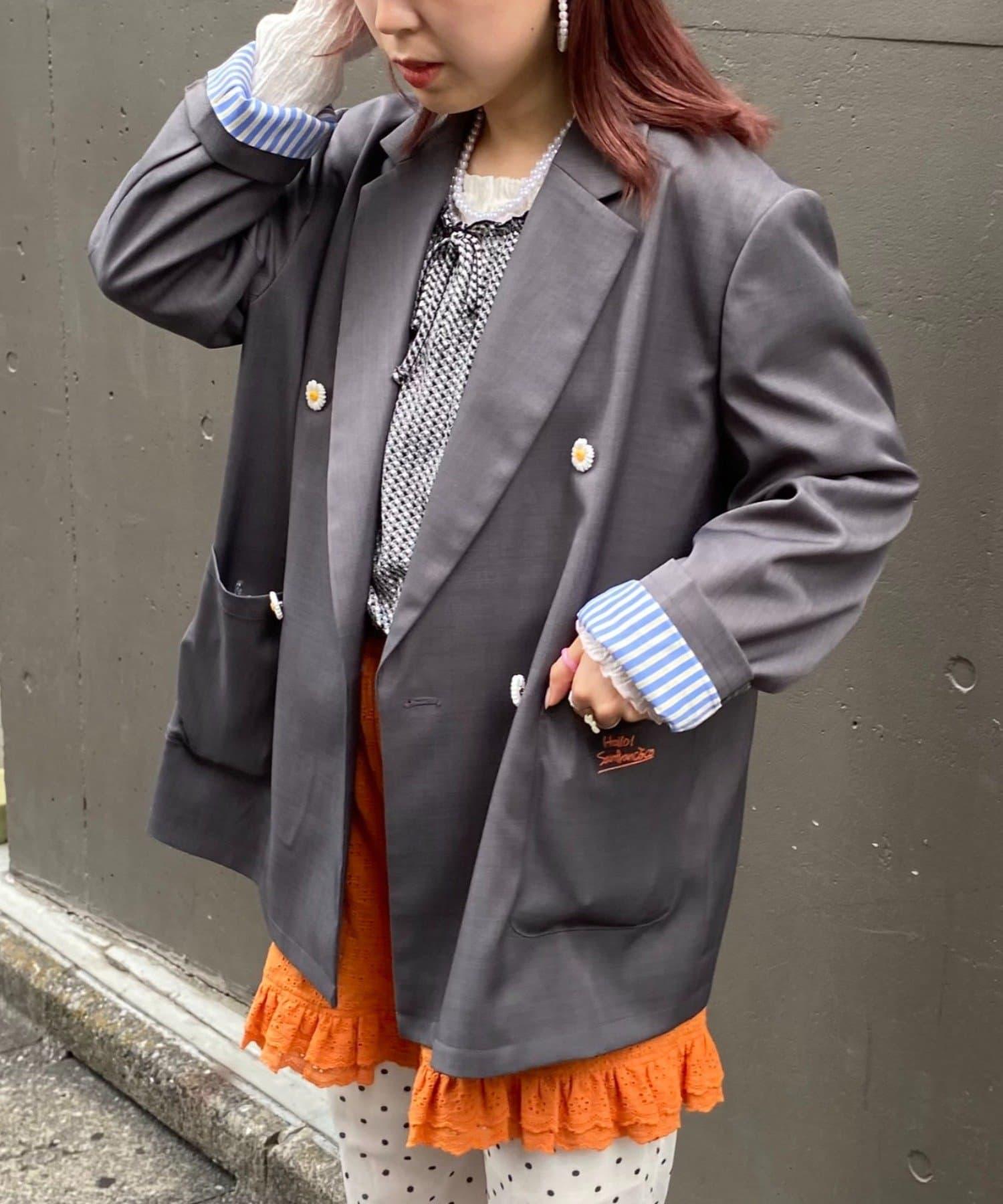 寬大的廓形搭配紐扣上的瑪格麗特圖案,休閒感十足!