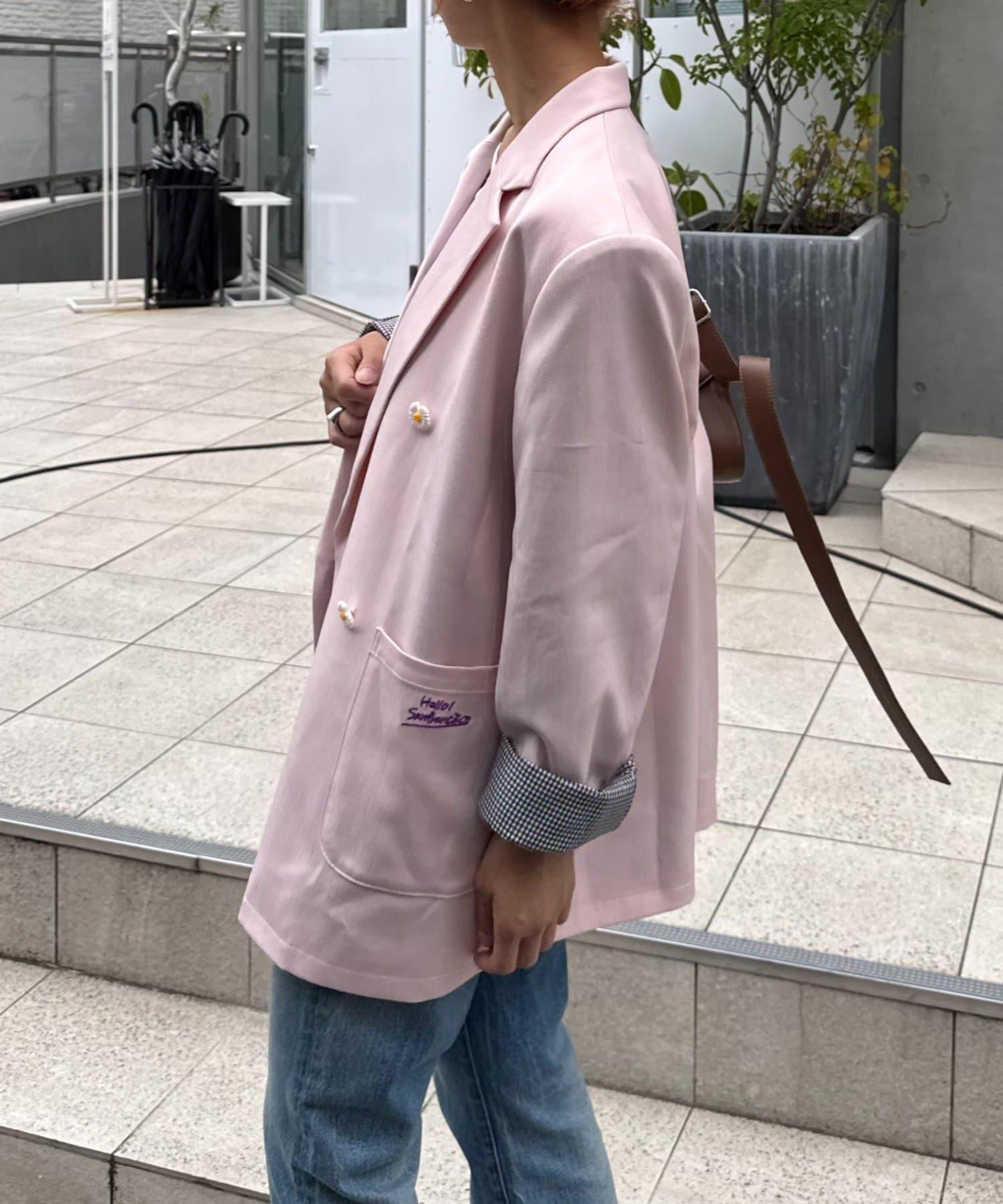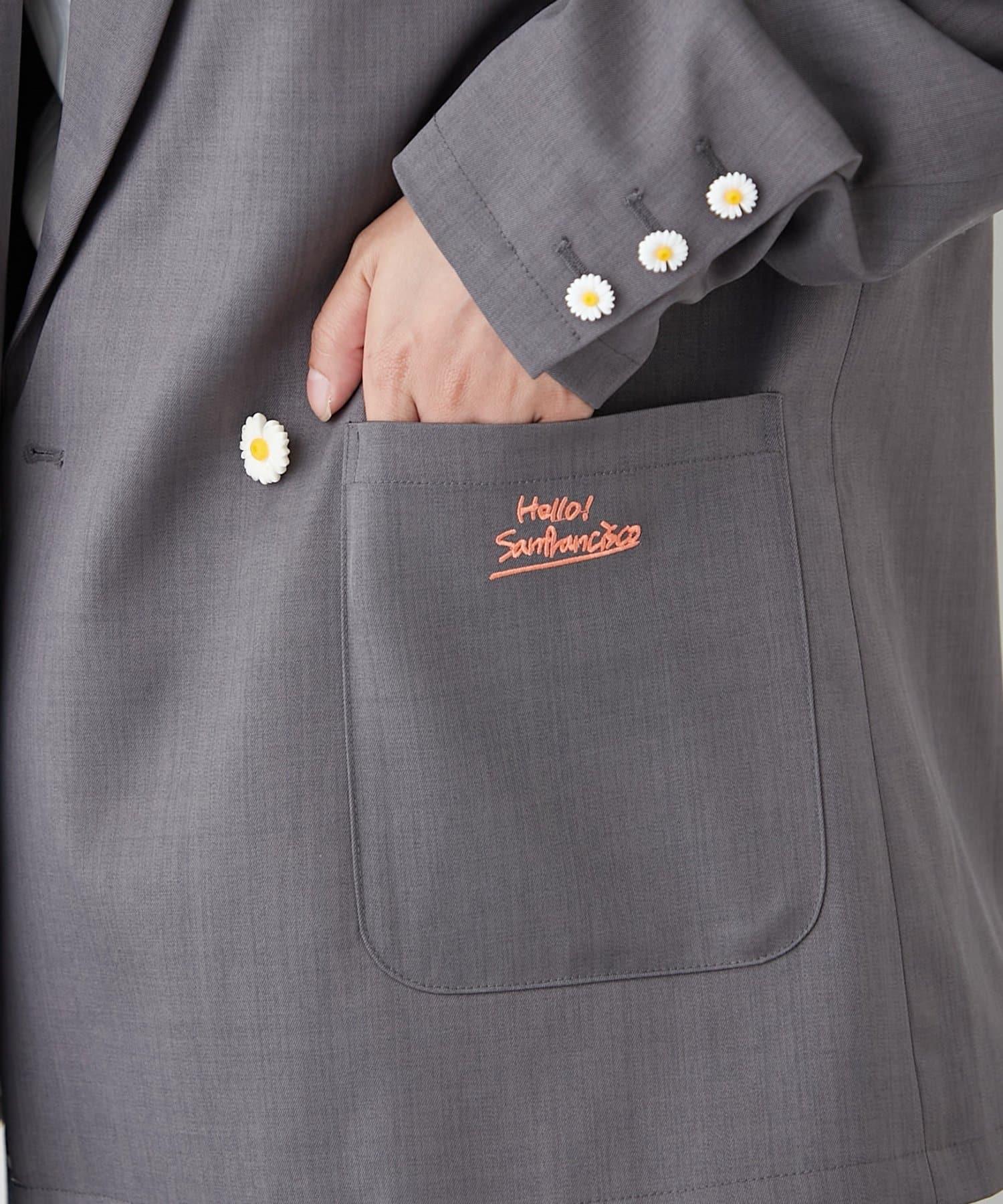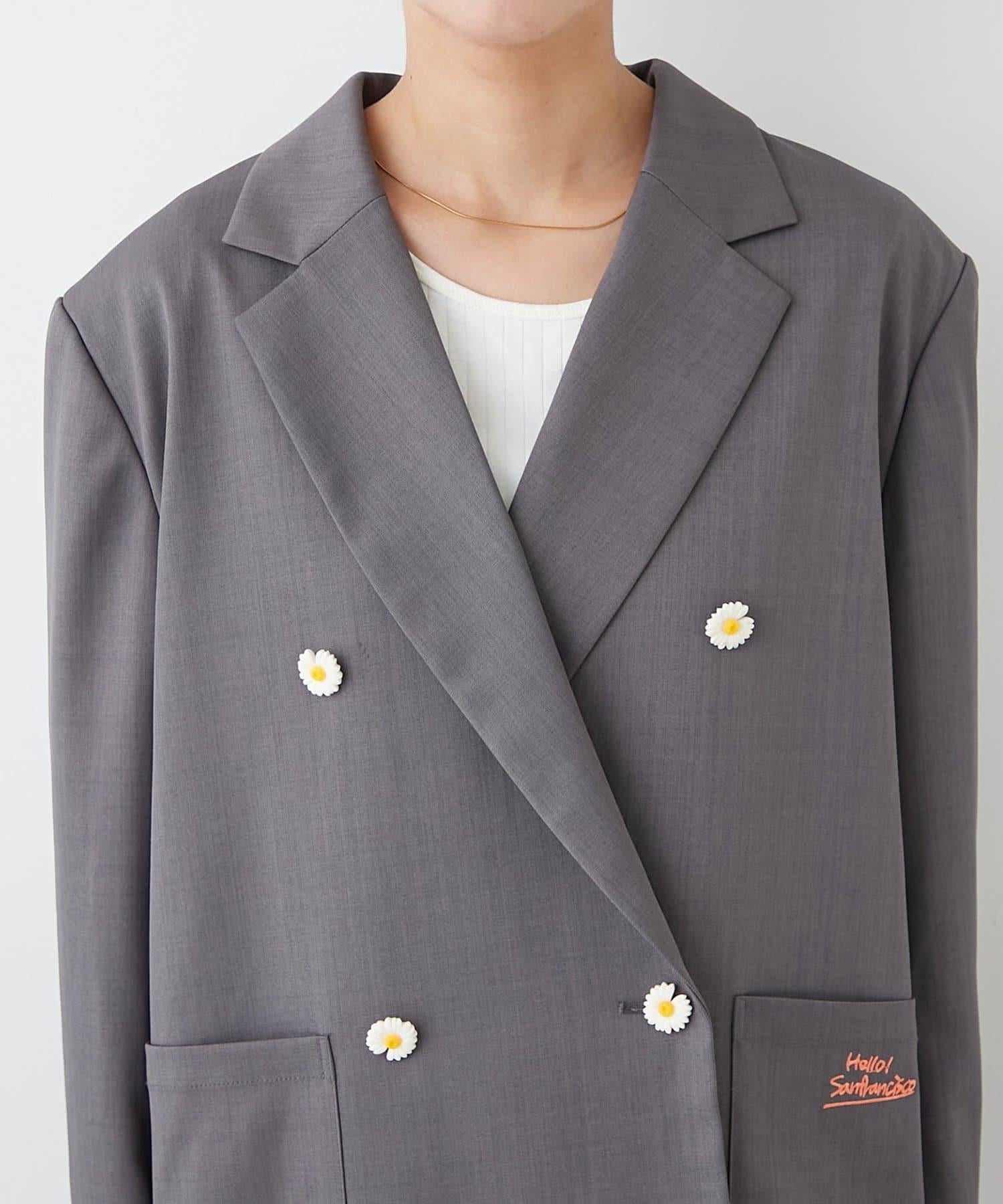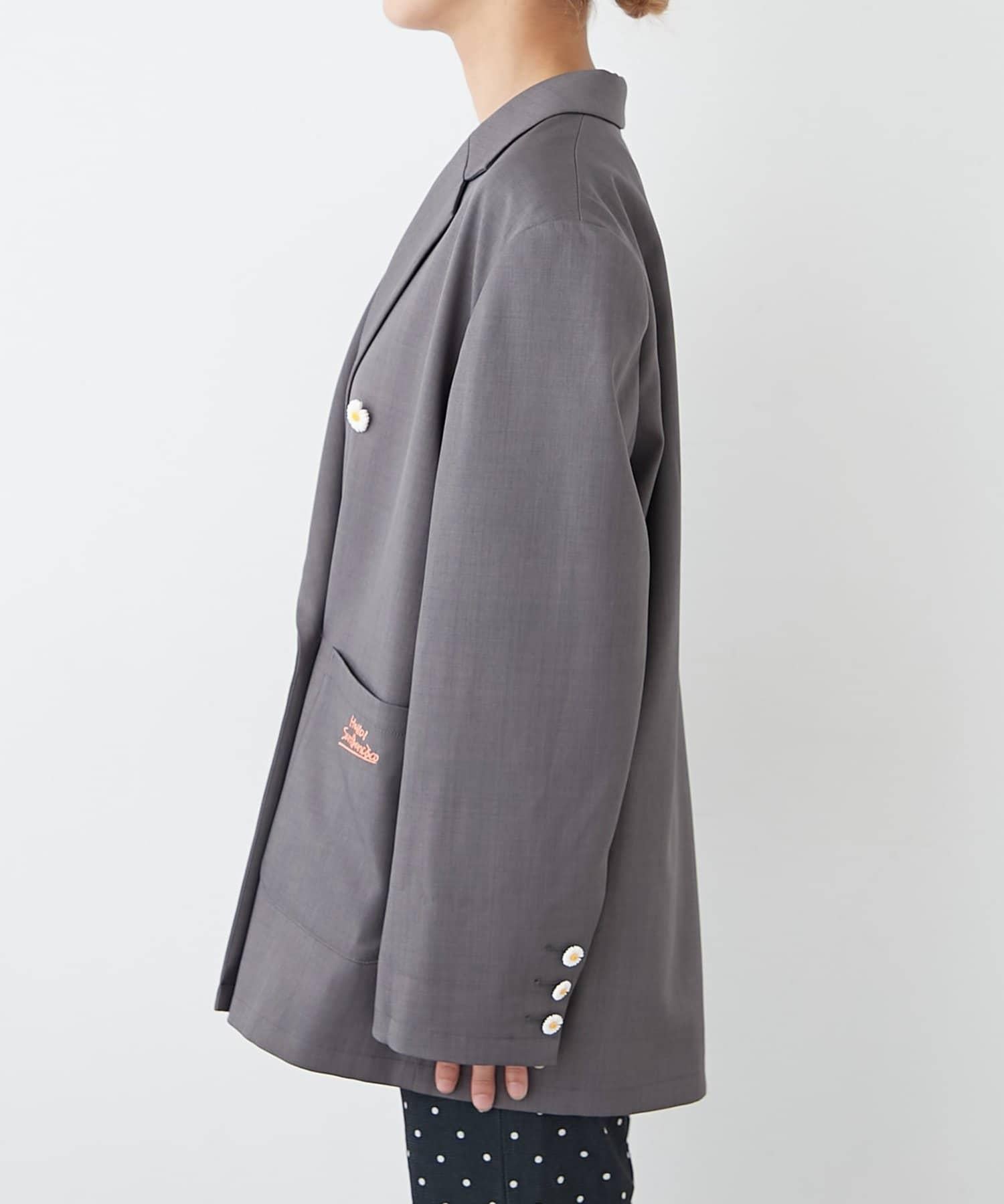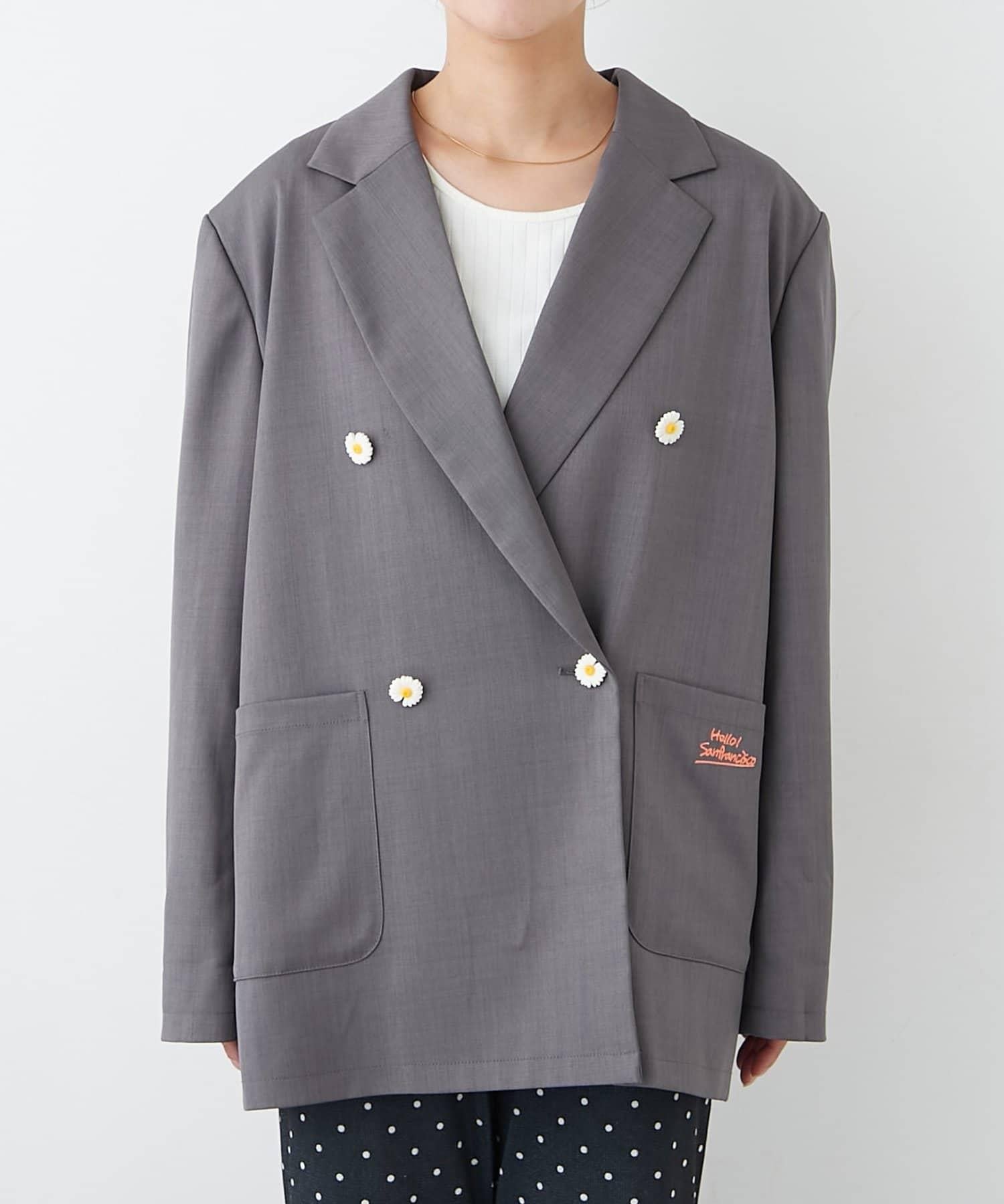 H.S名稱刺繡雛菊紐扣寬鬆夾克