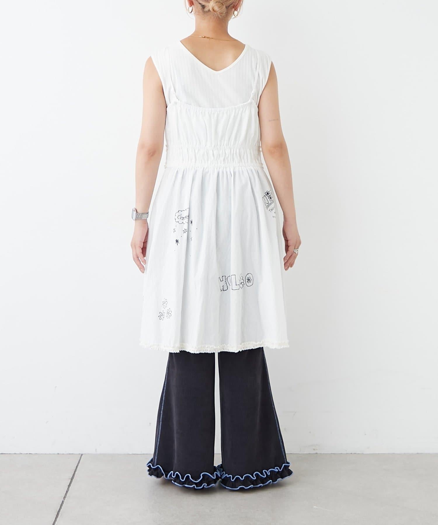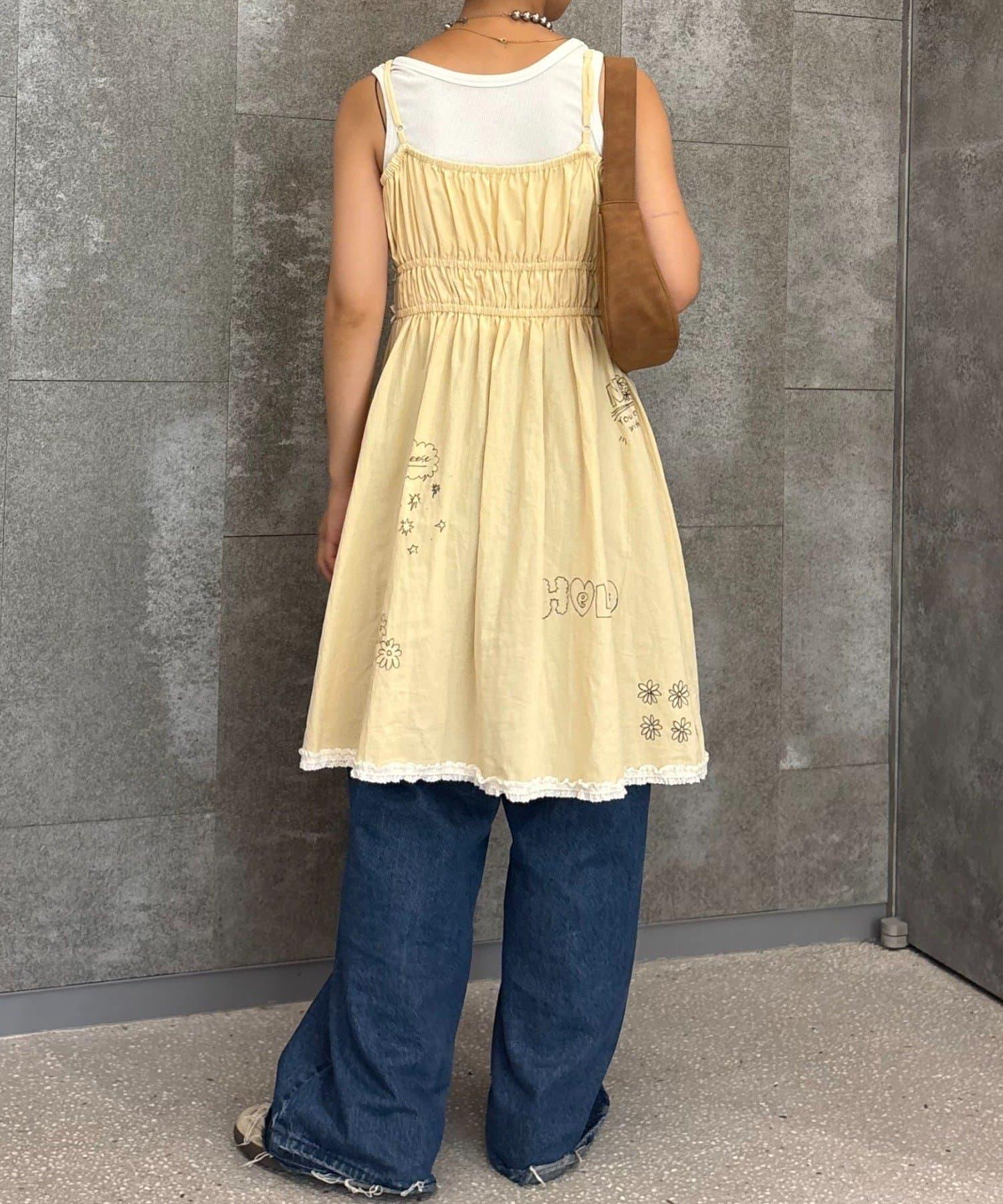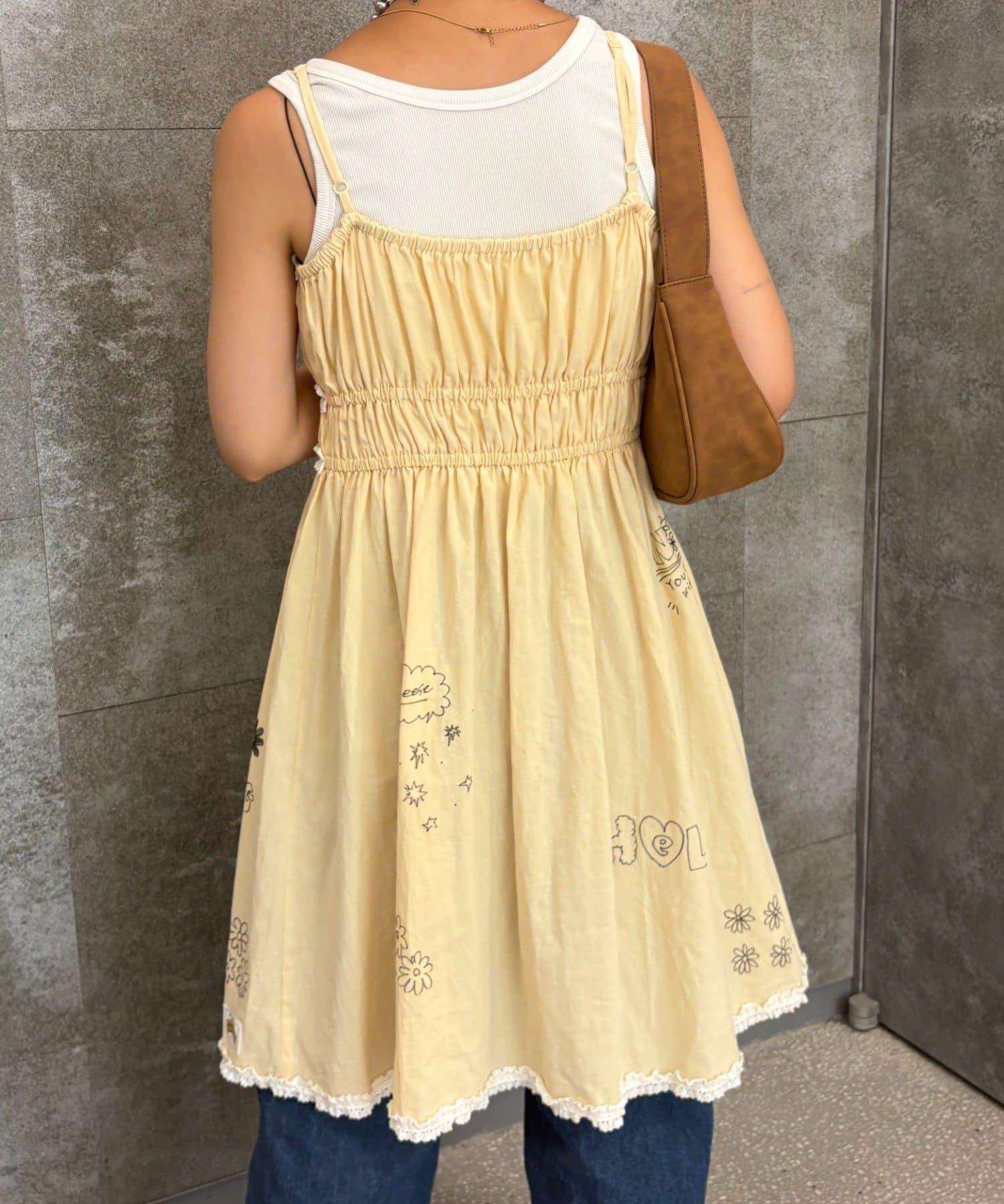 H.S塗鴉風印花蕾絲背心連衣裙