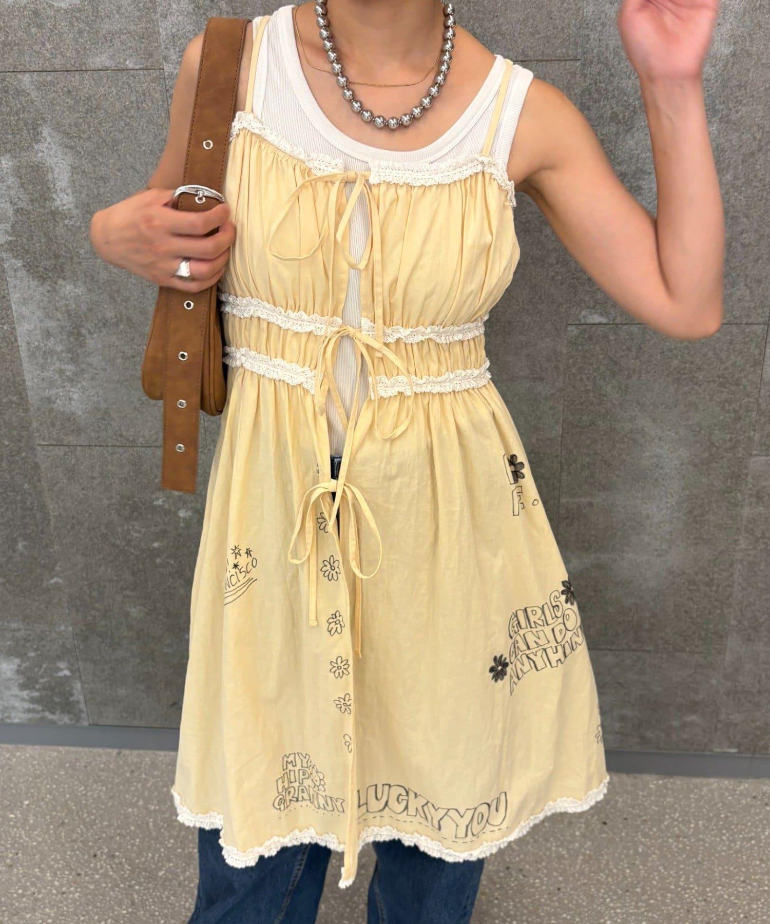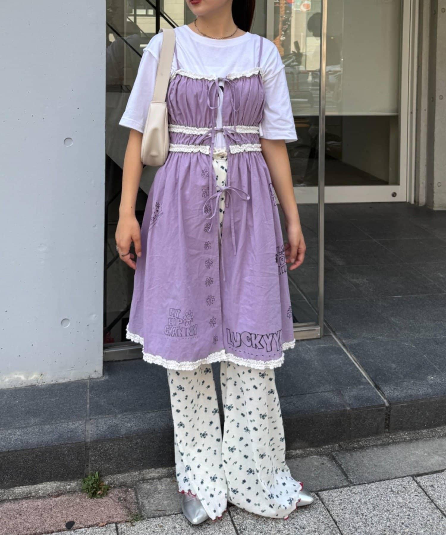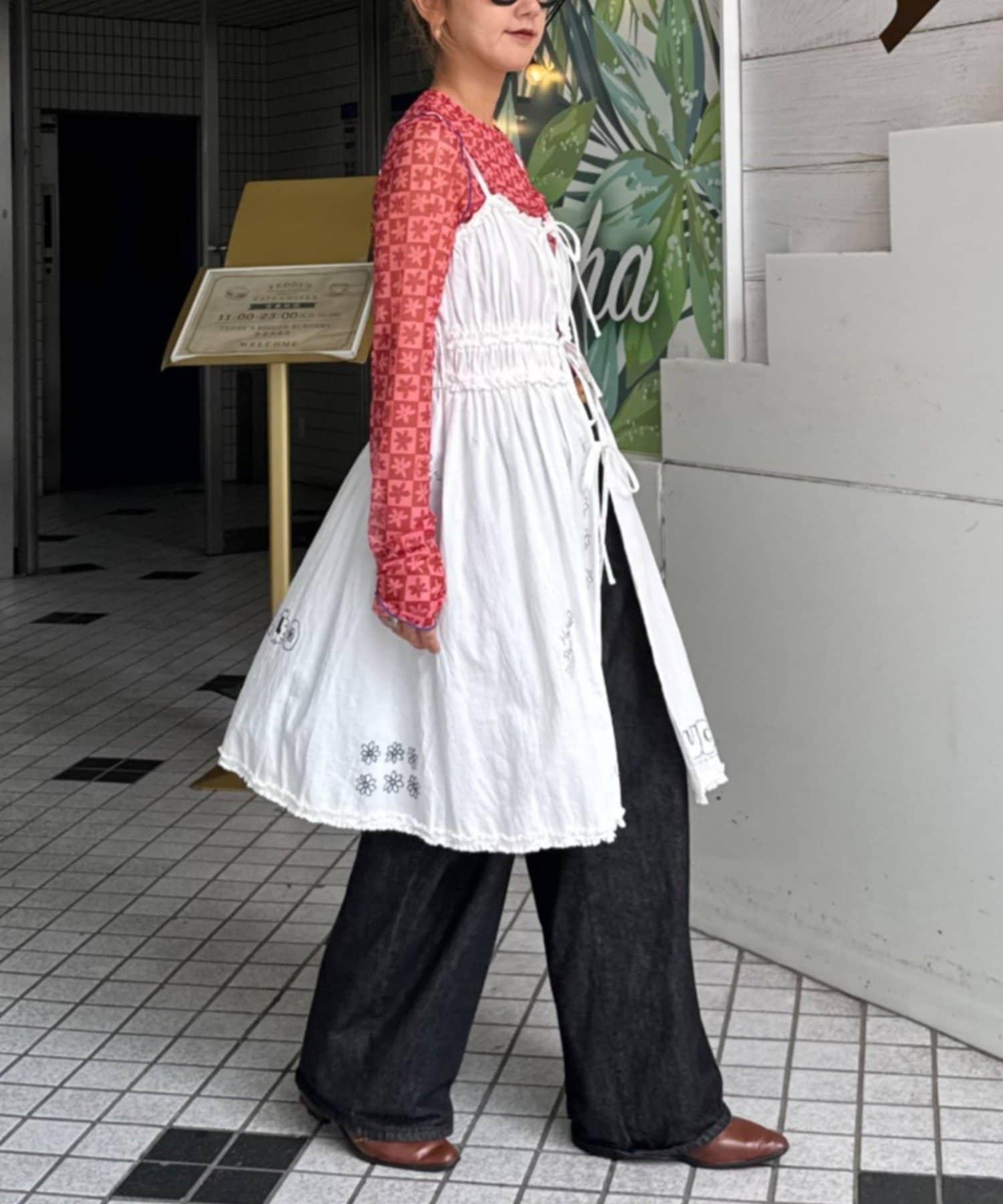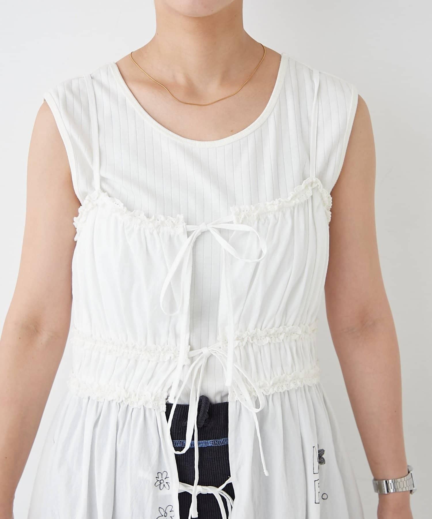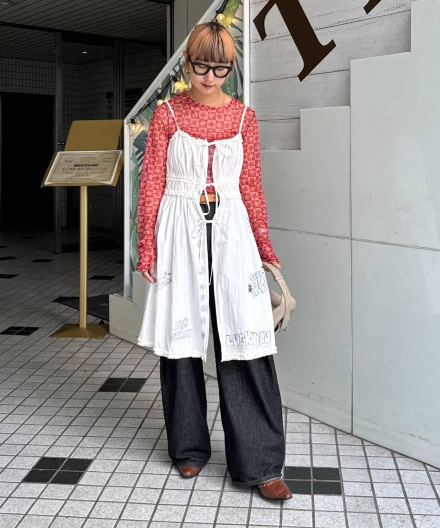 前面用絲帶繫住,因此可以通過疊穿來展現內搭和下裝,享受多種穿著風格。