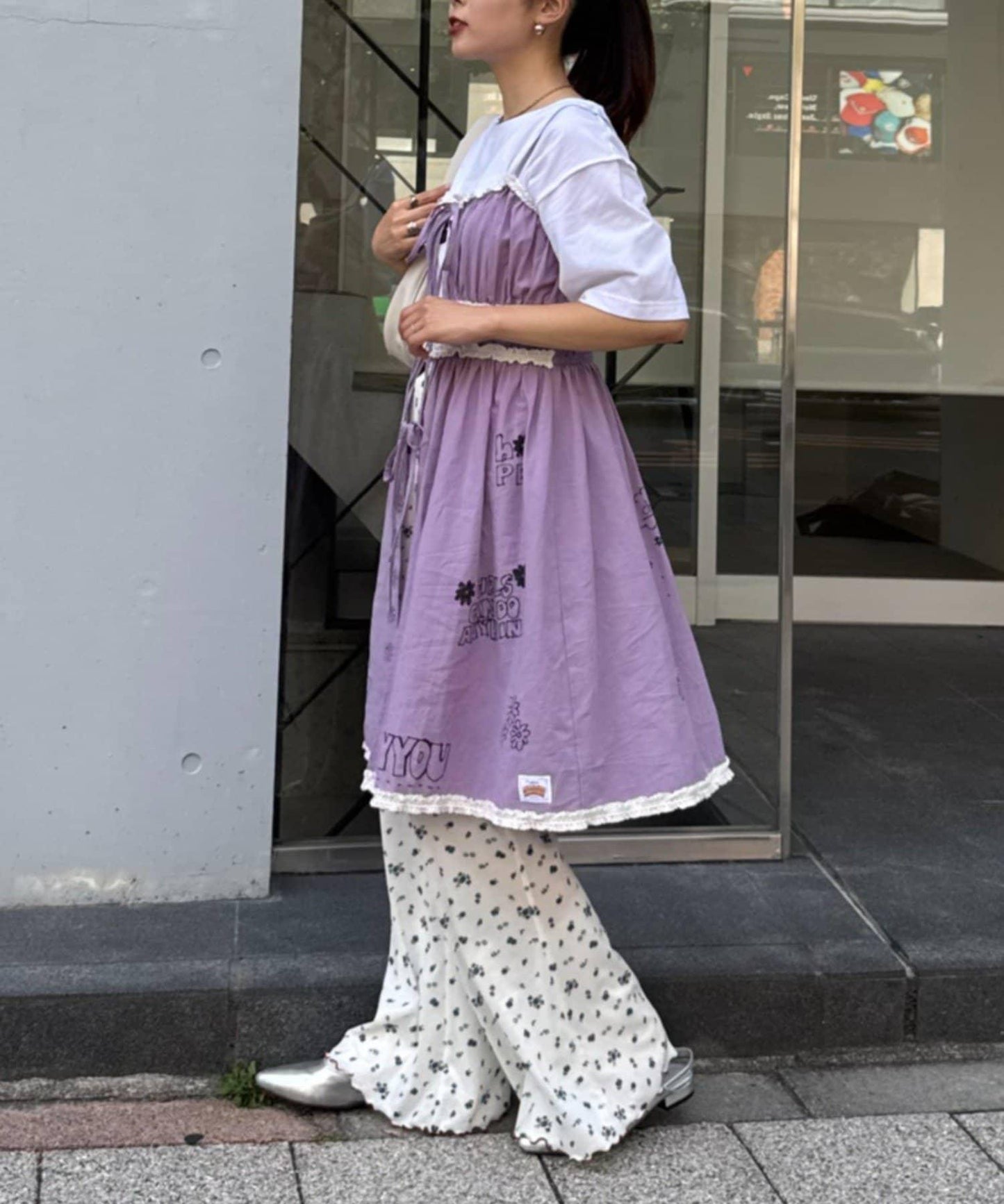 下半身搭配喇叭褲或休閒褲,同樣可愛又少女、