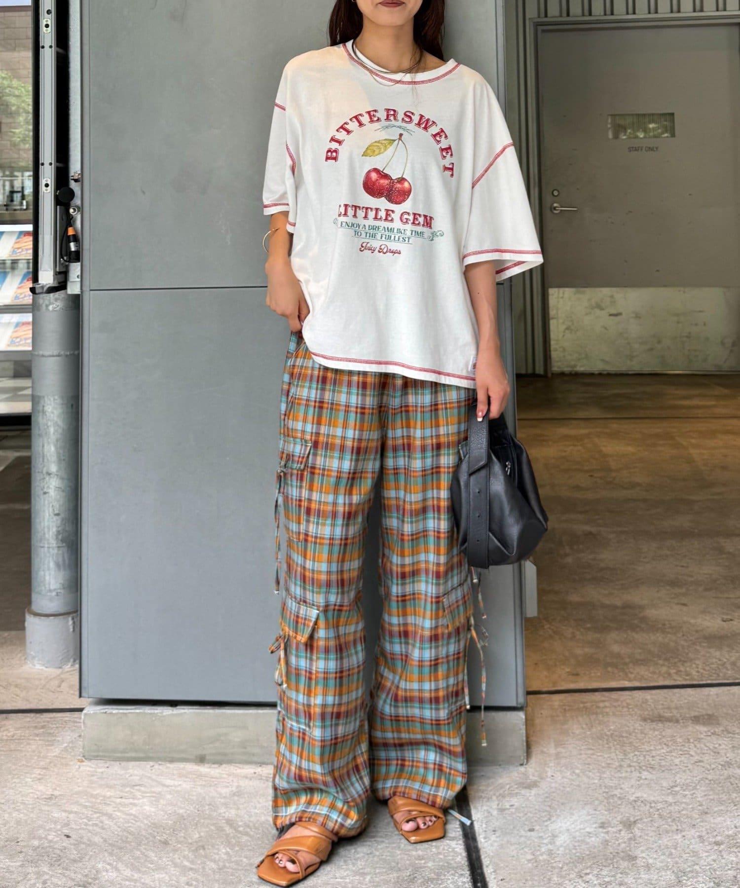 格紋一下子就給人一種華麗的感覺,所以不要把簡單的上衣看得太慵懶◎。