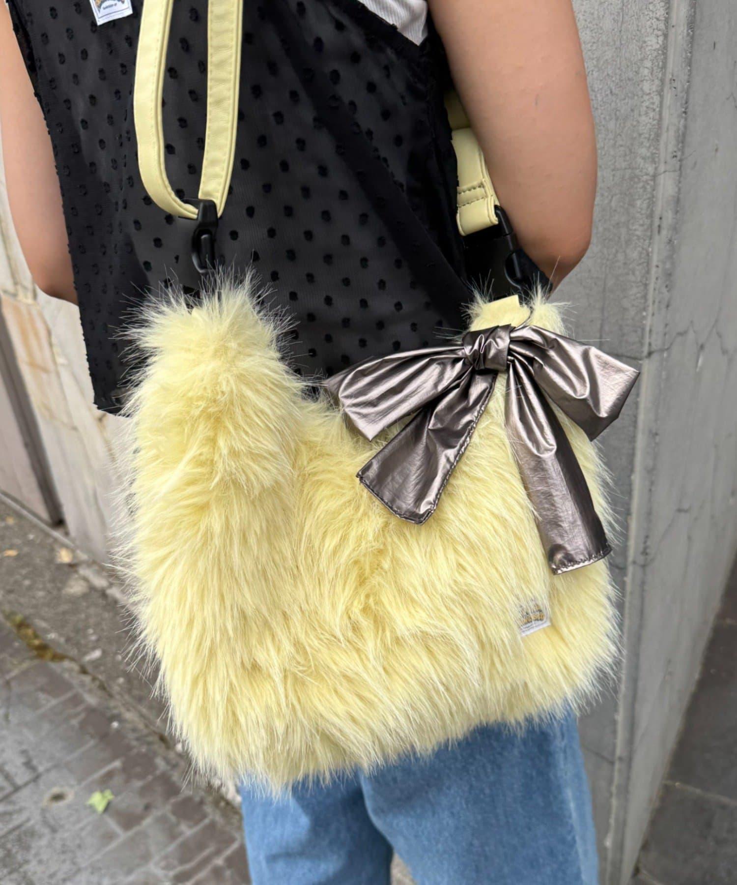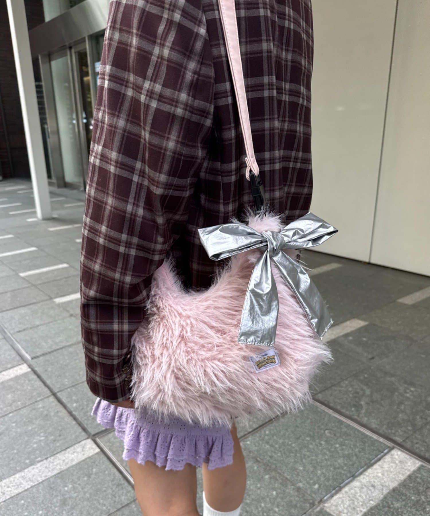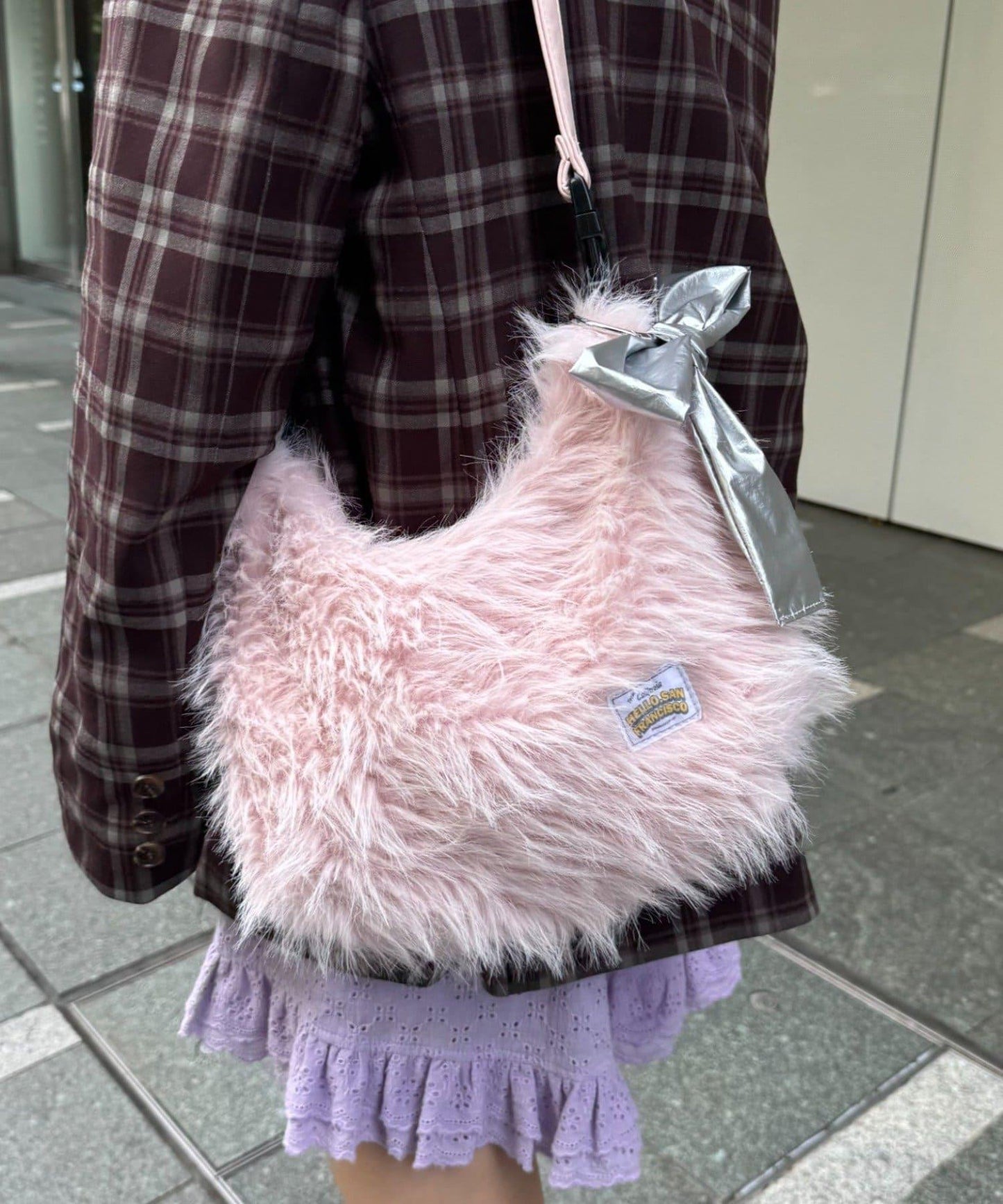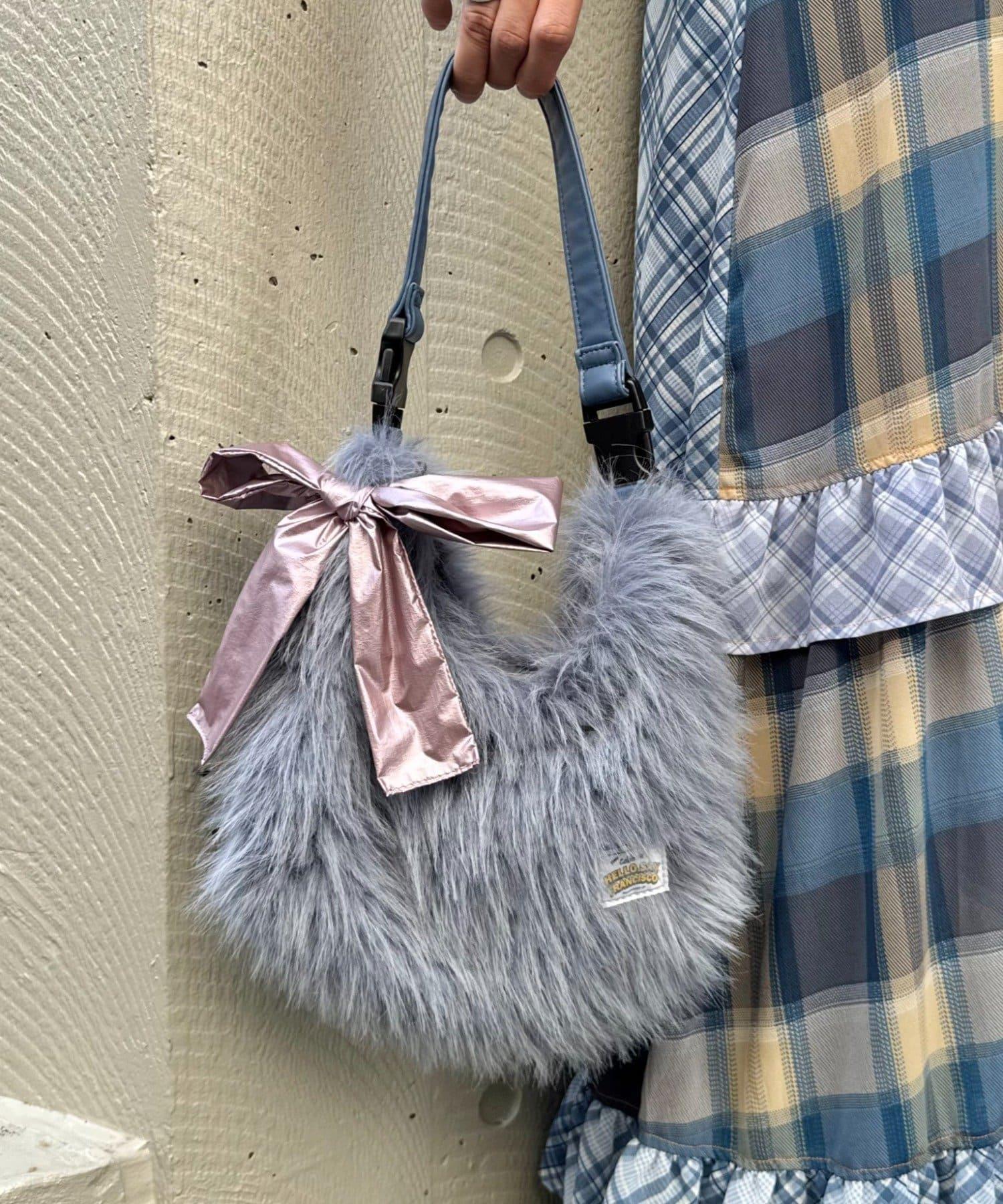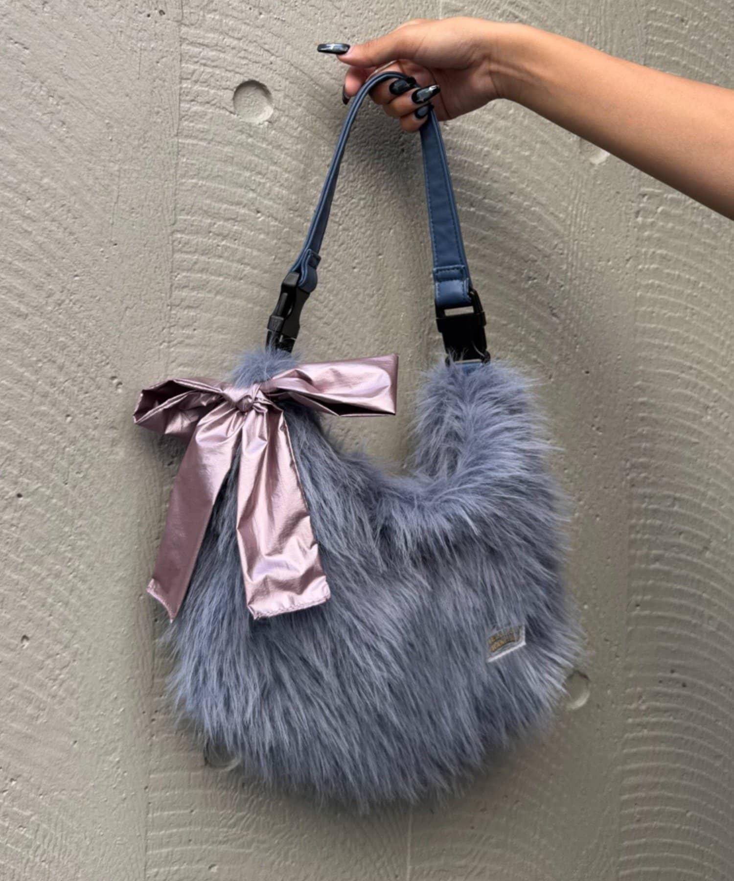 以秋冬為靈感的手袋♩,配有蓬鬆的長毛和大號緞帶掛飾。