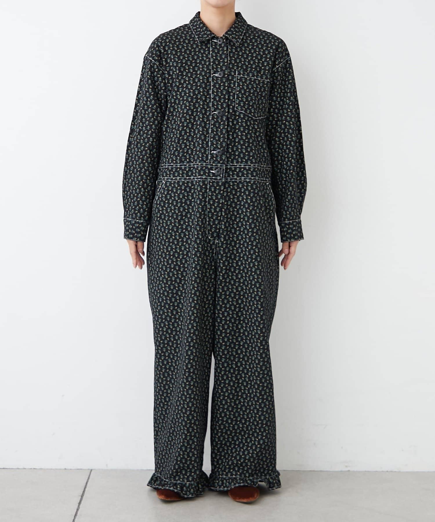 H.S花卉印花下襬荷葉邊連體褲裝