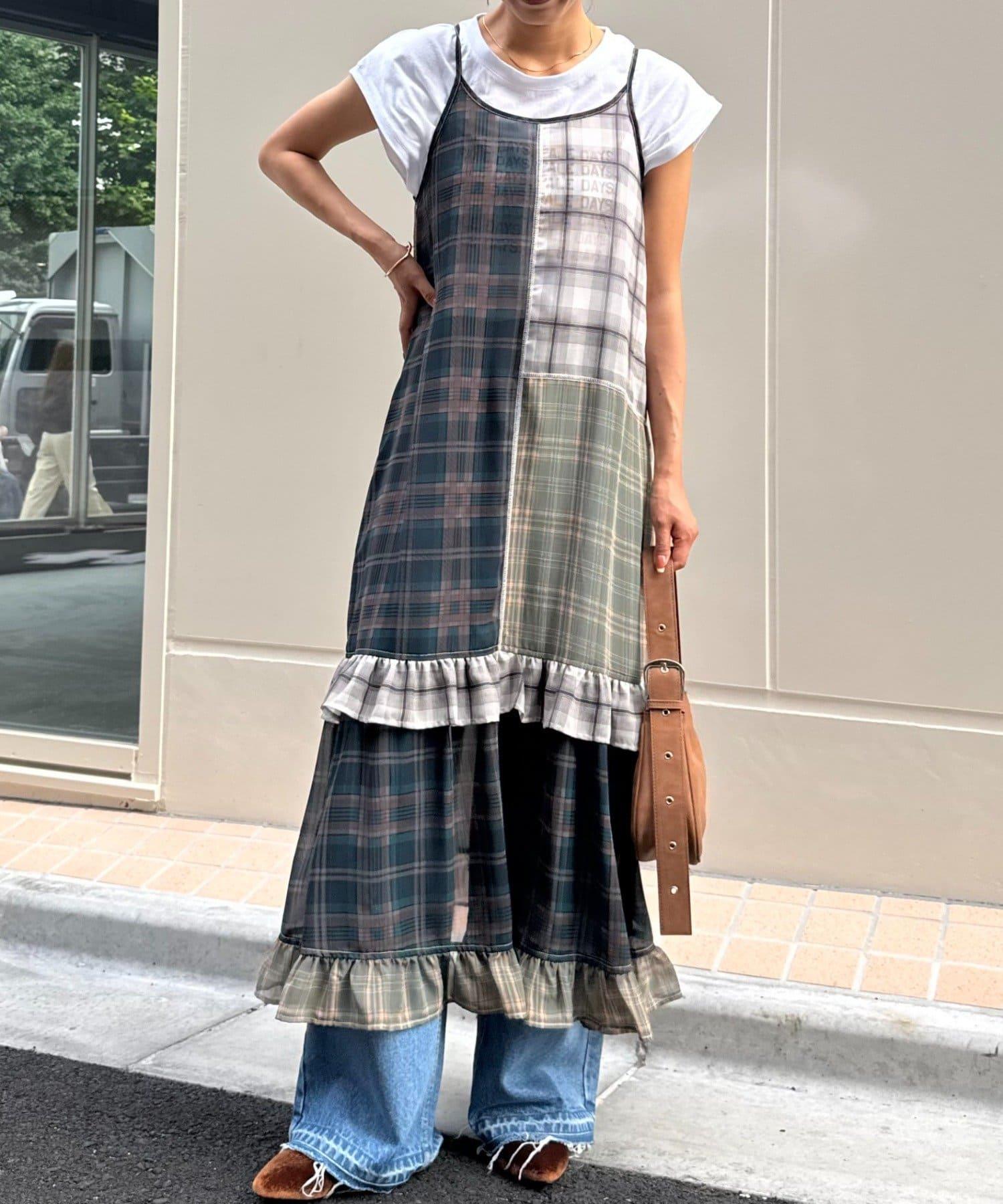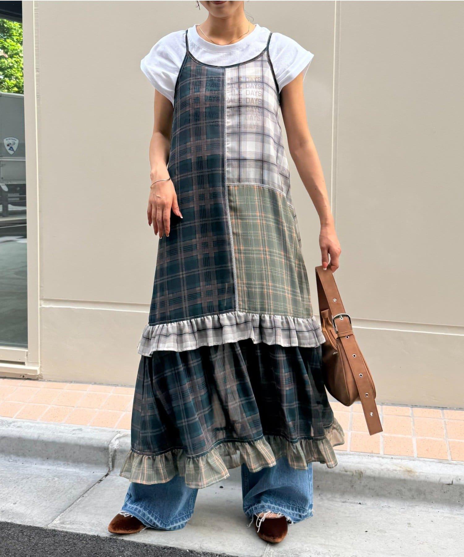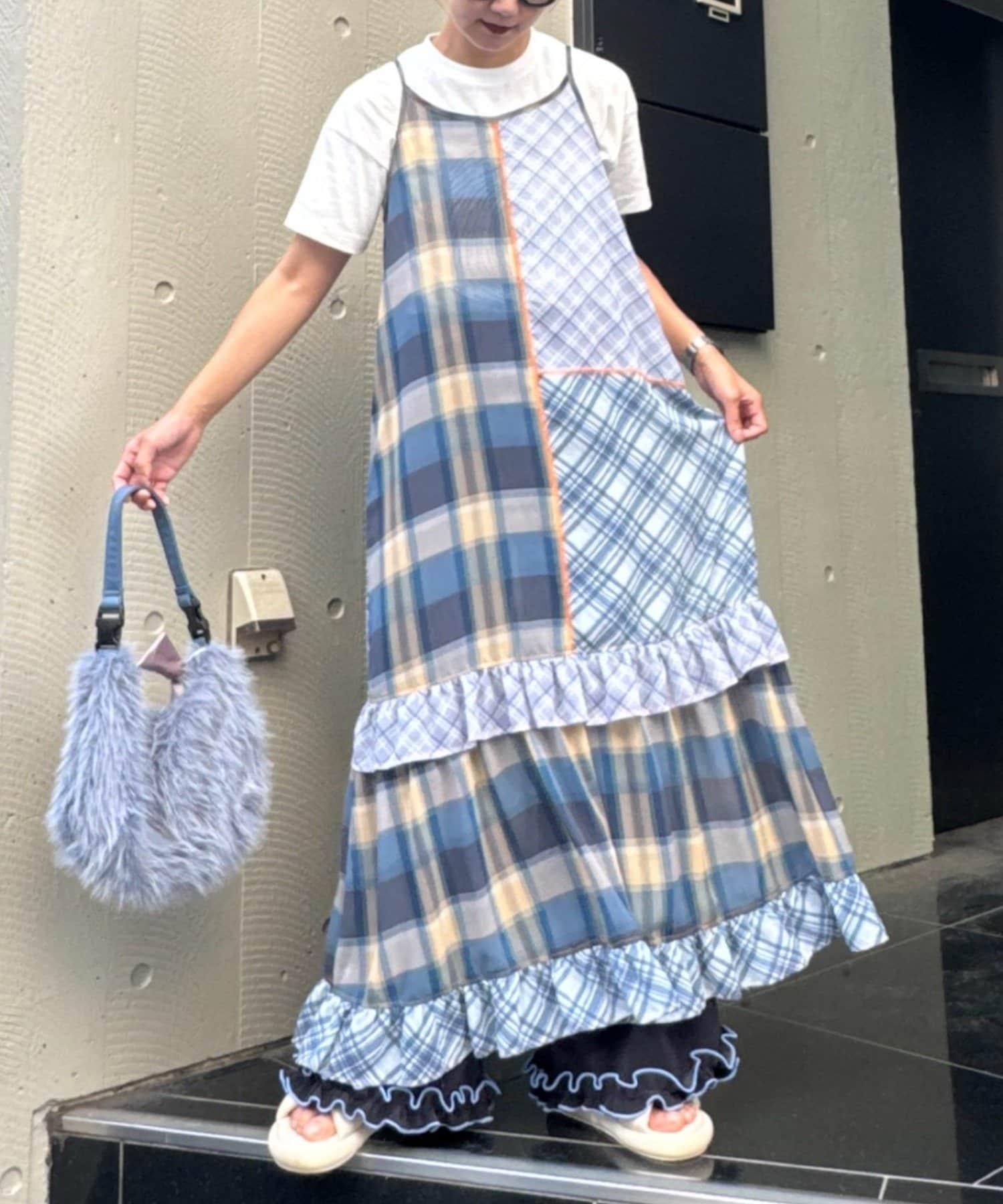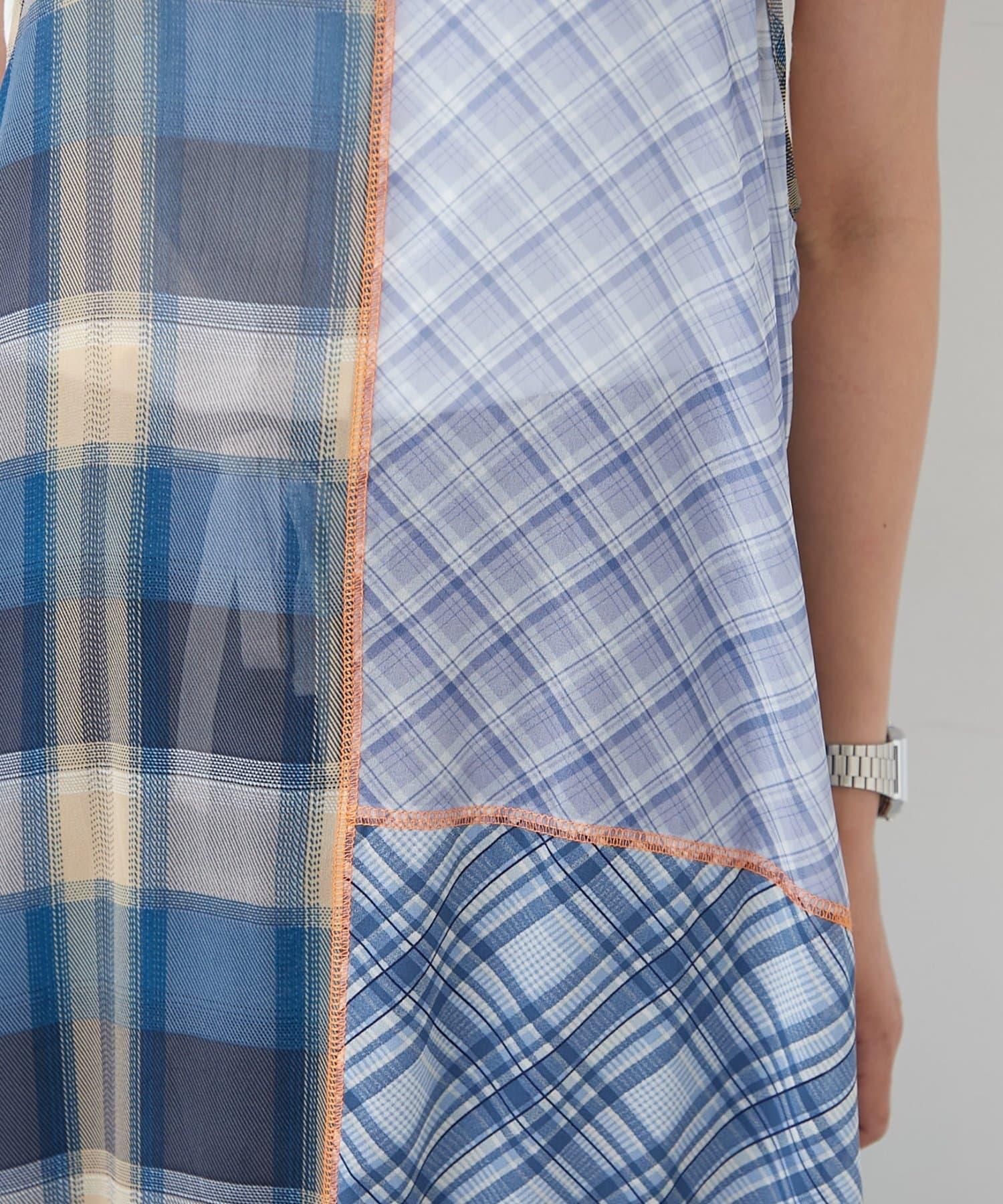 ♩卡米連身裙採用奢華的格紋拼接設計。