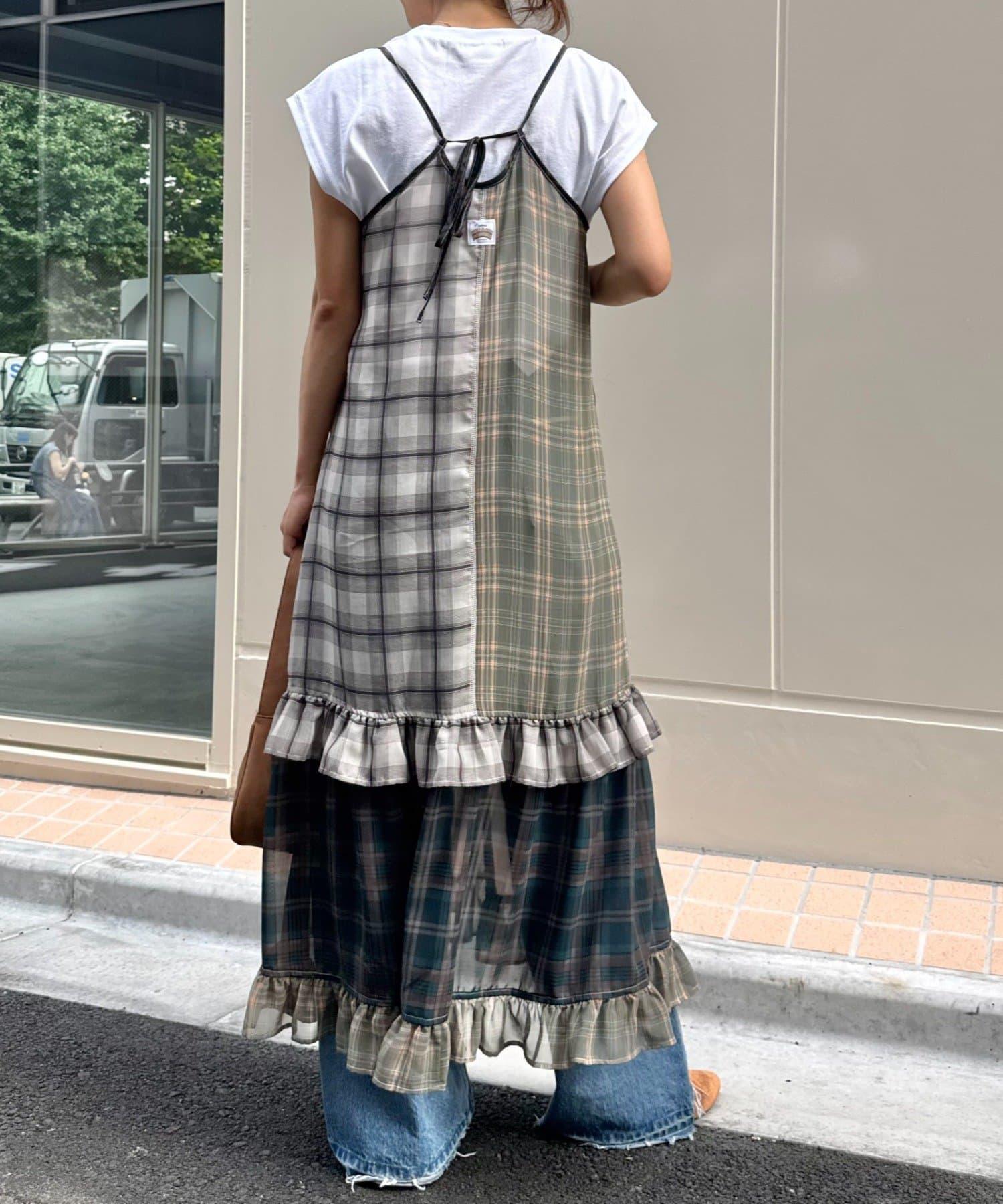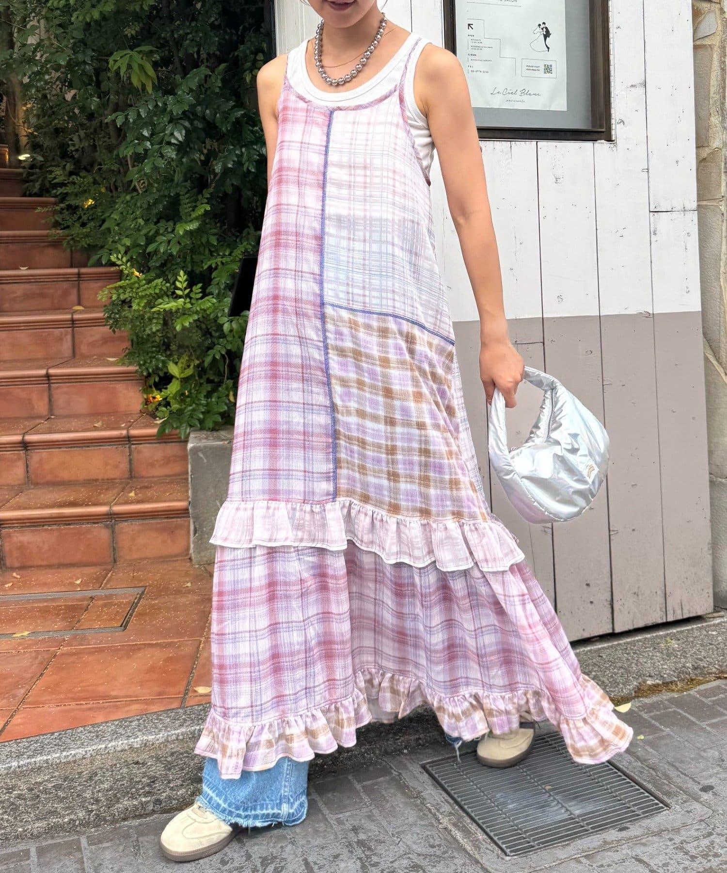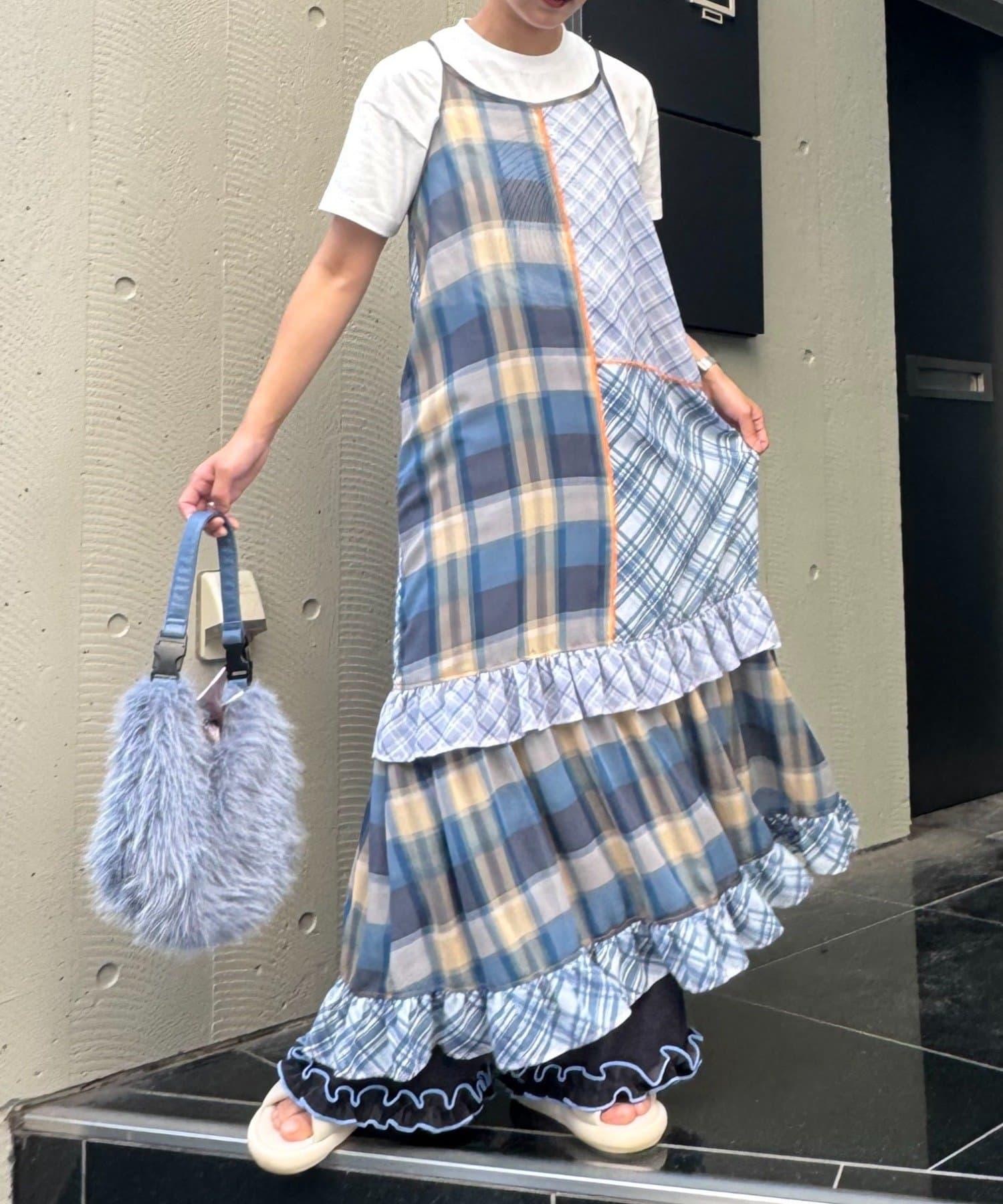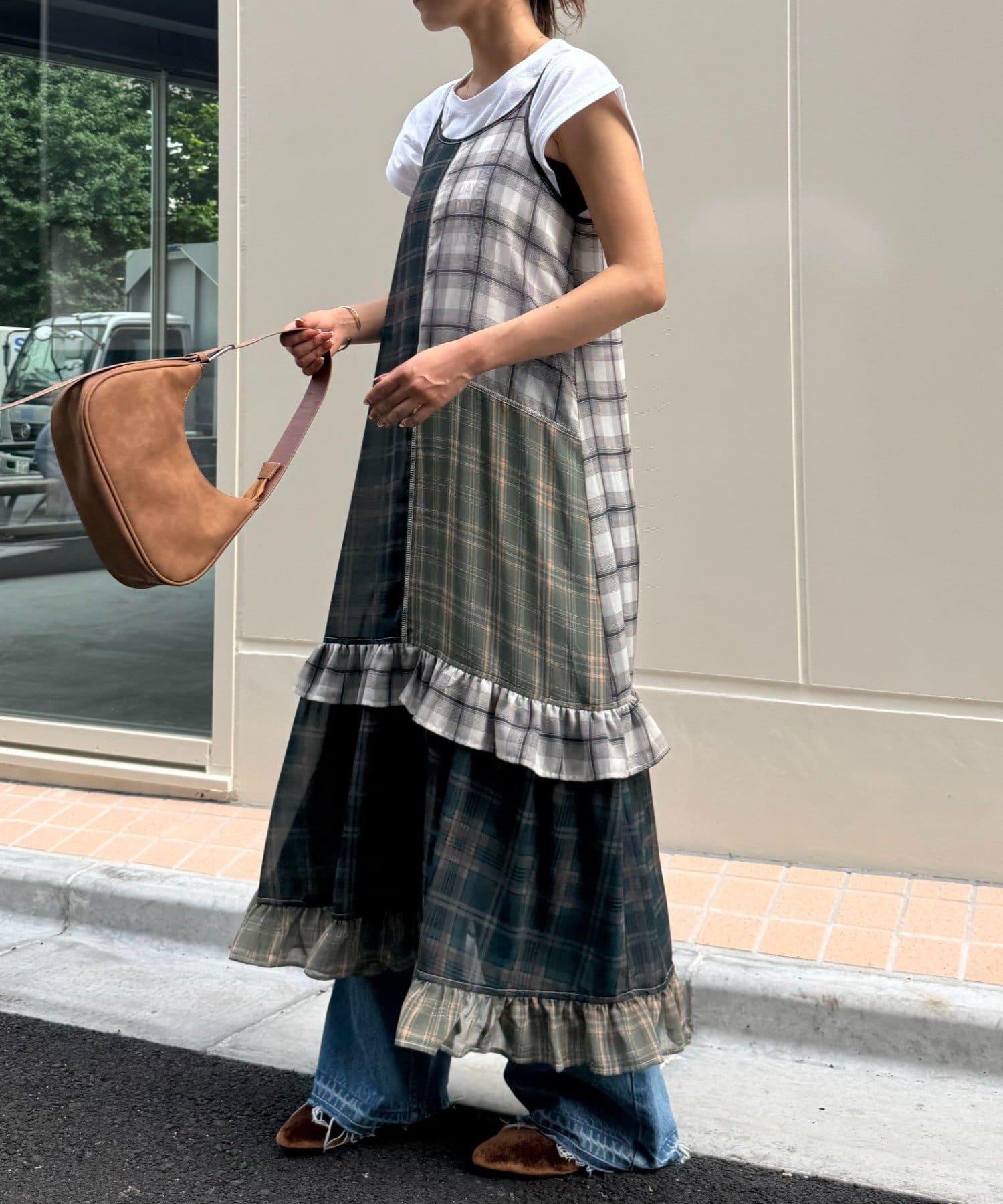 ♩卡米連身裙採用奢華的格紋拼接設計。