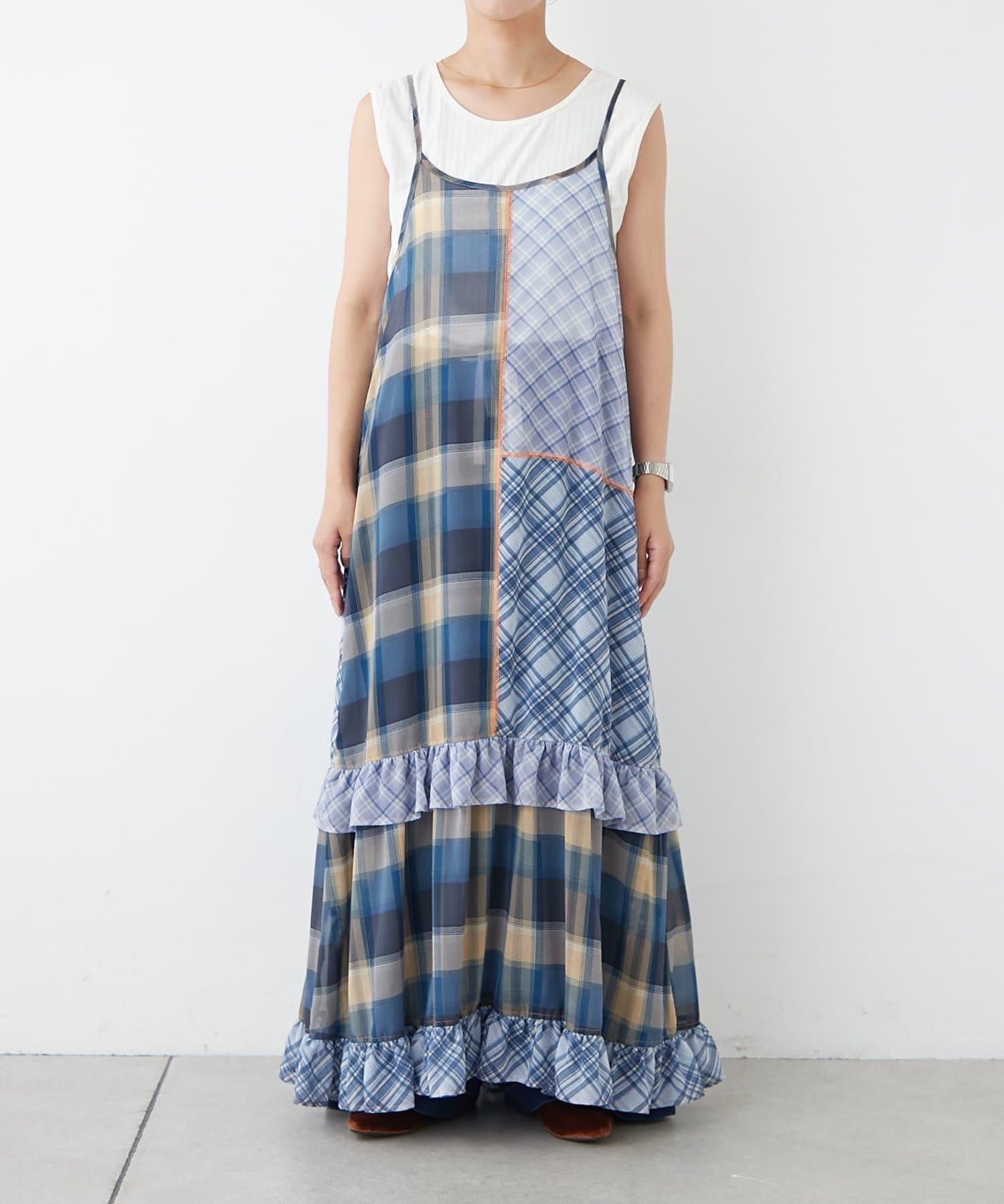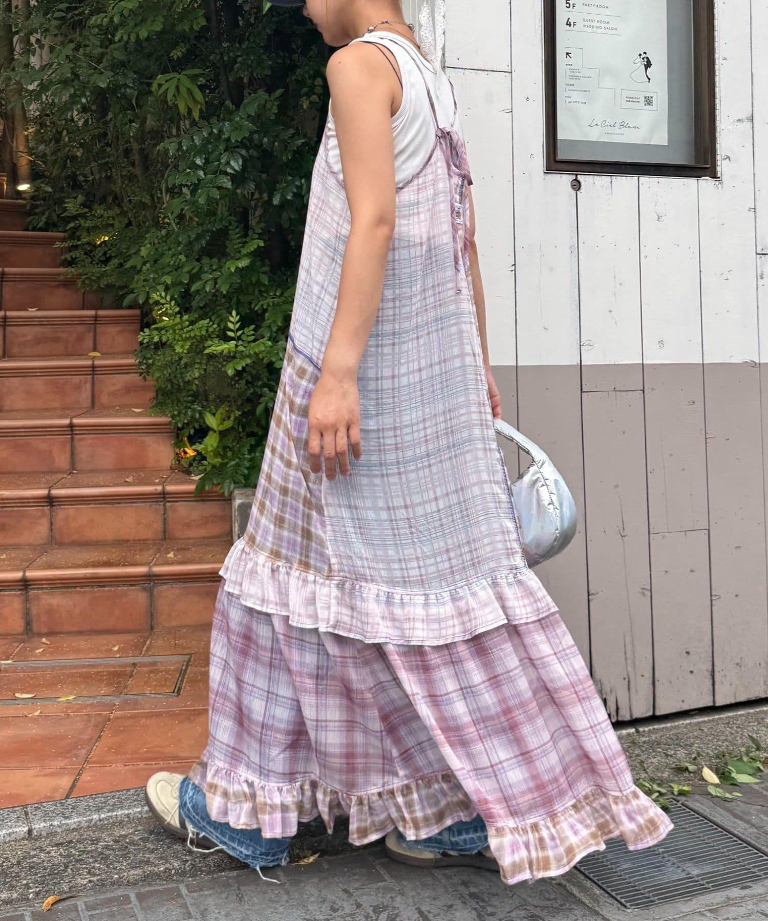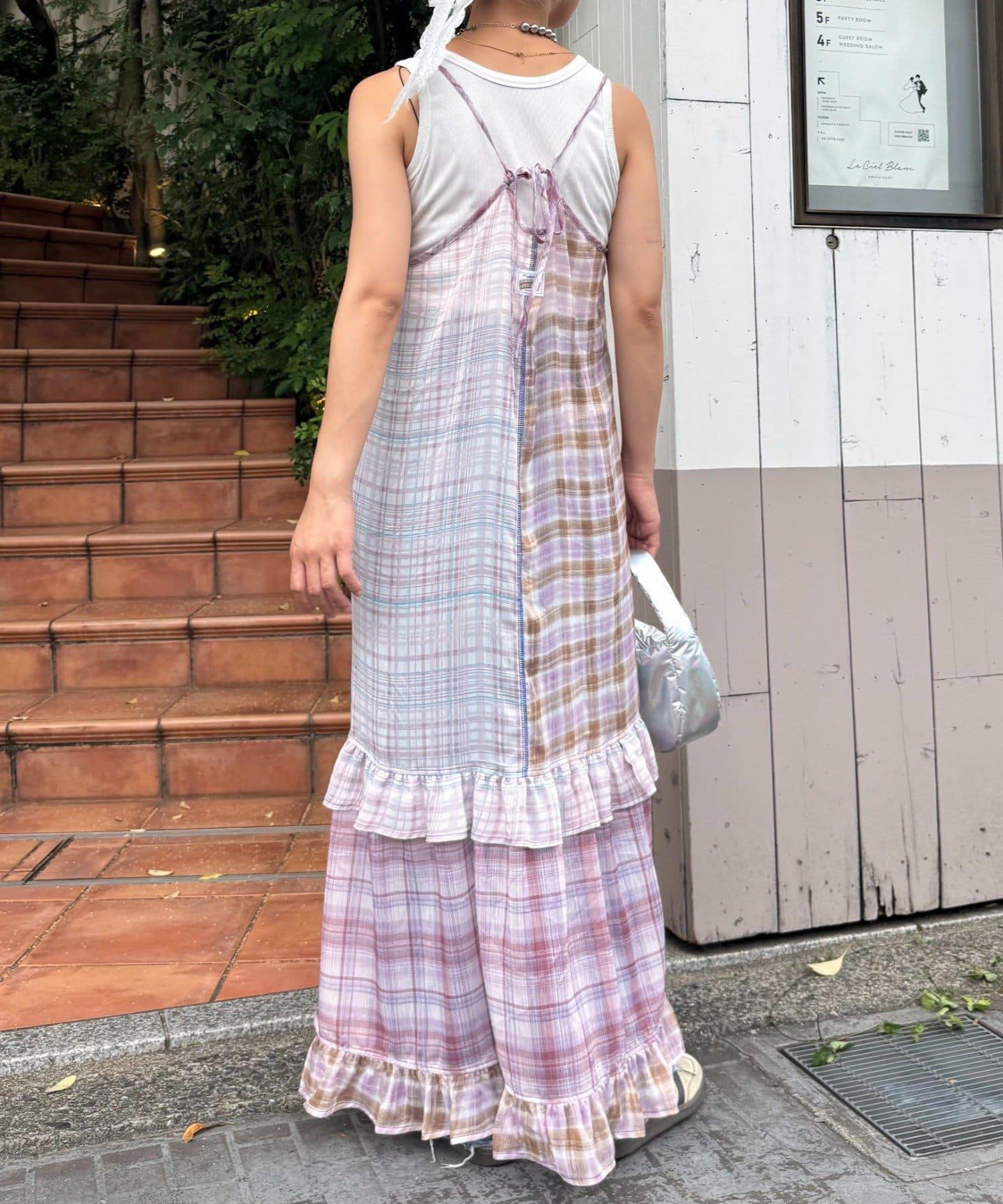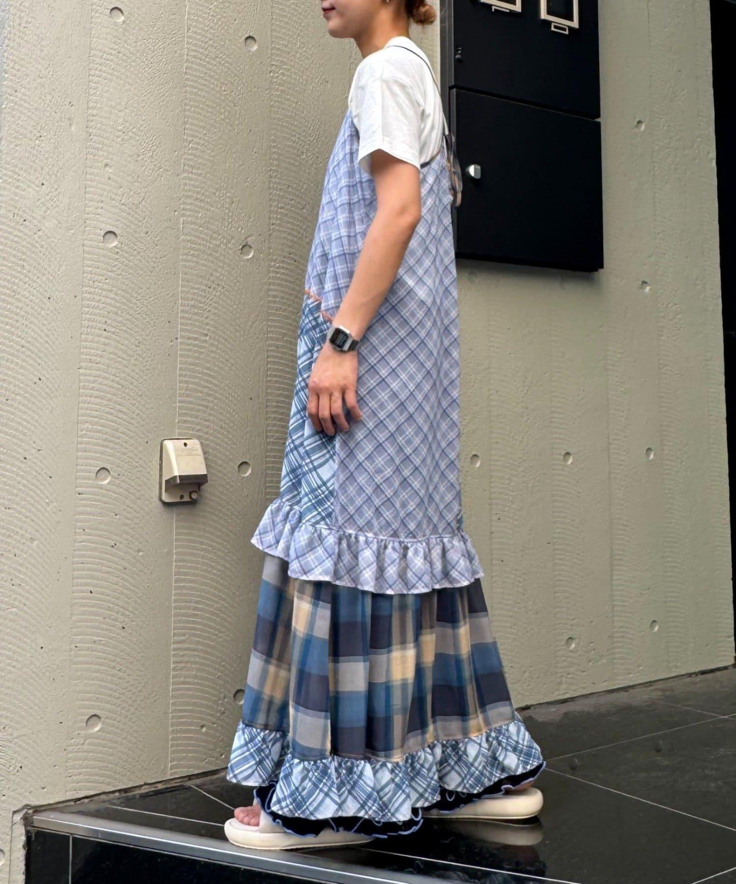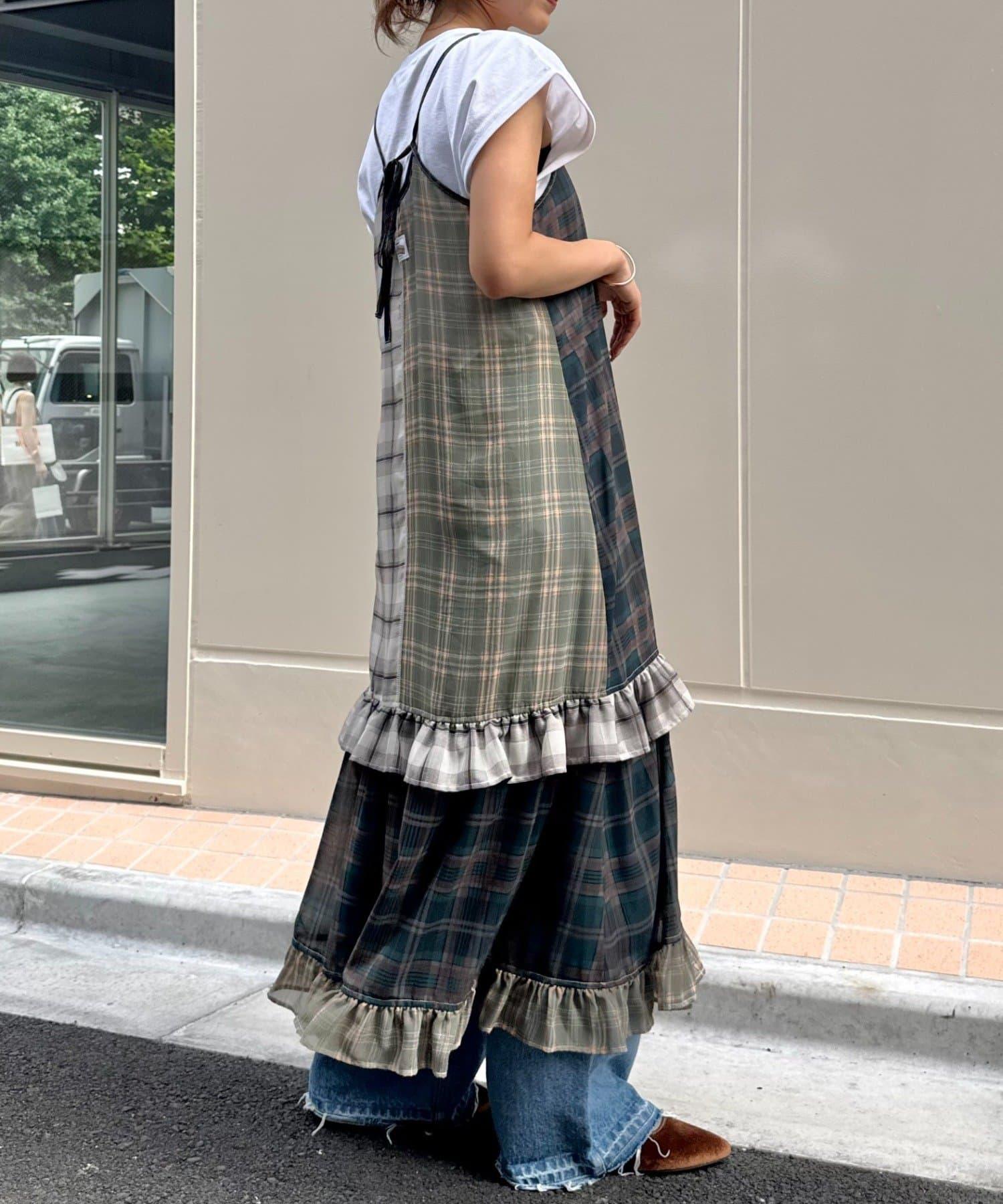 ♩卡米連身裙採用奢華的格紋拼接設計。
