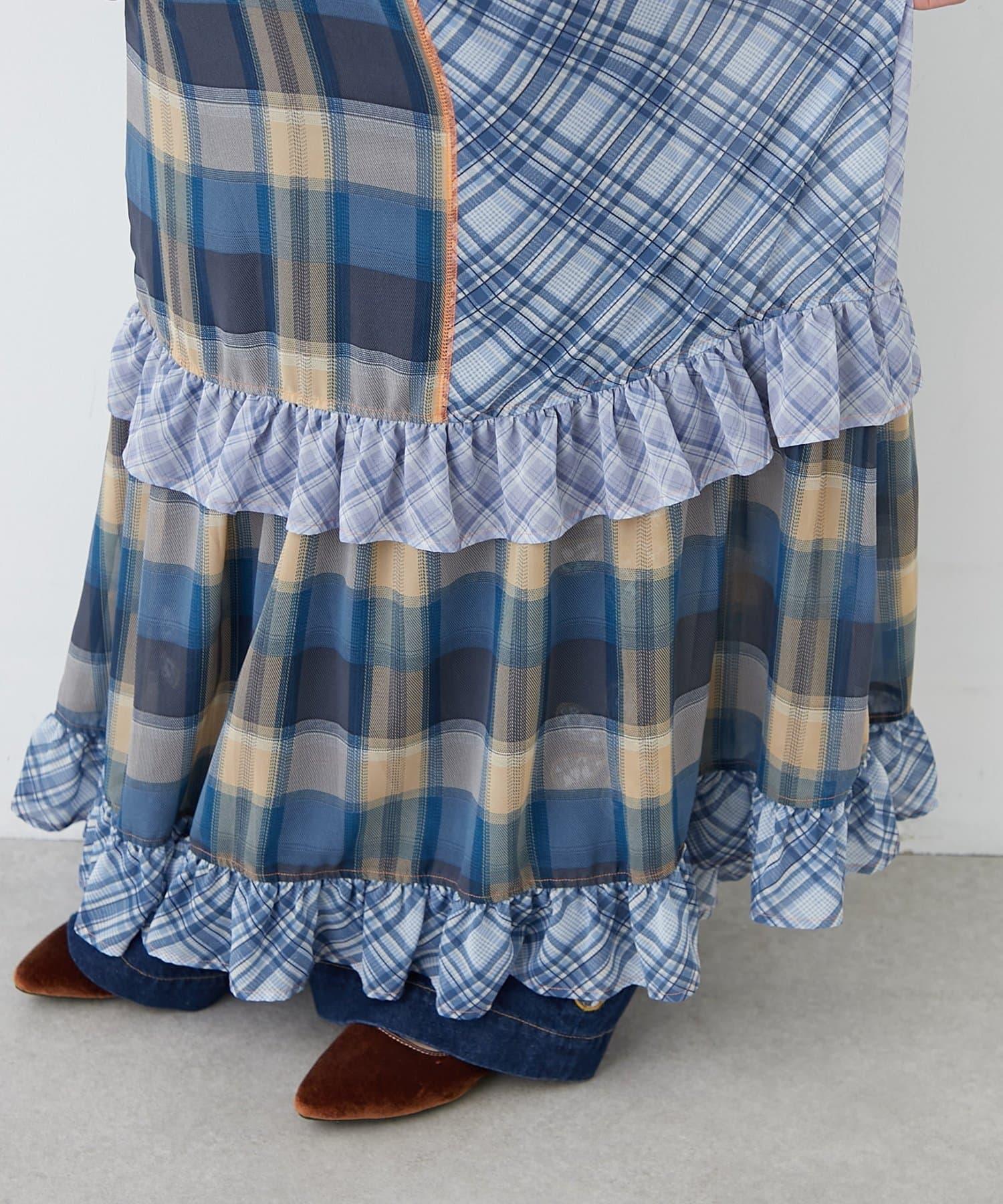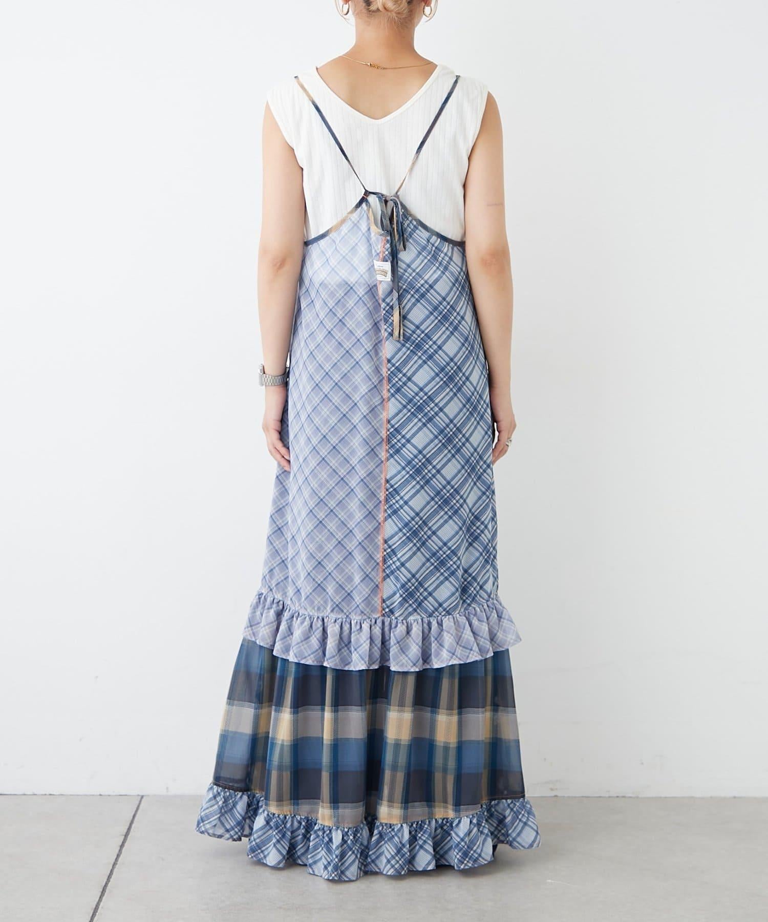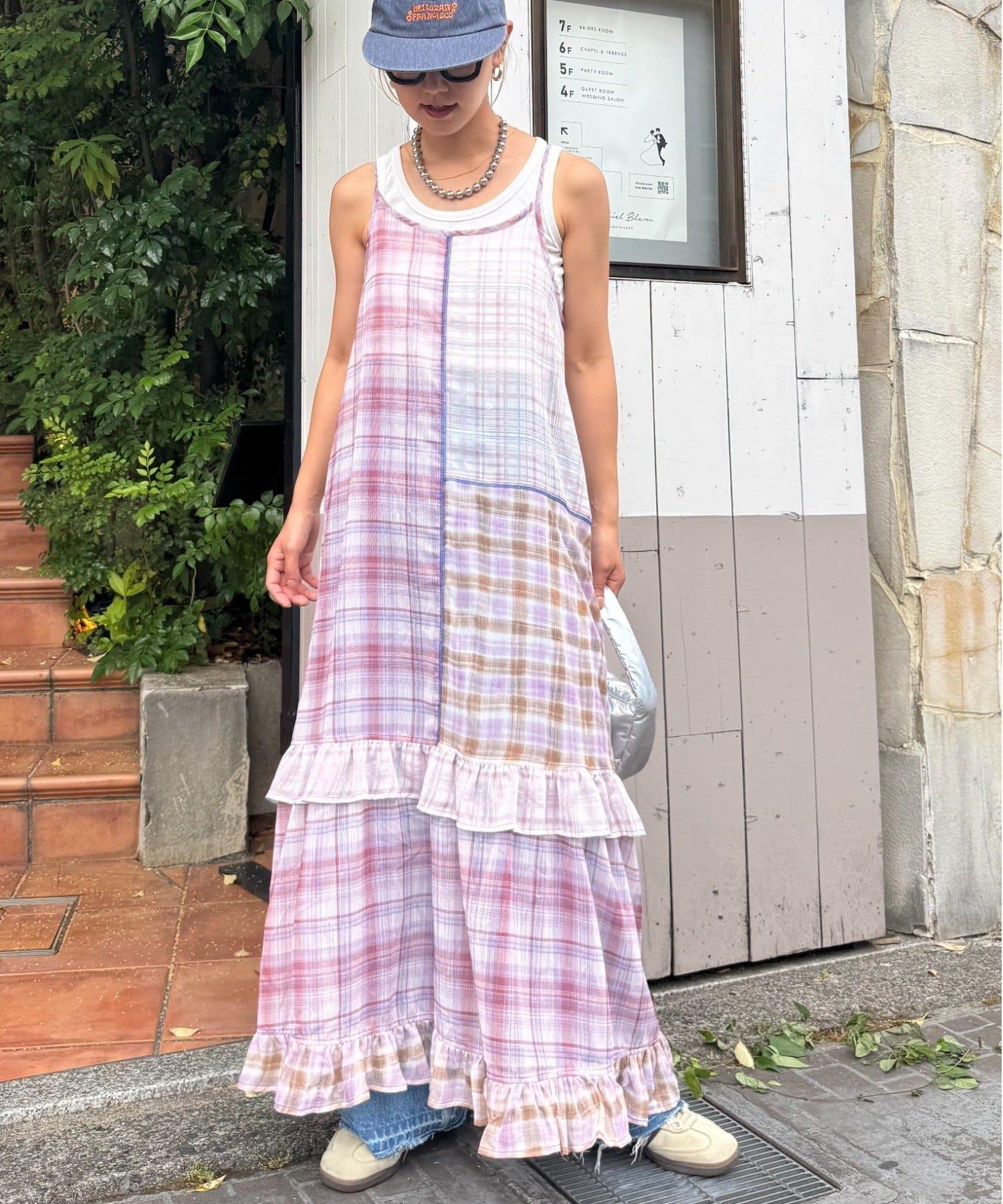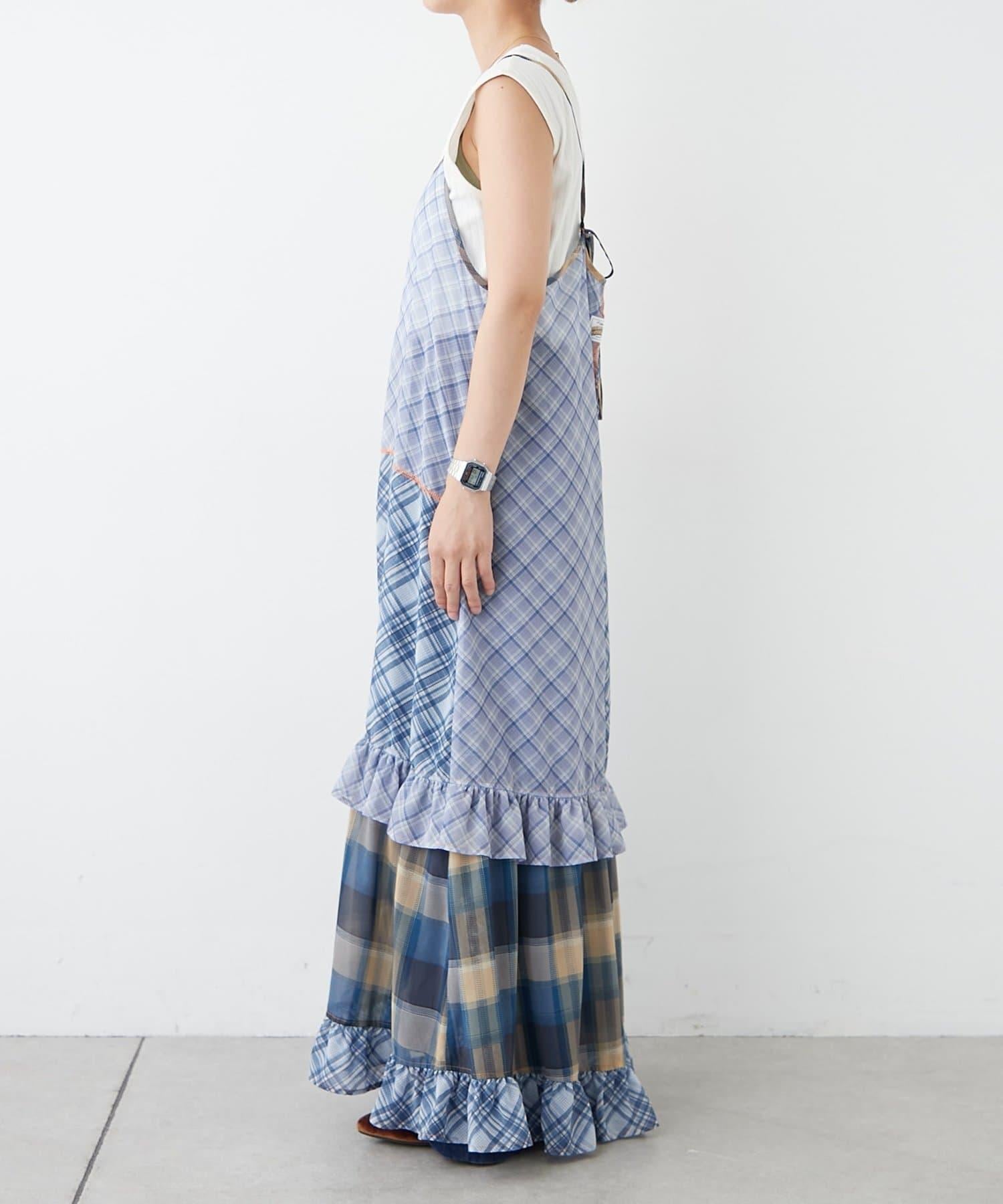 ♩卡米連身裙採用奢華的格紋拼接設計。