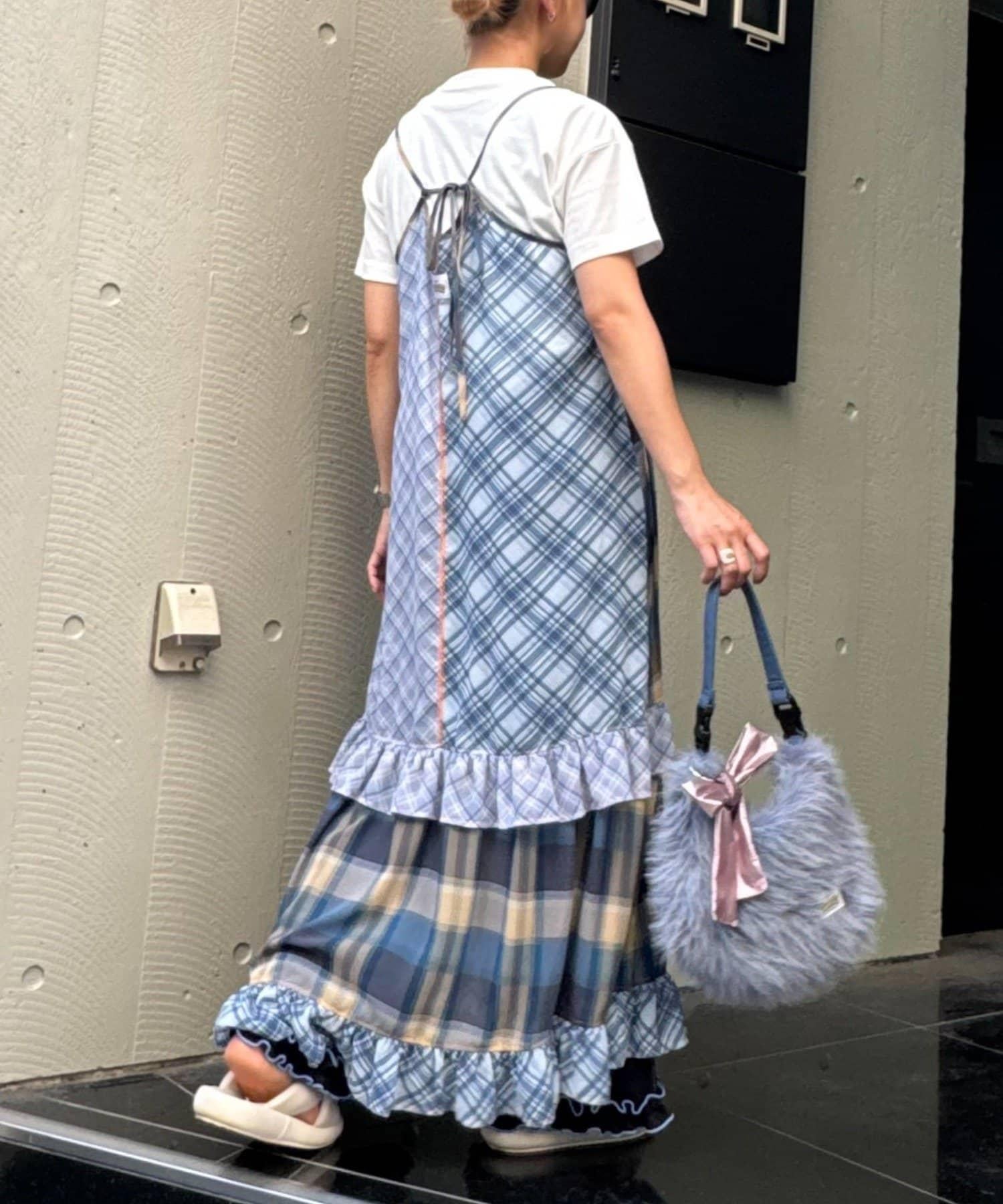肩帶的長度可以通過背後的絲帶來改變,因此無論是高個子還是矮個子,都能輕鬆調整長度。