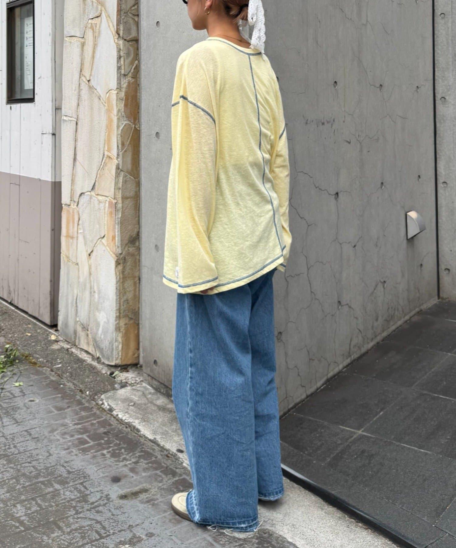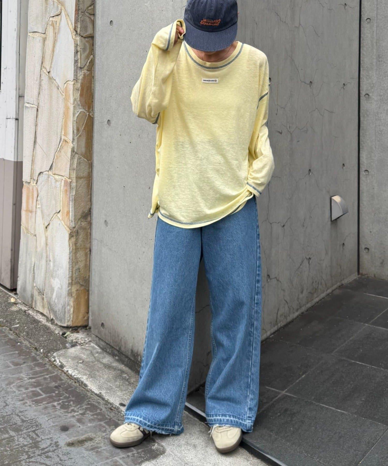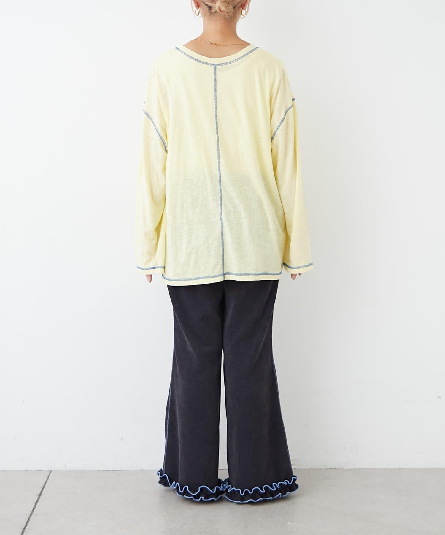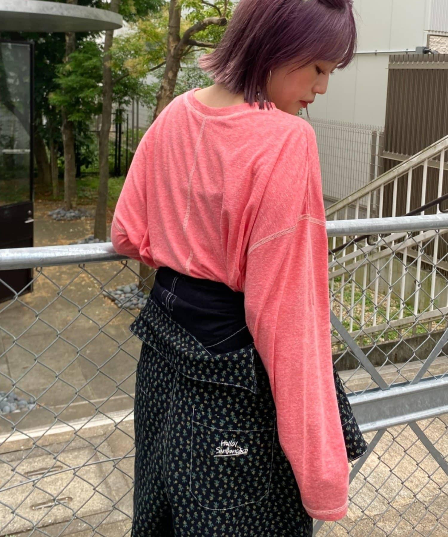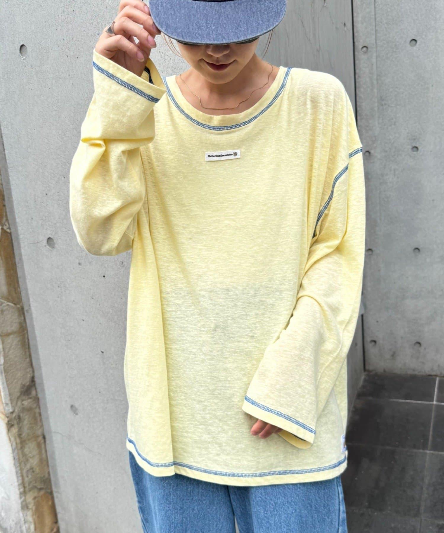 可愛♩透視寬鬆長款T恤,撞色拼接