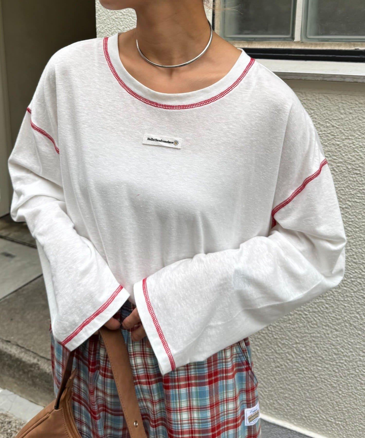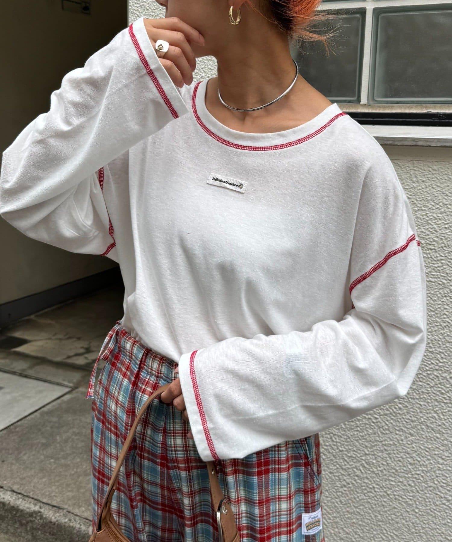 胸前的品牌名稱貼布為這件百搭上衣增添了亮點,單穿或疊穿都很好看。