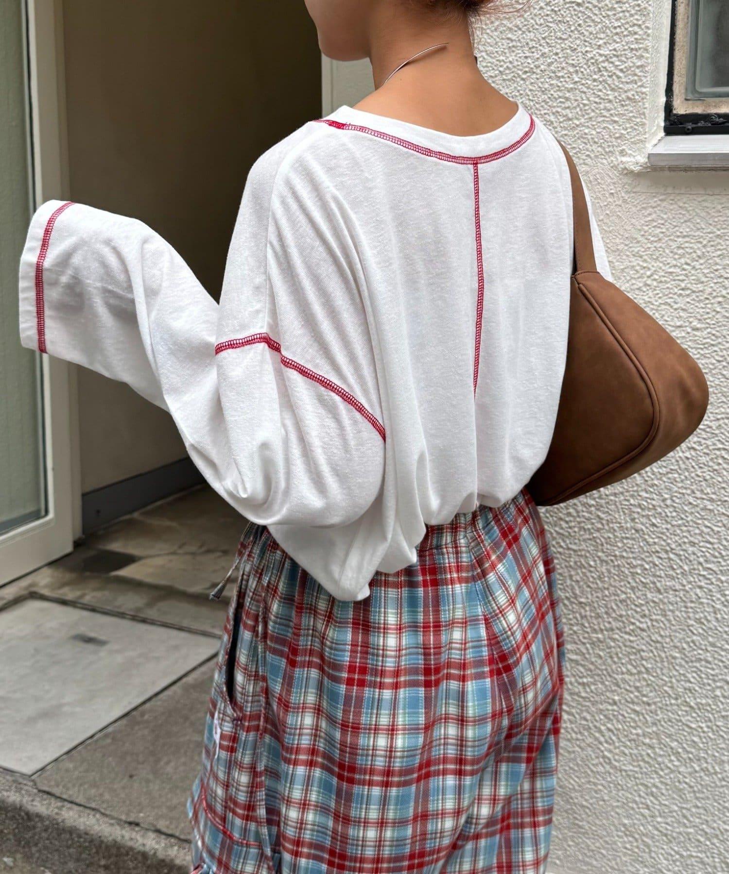 這款 T 恤可以寬鬆穿著,非常可愛。現在有了如此精緻平衡的長 T!