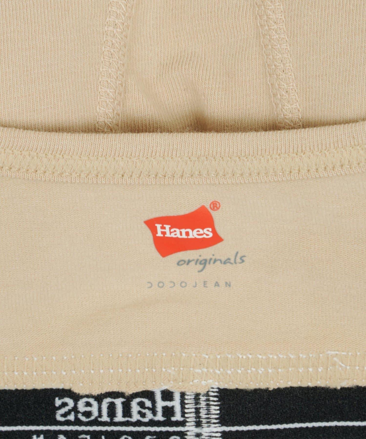 Hanes(R) (Haines) 的標誌性鬆緊帶設計在鬆緊帶下方印有 DODO JEAN 標誌和雙名。