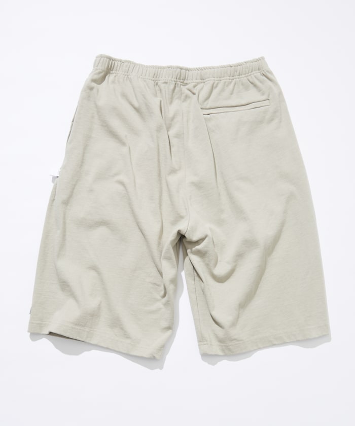 短褲由厚重的針織面料製成,這種面料曾被用於製作各種物品。今年春季增加了新的顏色。短褲長至膝蓋以下,側袋和臀袋都有拉鍊。這種堅韌但厚度適中的面料可用於多種用途,從房間到城鎮再到野營。