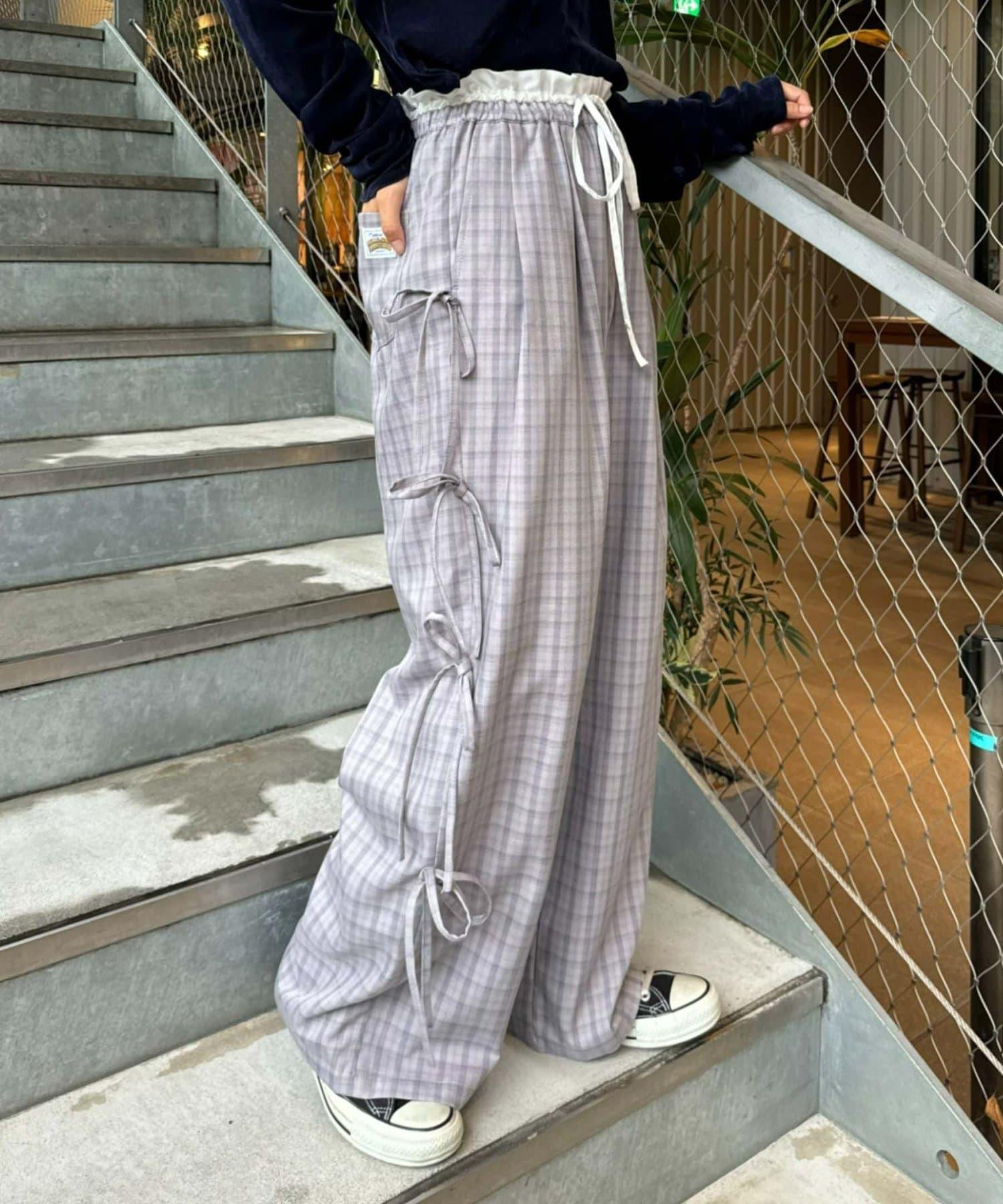 【HELLO.SANFRANCISCO】側邊蝴蝶結格紋休閒褲