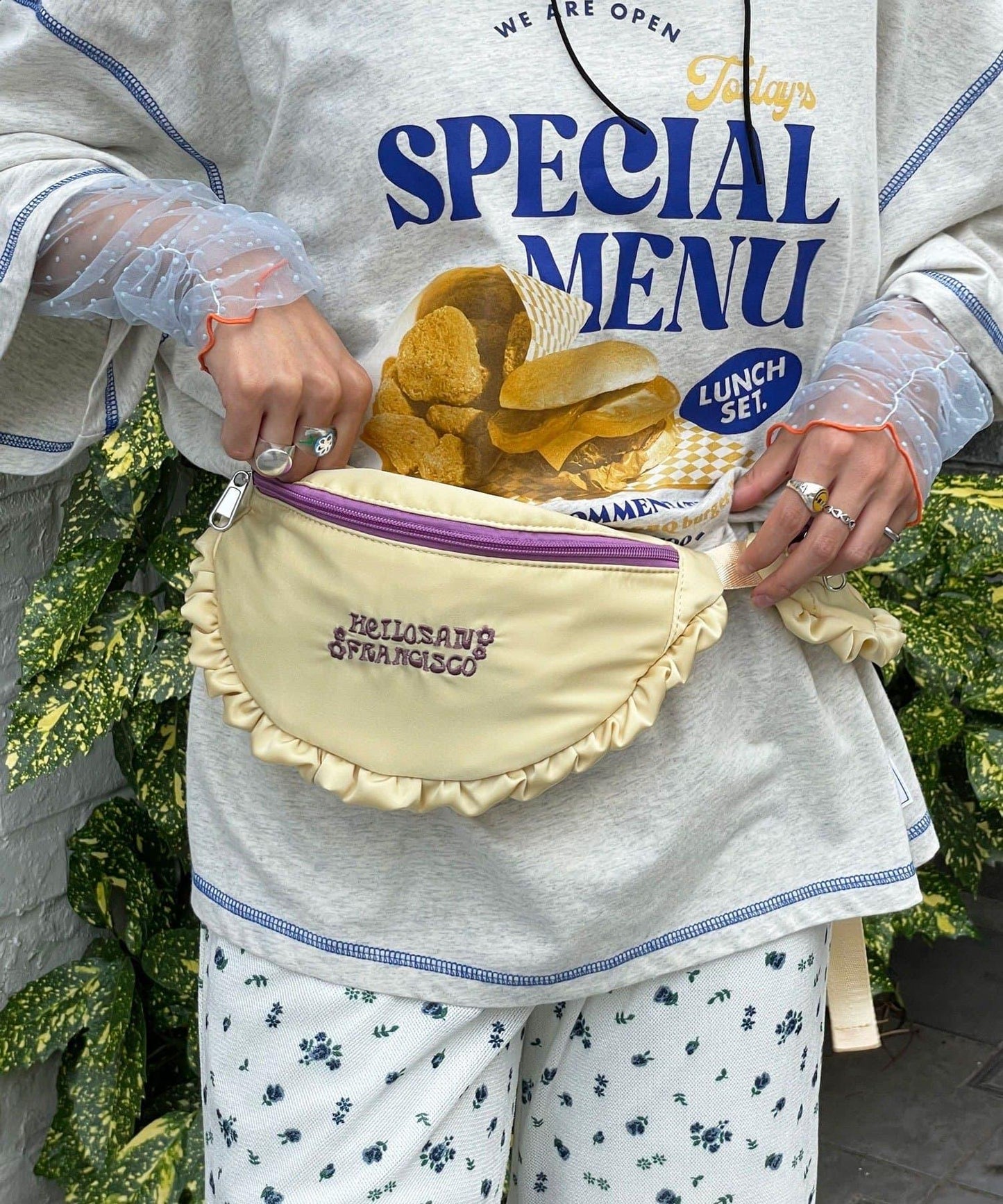 【HELLO.SANFRANCISCO/哈羅舊金山】緞面荷葉邊組合腰包