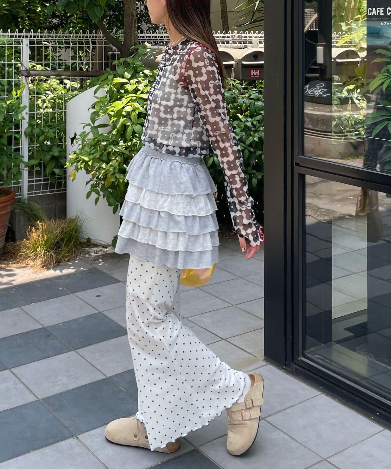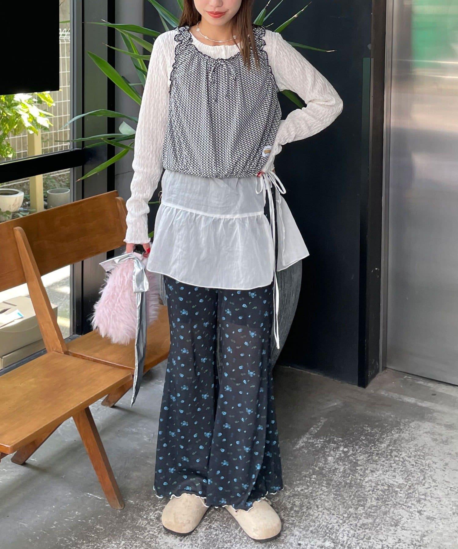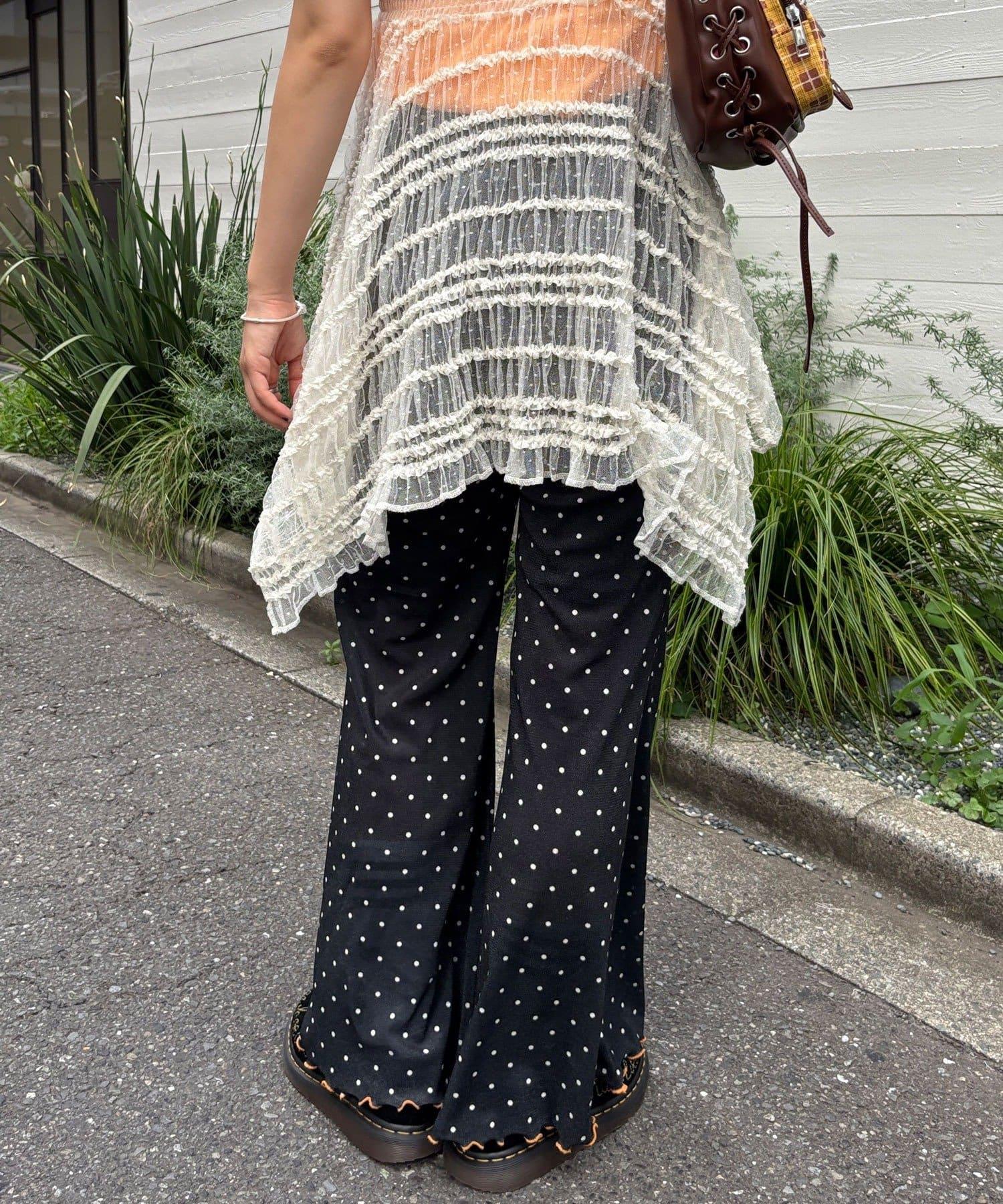 喇叭褲有兩種圖案可供選擇:碎花和圓點。