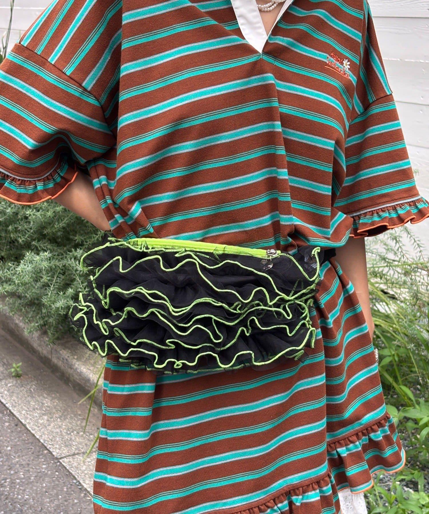 這款引人注目的腰包帶有大量薄紗流蘇。