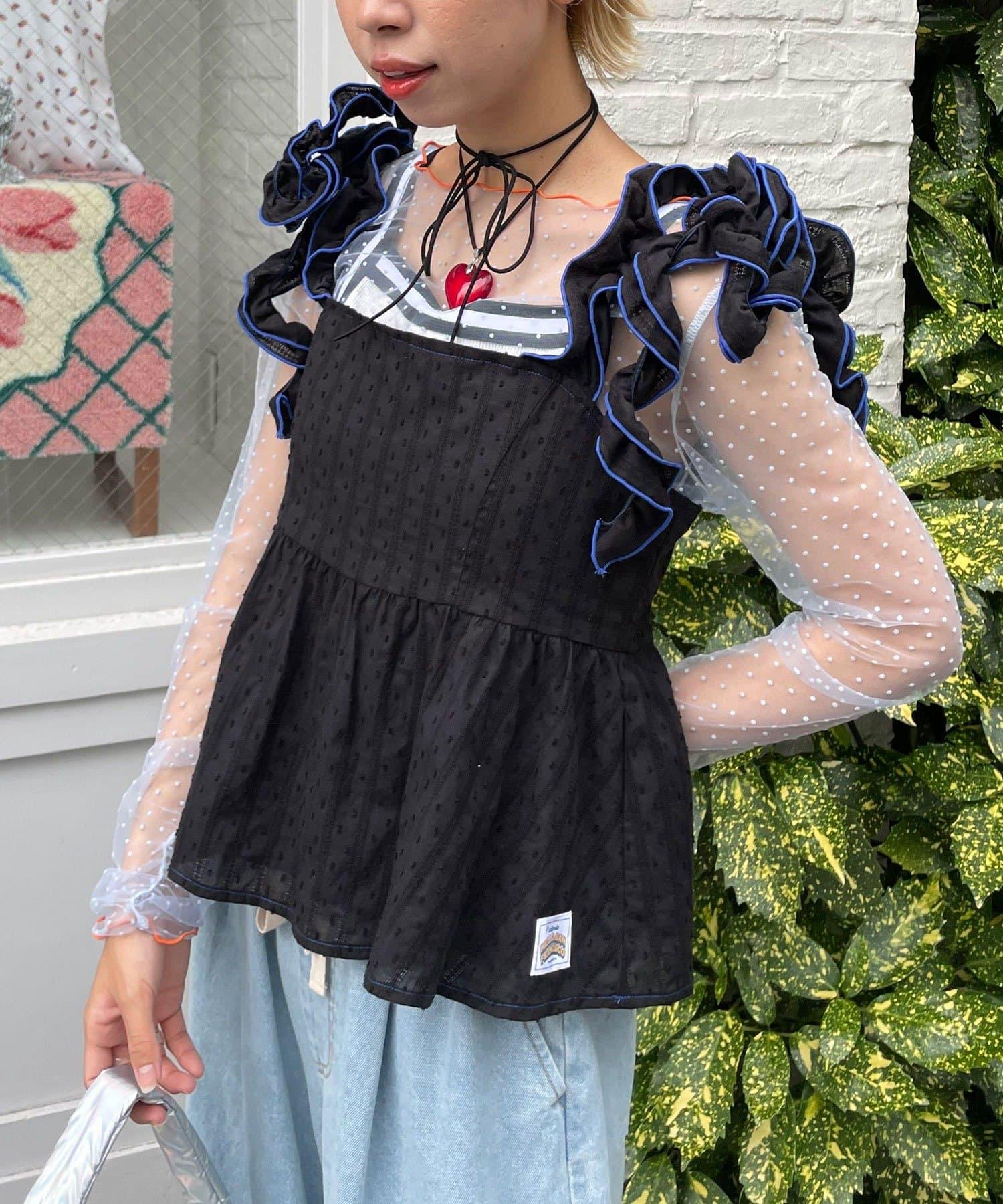 【HELLO.SANFRANCISCO/哈羅舊金山】麻點荷葉邊吊帶背心