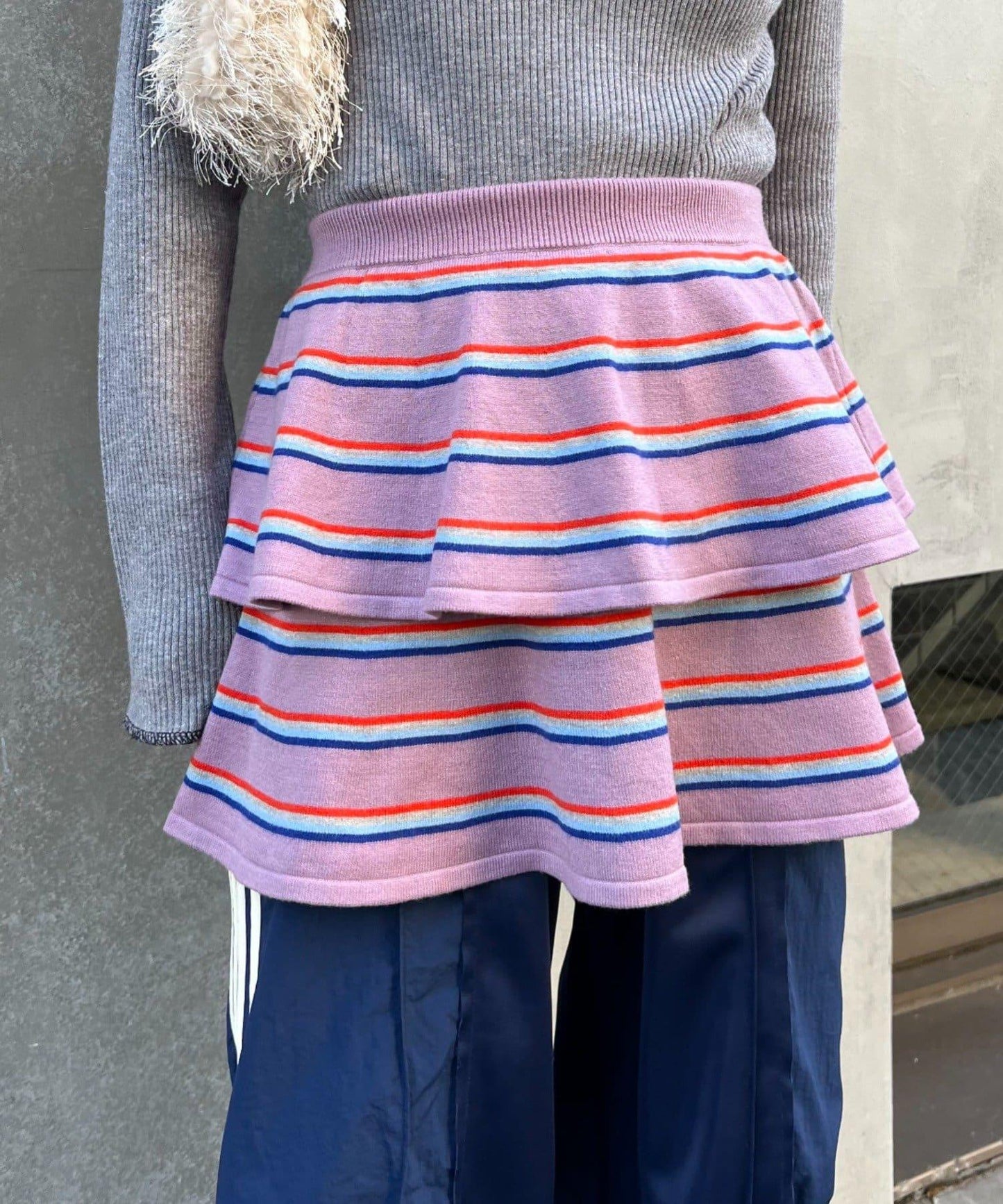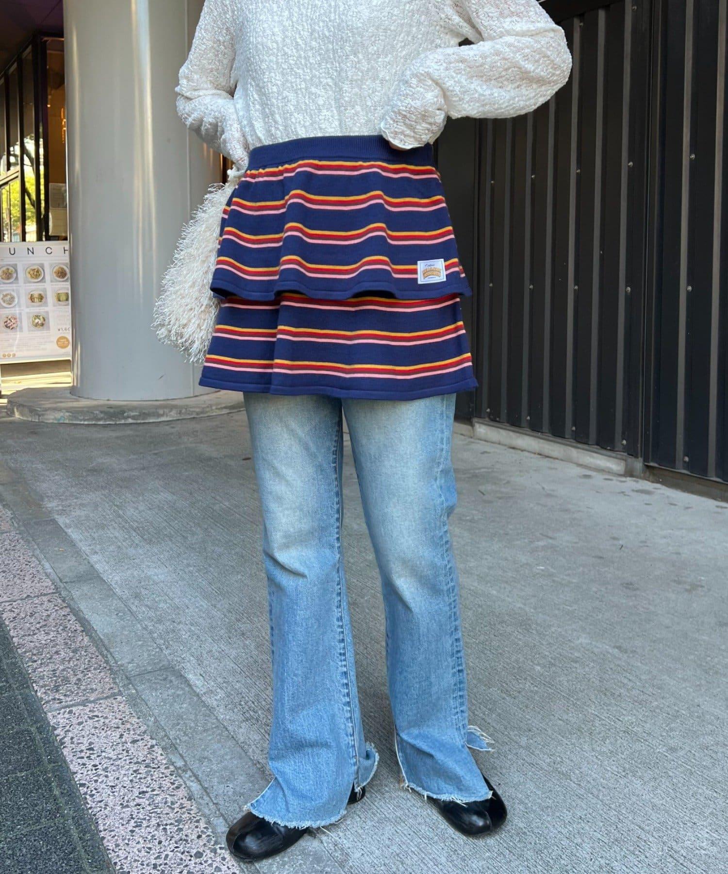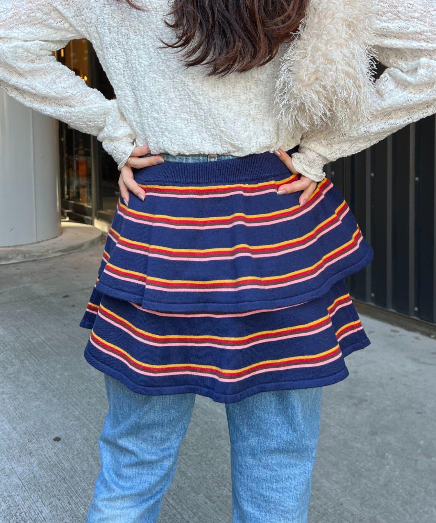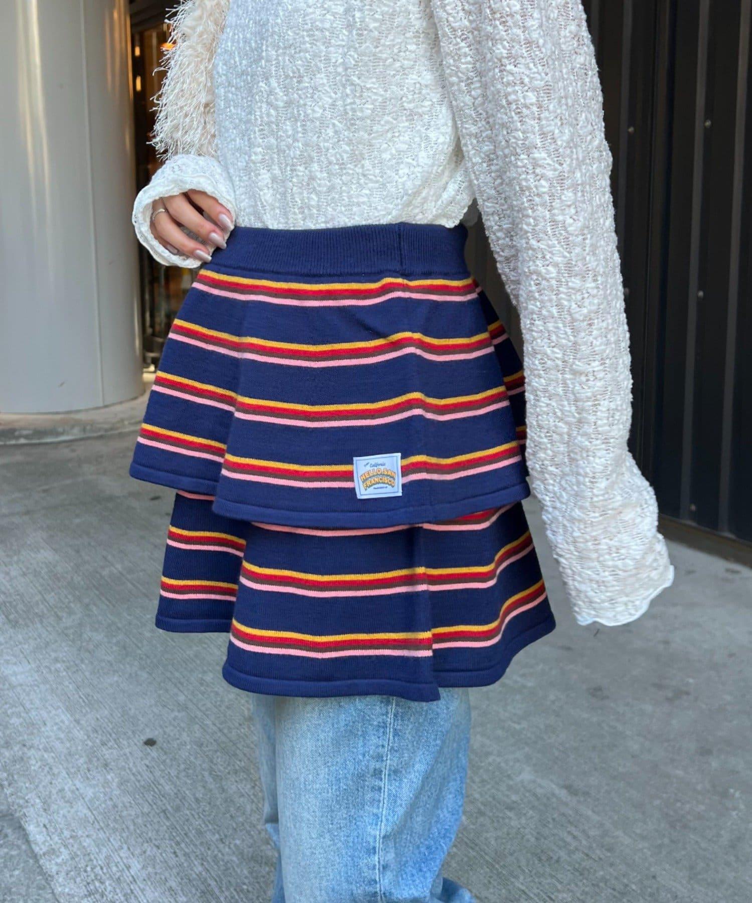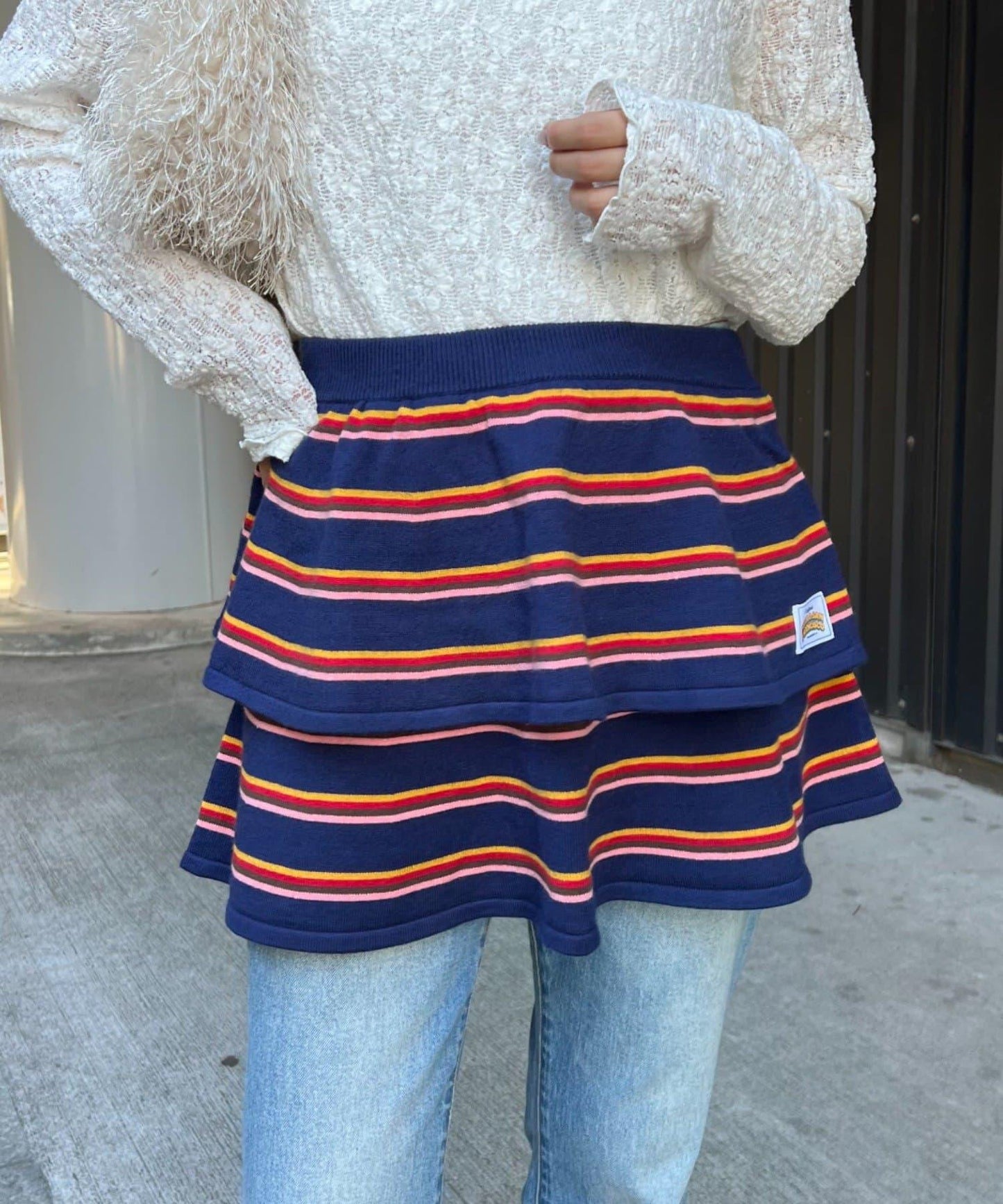 【HELLO.SANFRANCISCO】多色條紋針織迷你裙