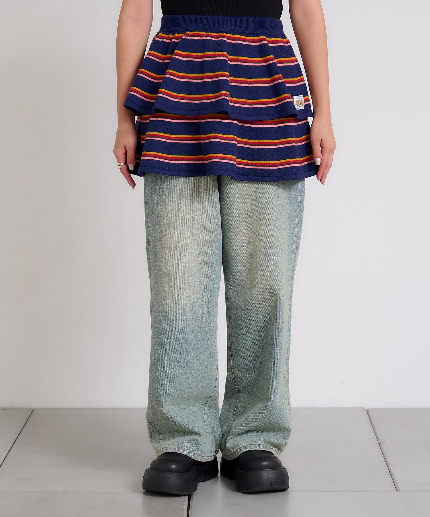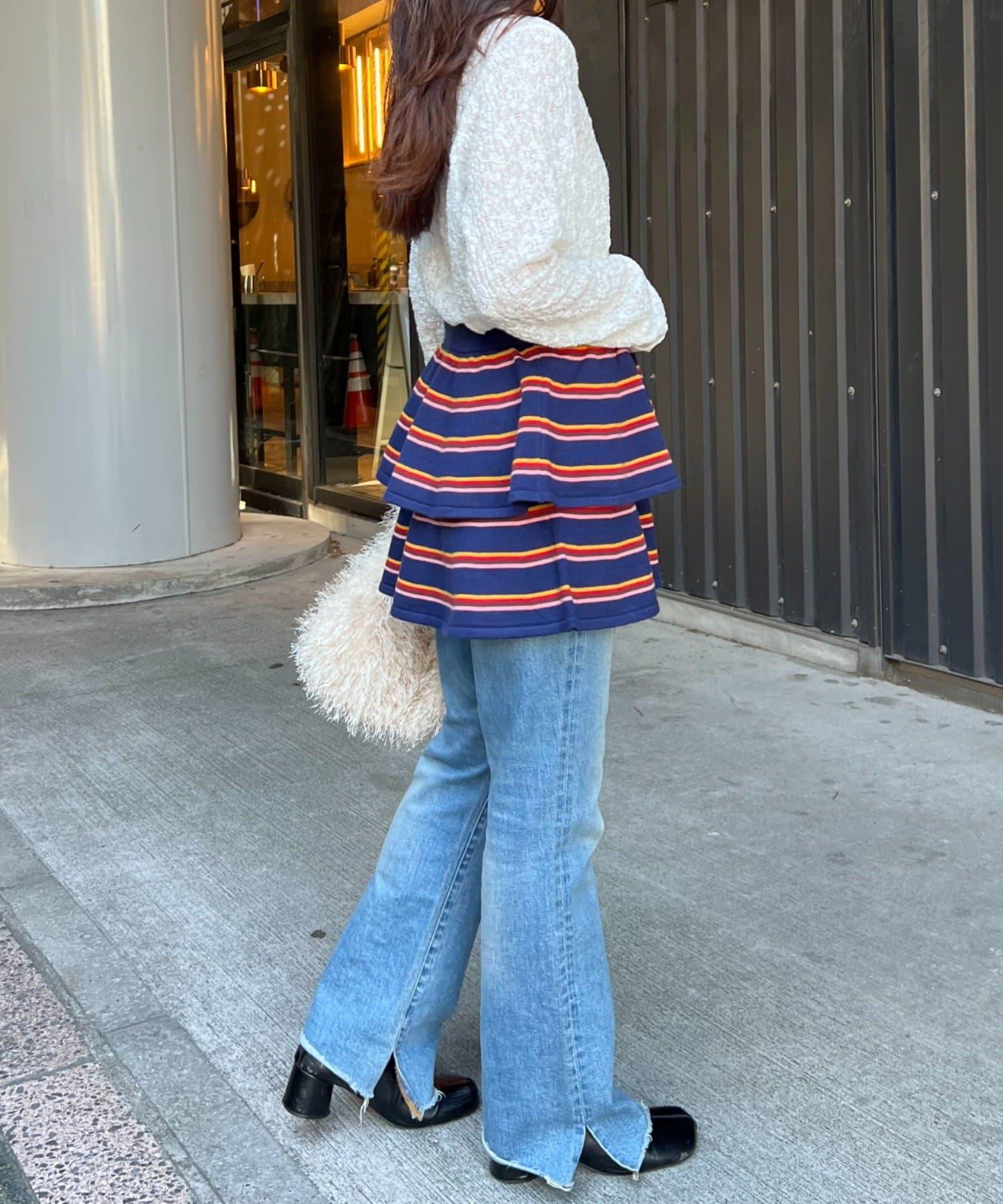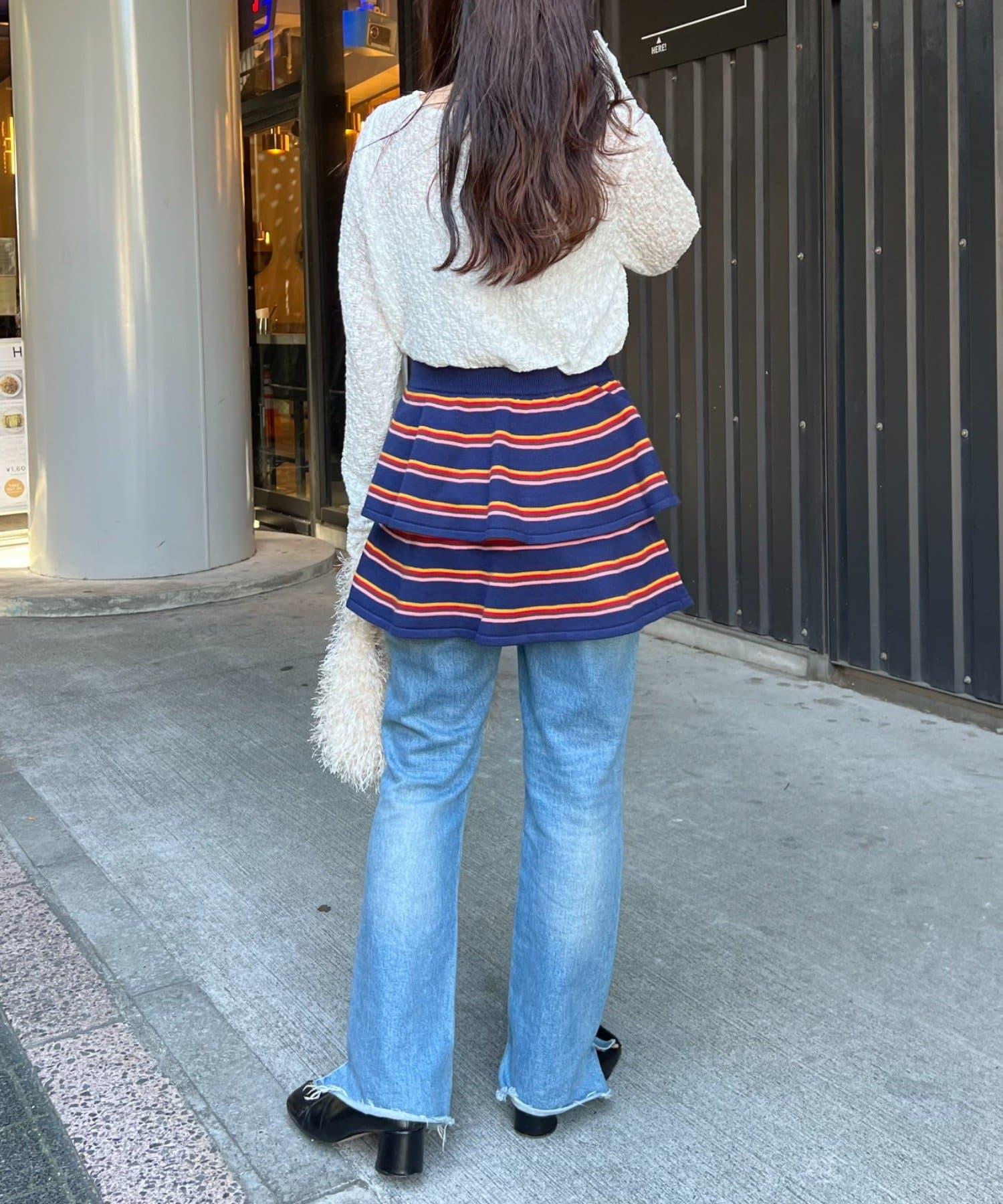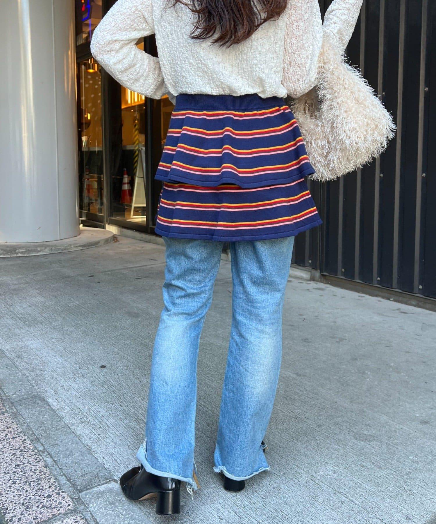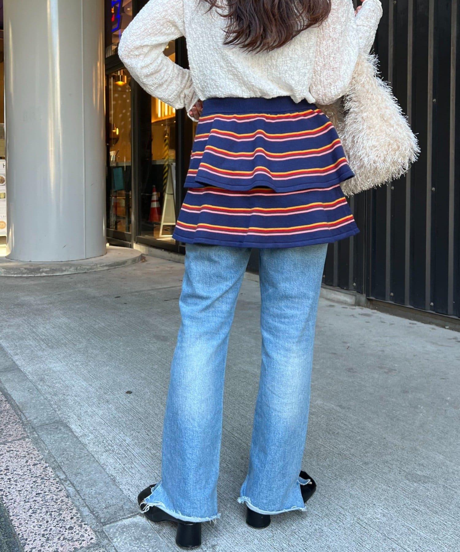 【HELLO.SANFRANCISCO】多色條紋針織迷你裙