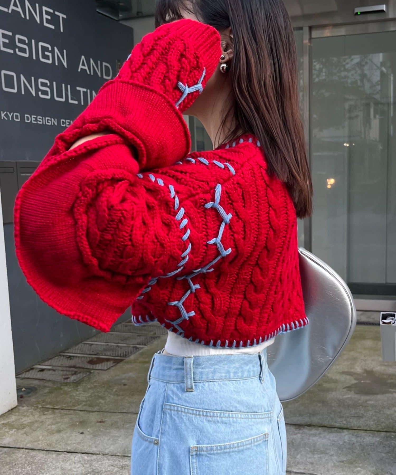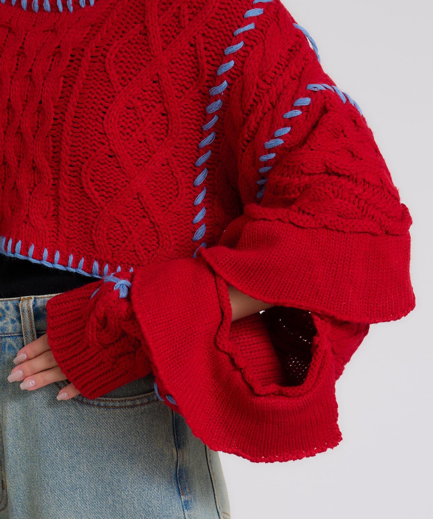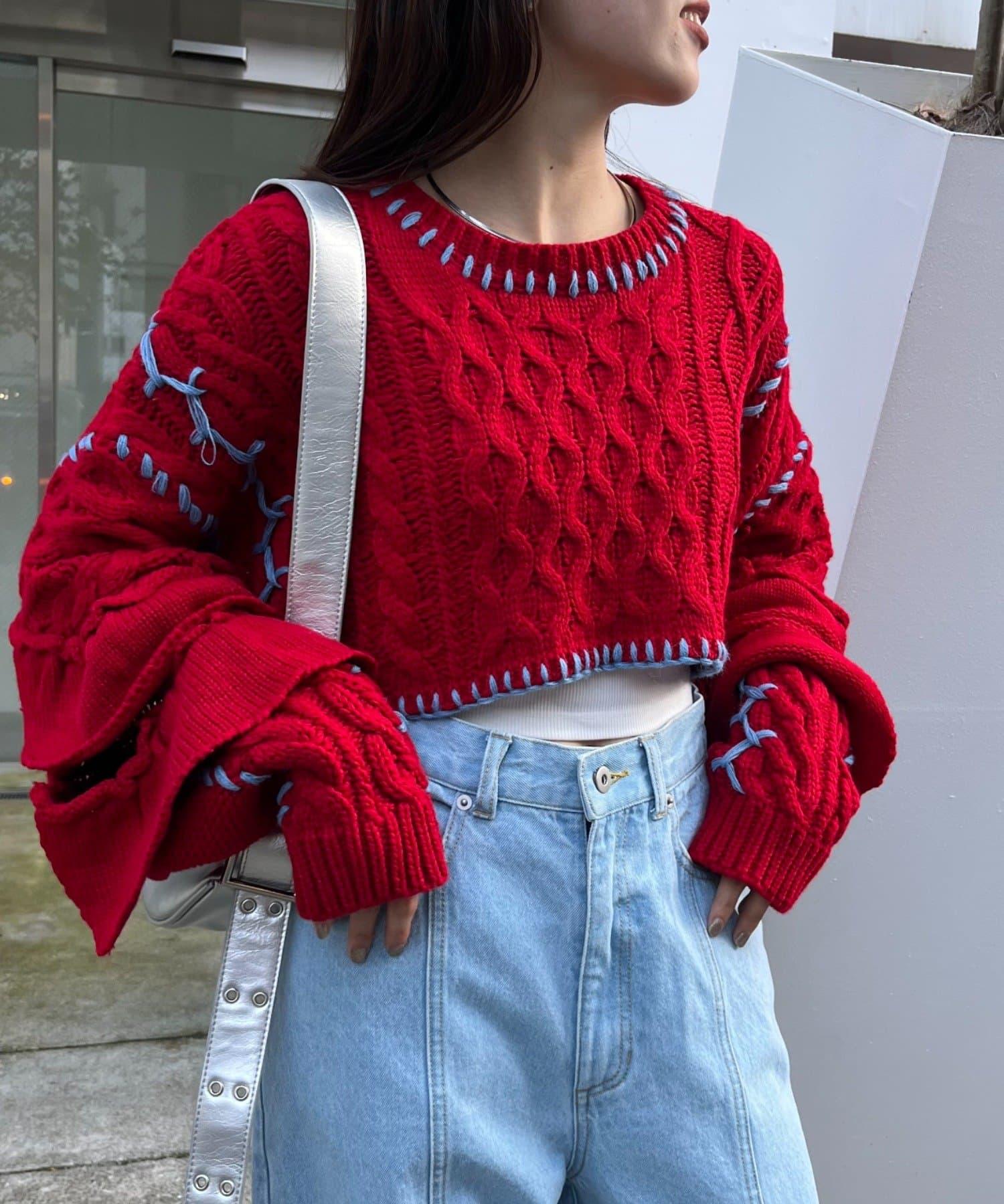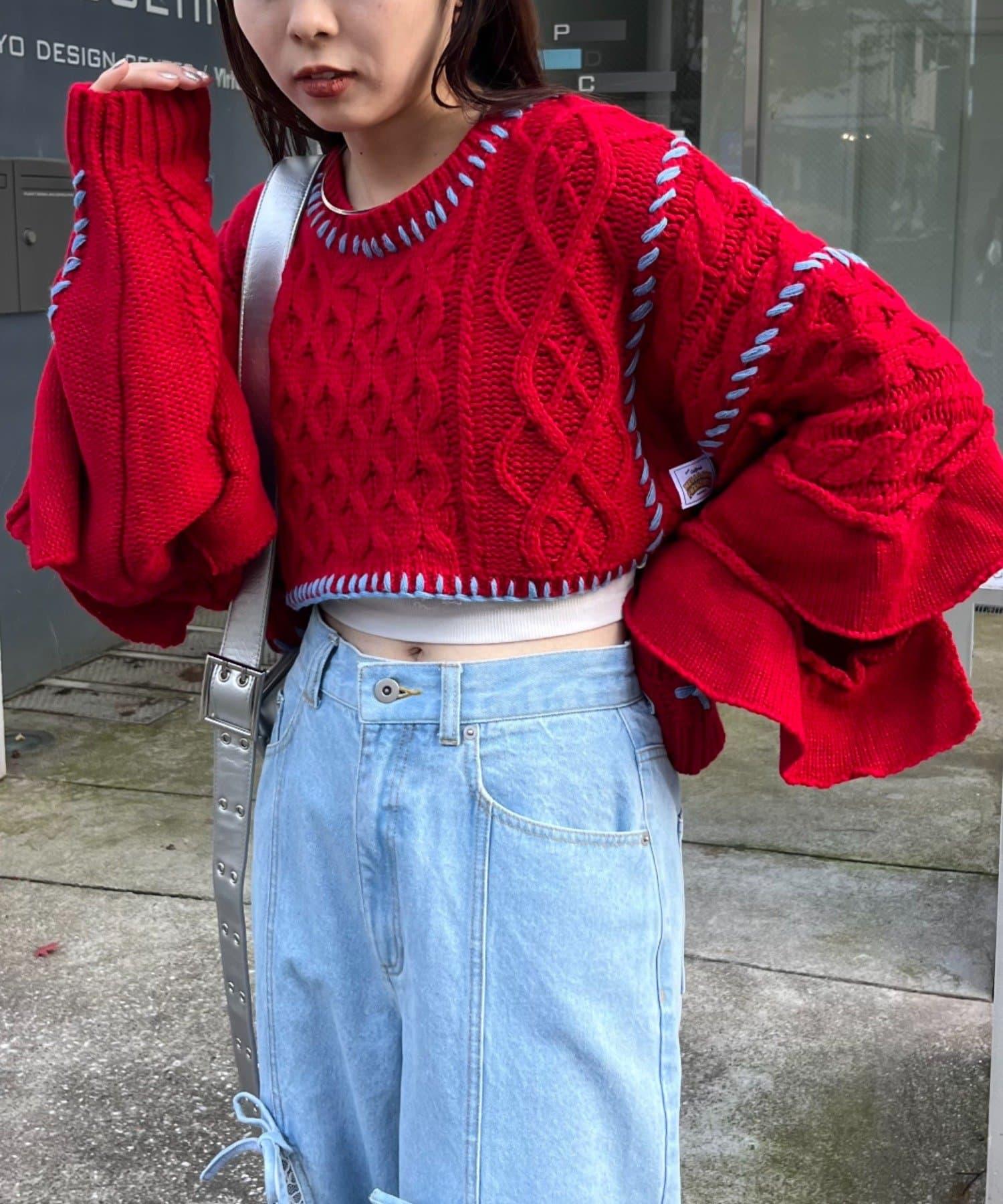 短款針織衫上的荷葉邊和手工縫線是一款時尚單品。
