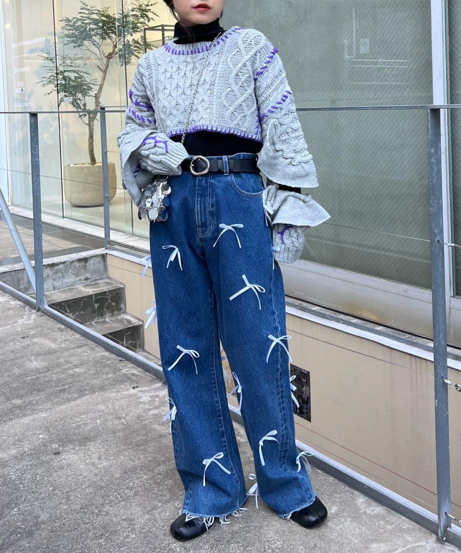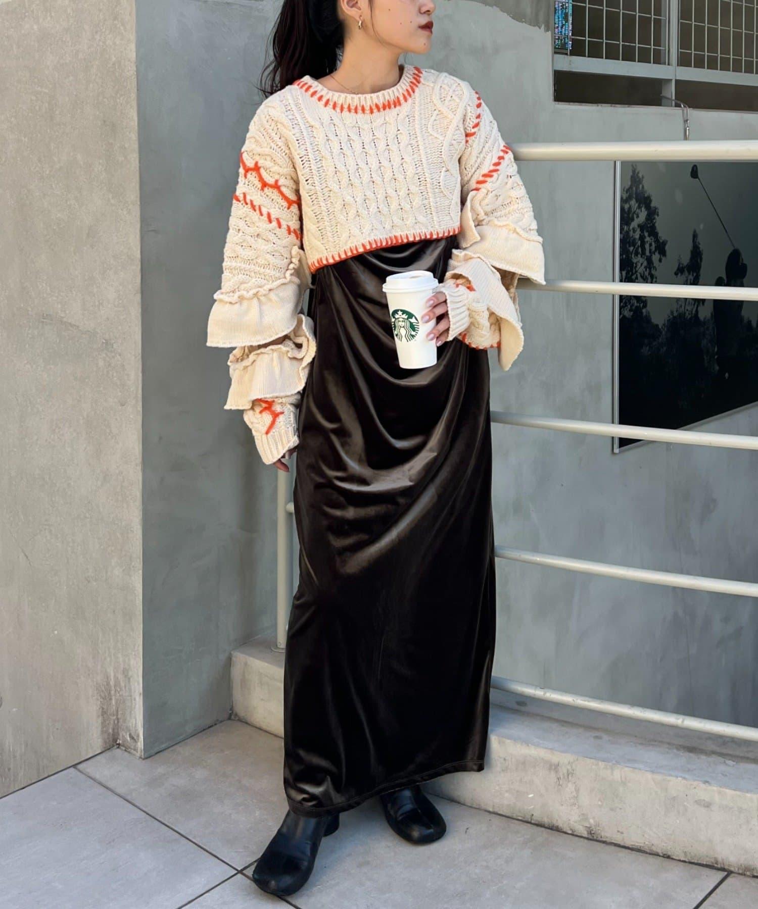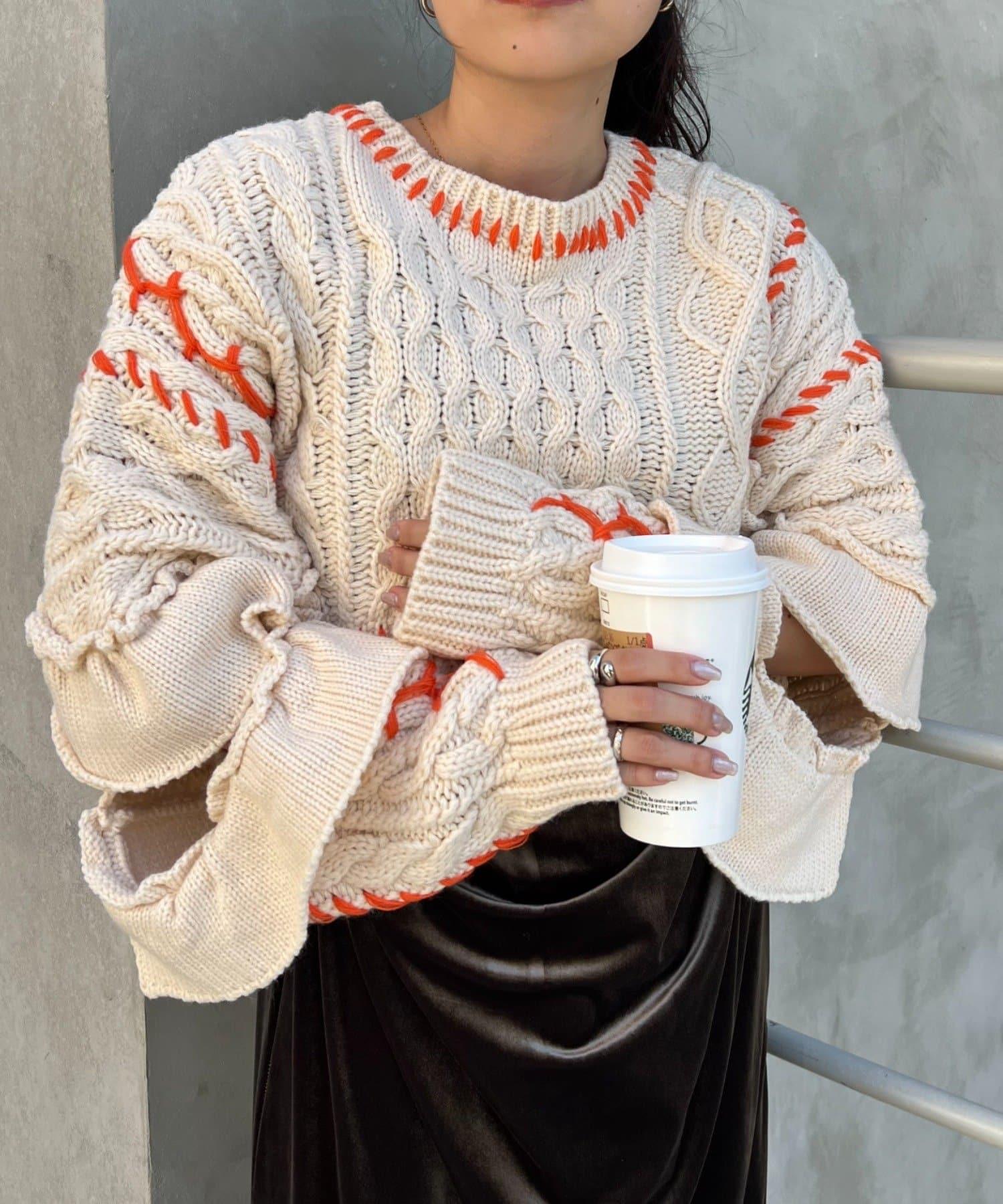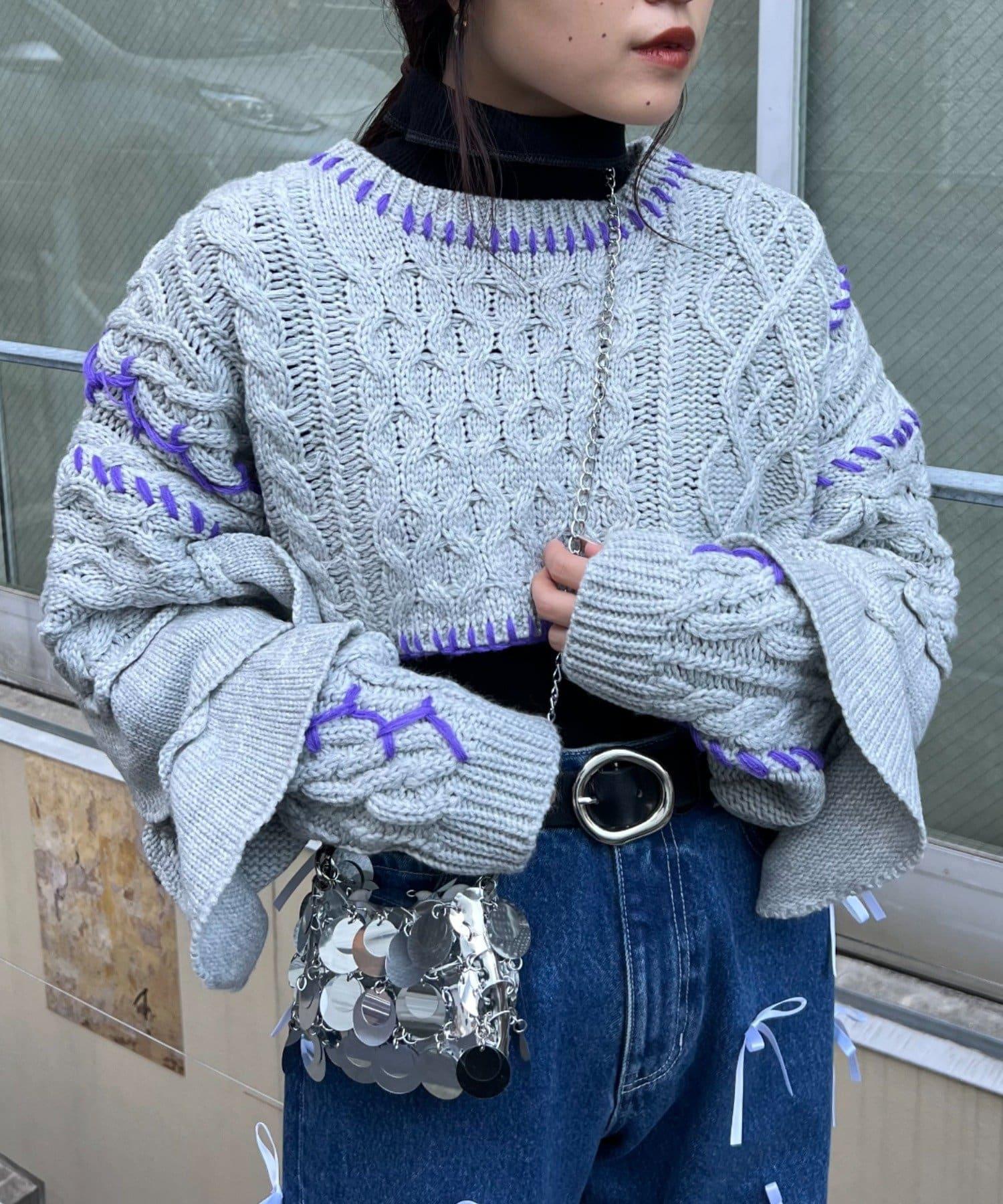 短款針織衫上的荷葉邊和手工縫線是一款時尚單品。