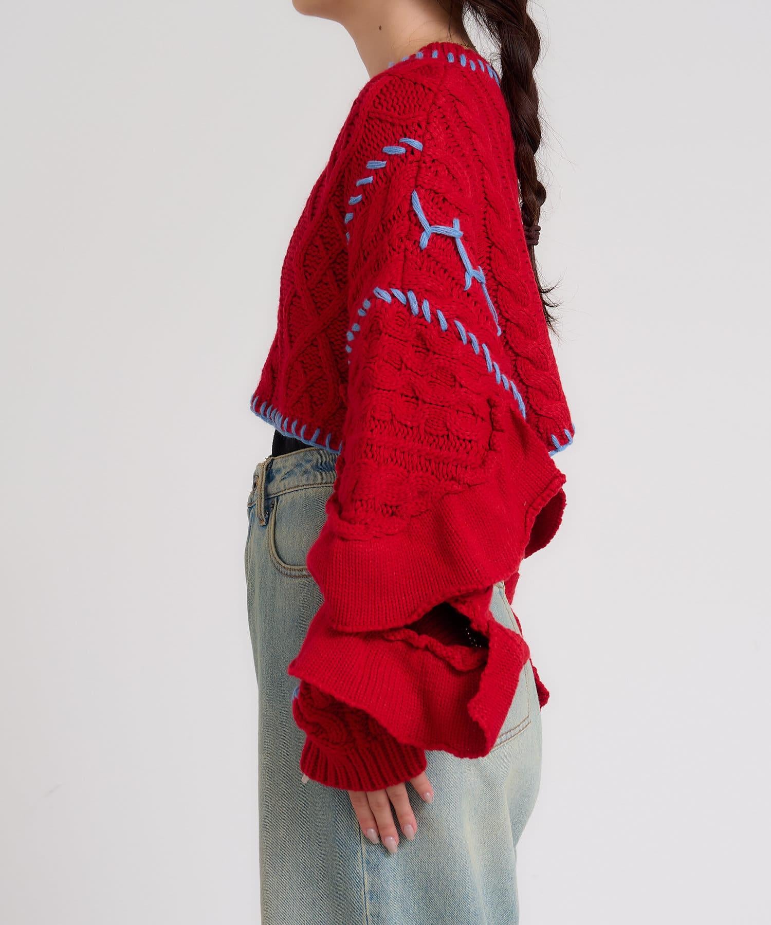 【HELLO.SANFRANCISCO】手工縫製褶邊鏤空針織開衫