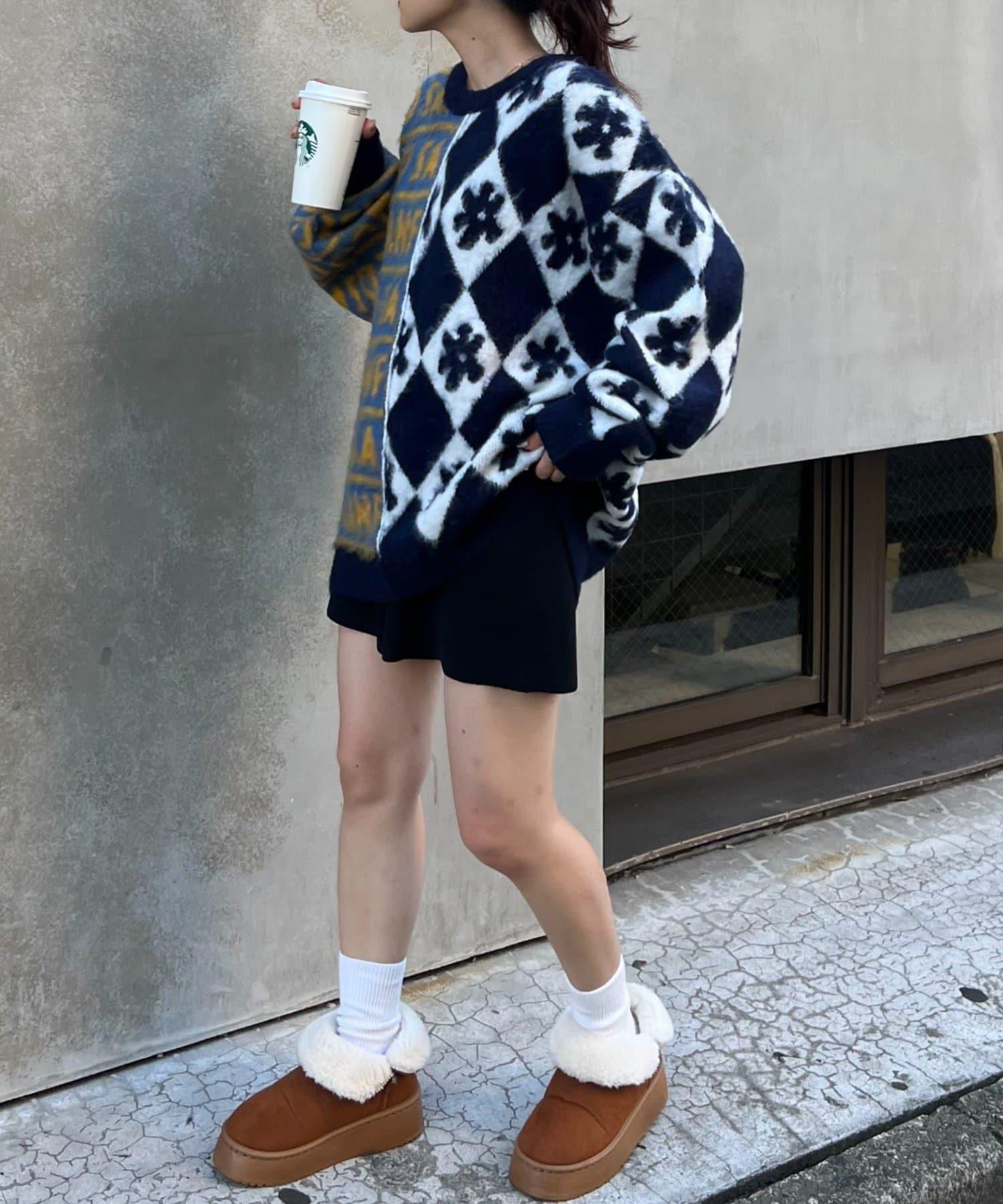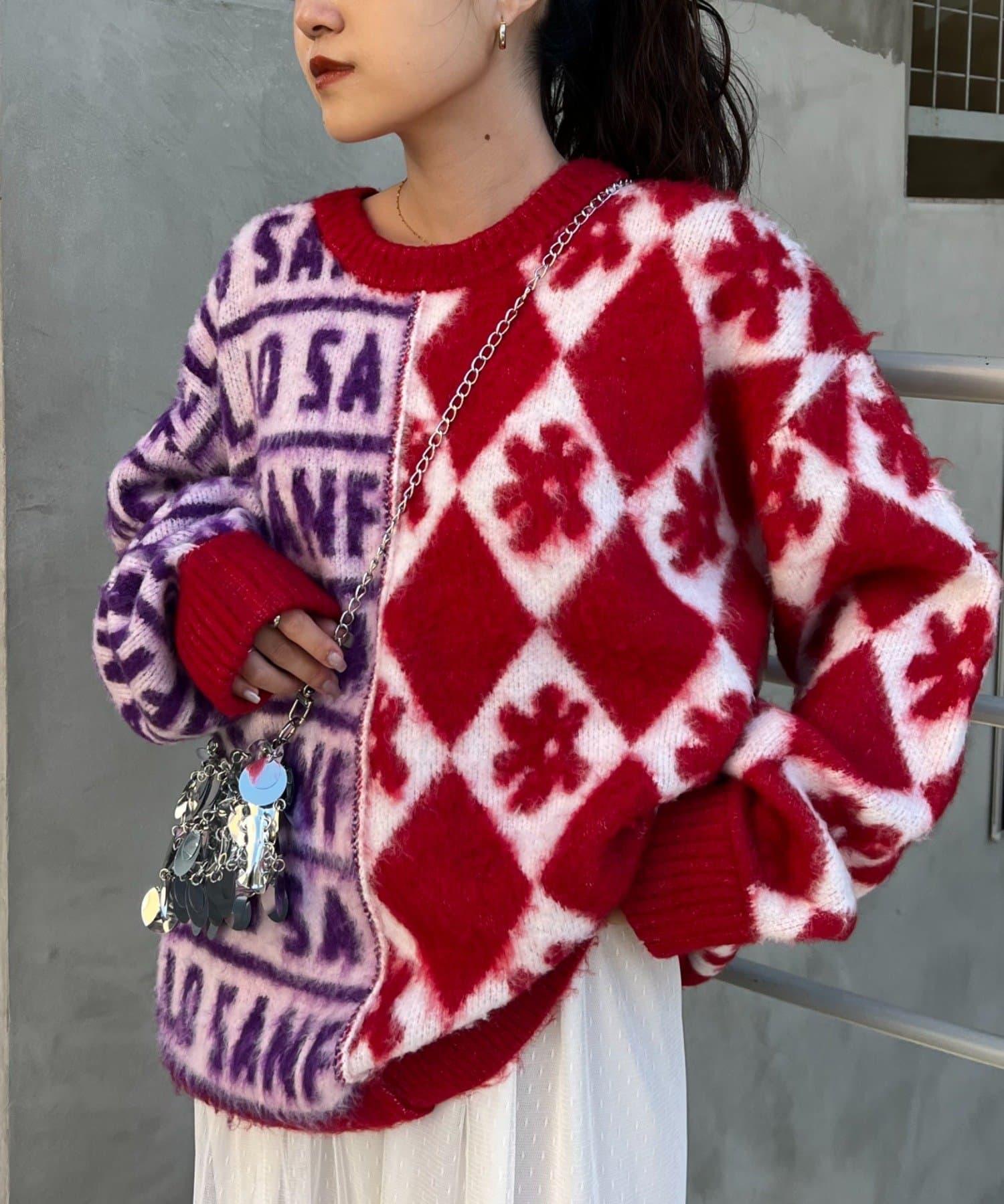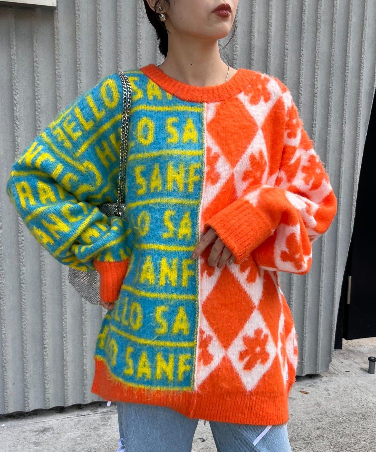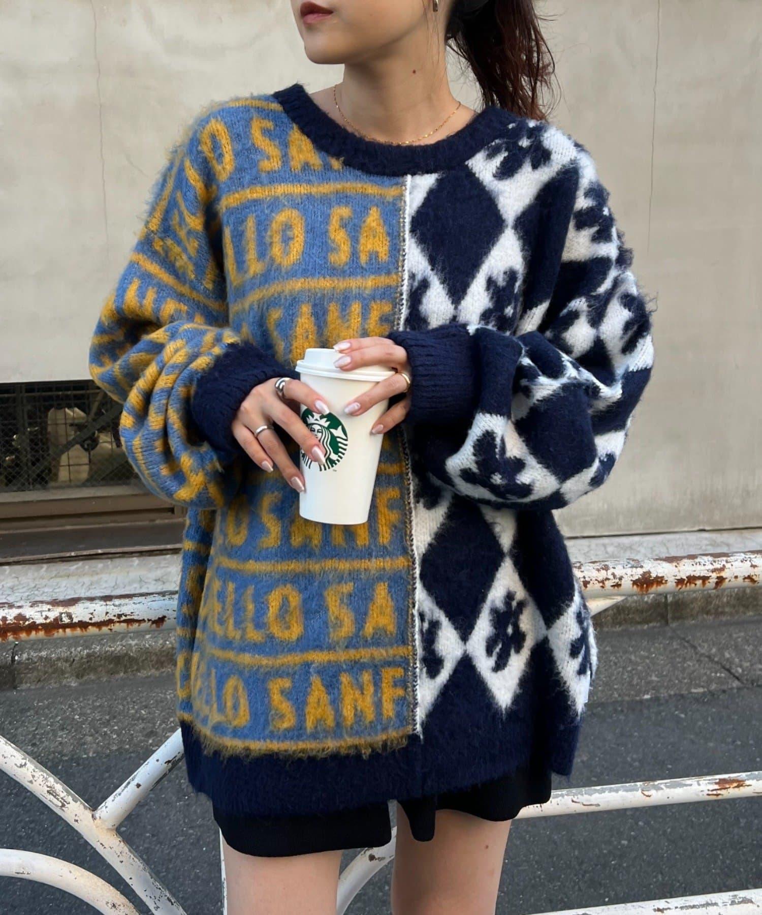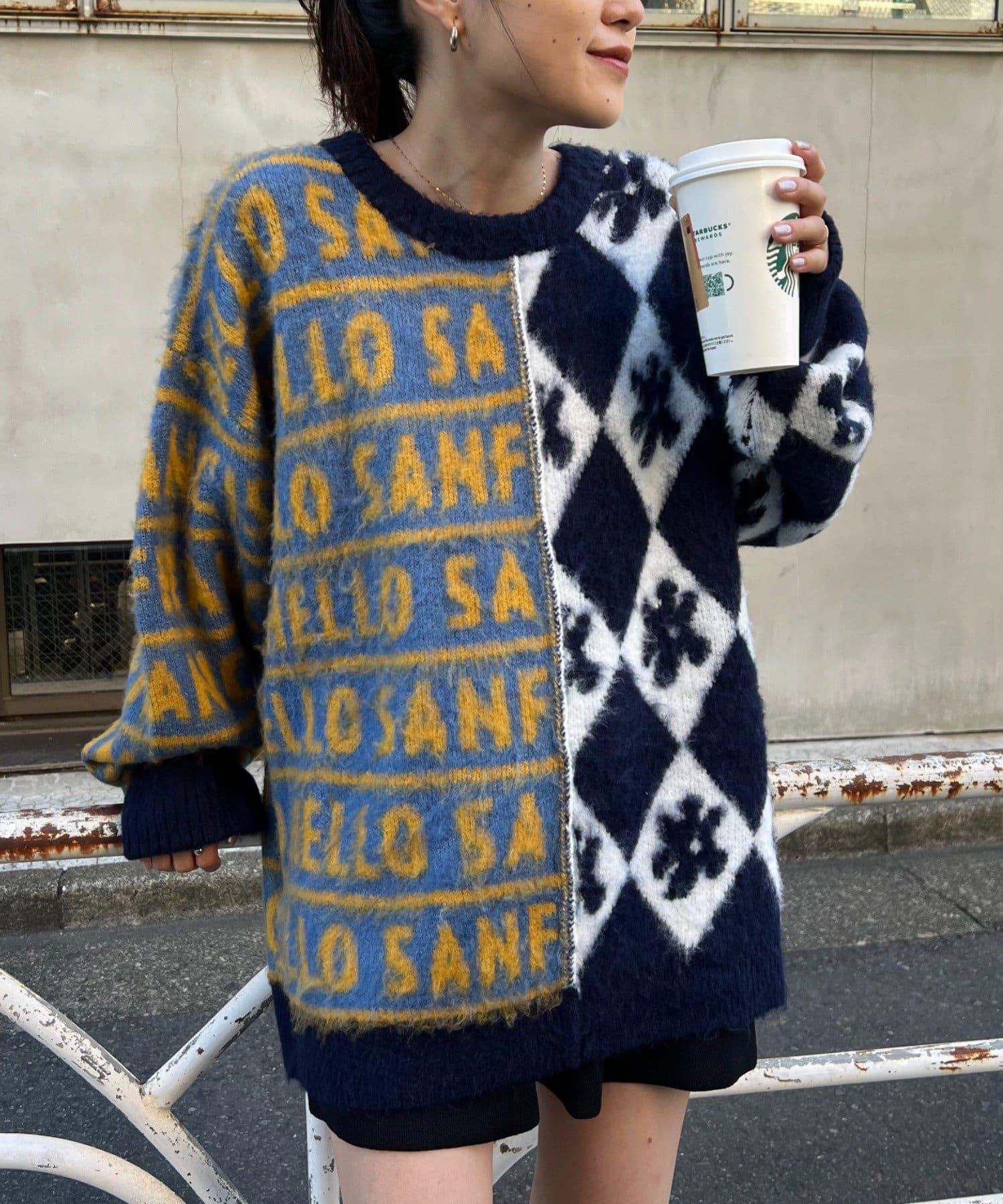 【HELLO.SANFRANCISCO】拼接設計起毛針織衫