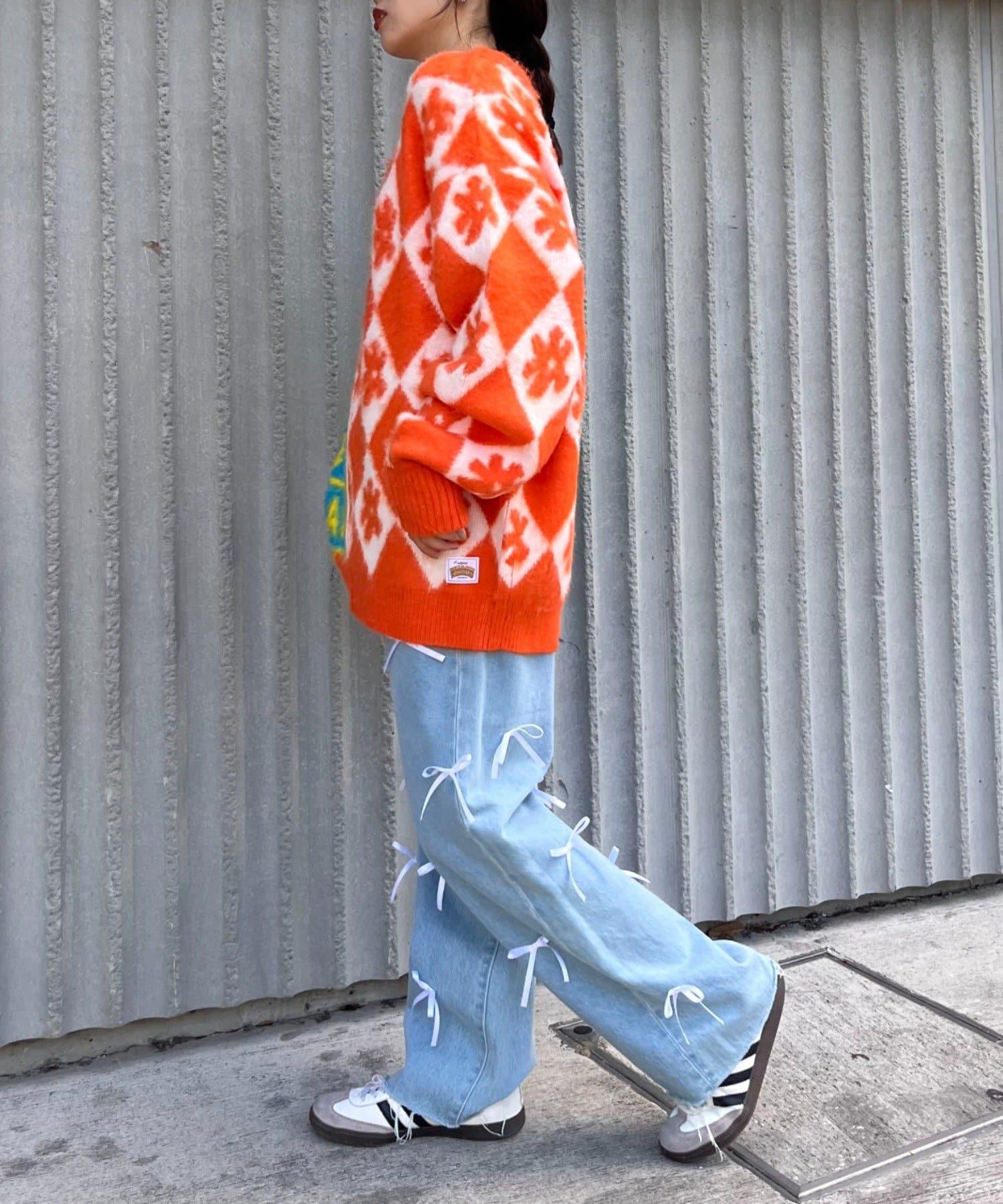 建議使用標準牛仔布或長裙等簡潔的下裝來突出圖案針織衫。