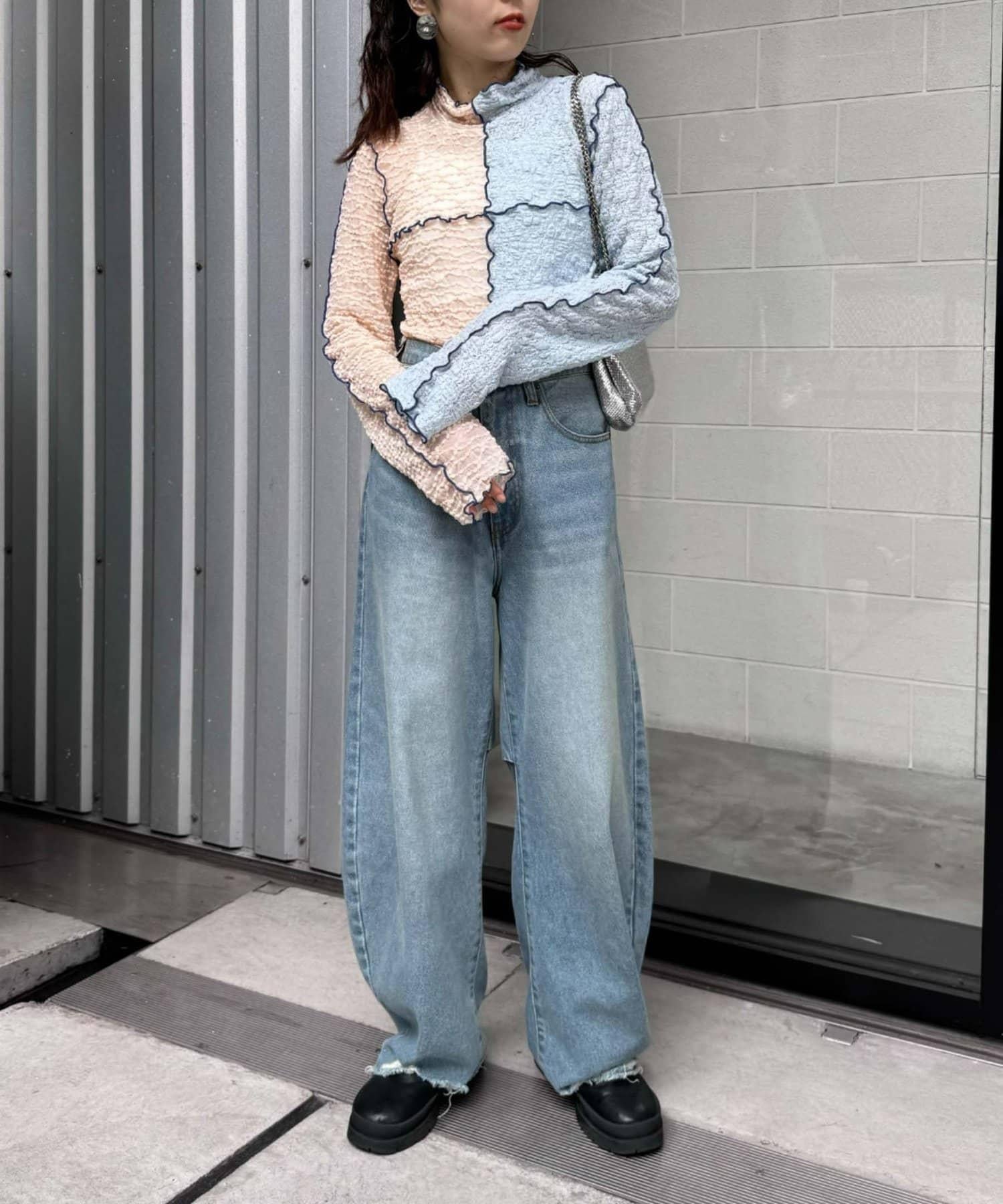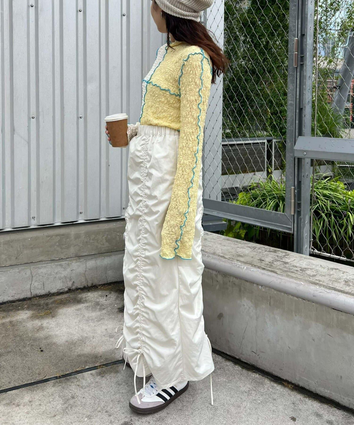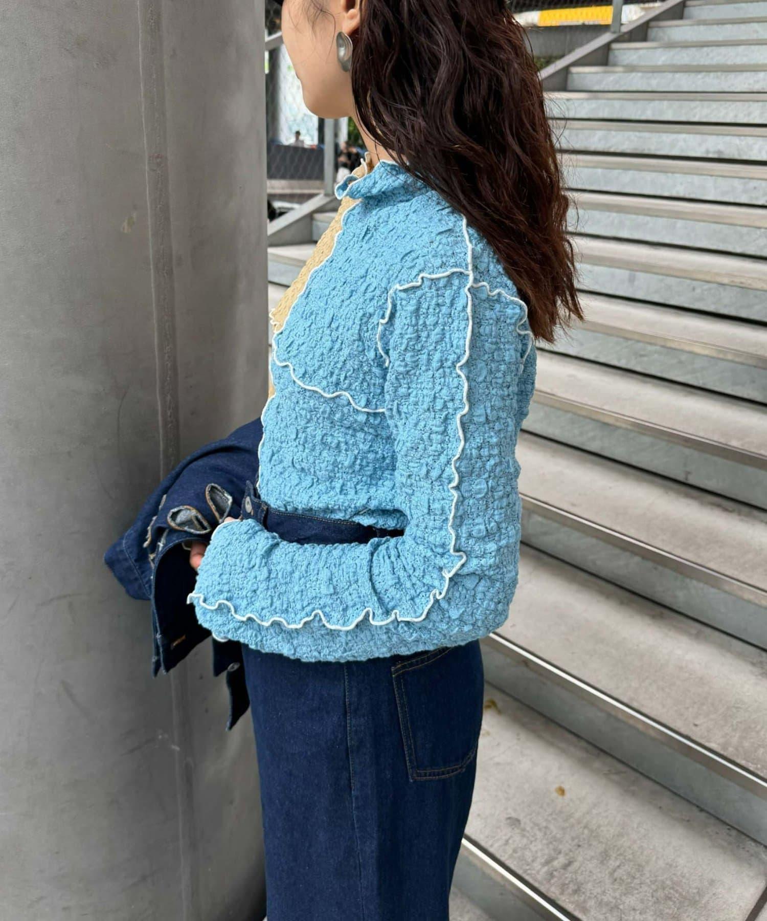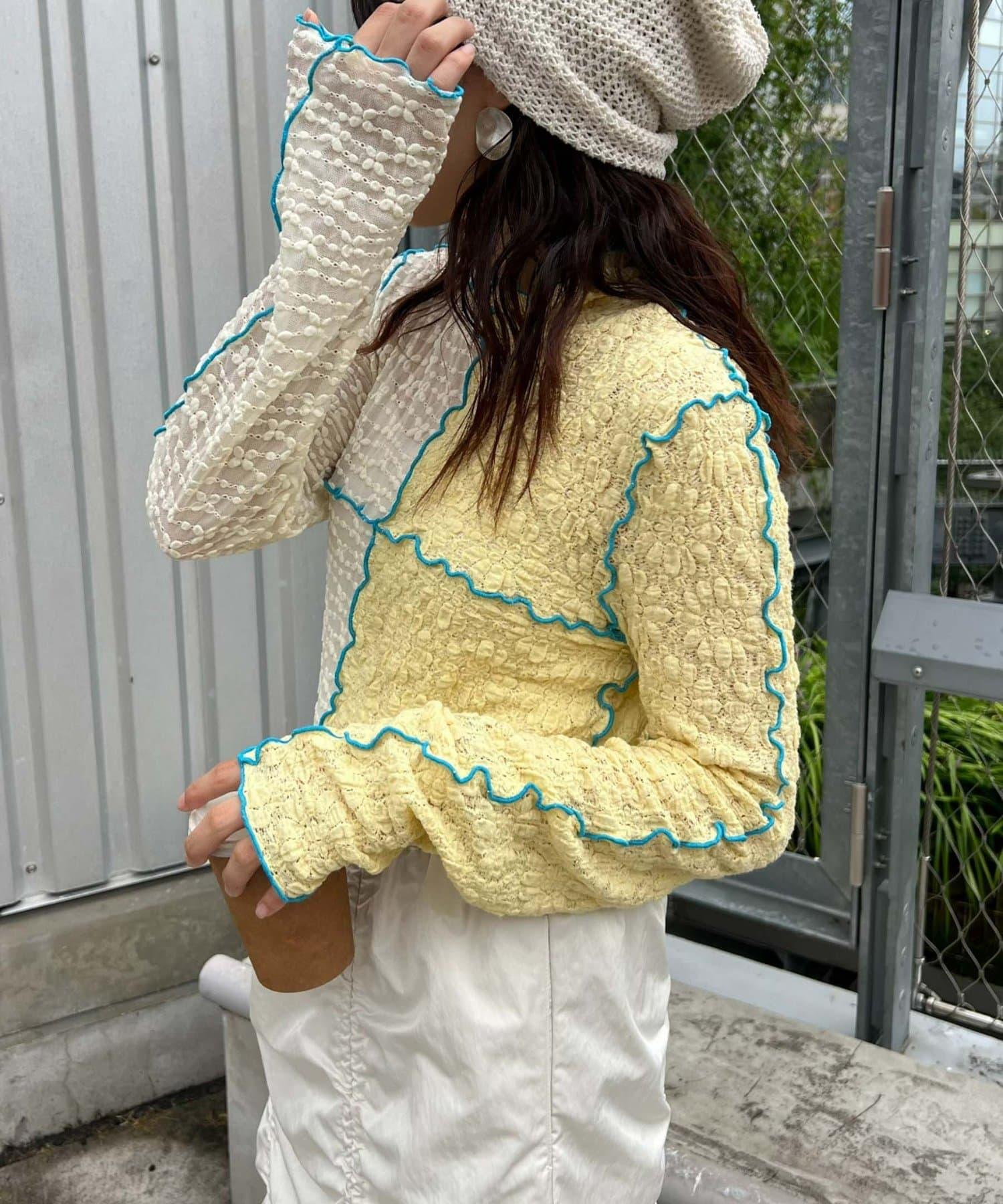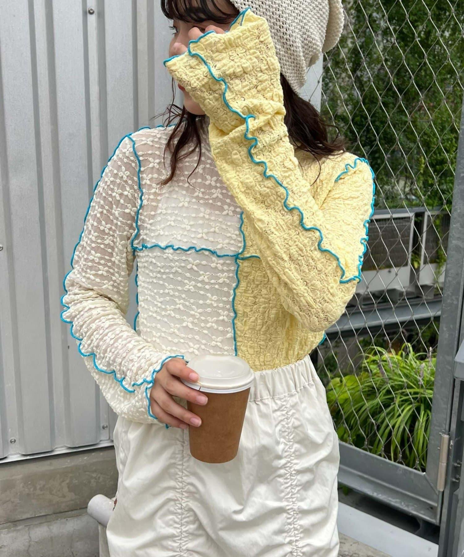 圓潤的上衣搭配哈羅桑特有的醒目配色,時髦的 pokopoko 材質也推薦用於疊穿!