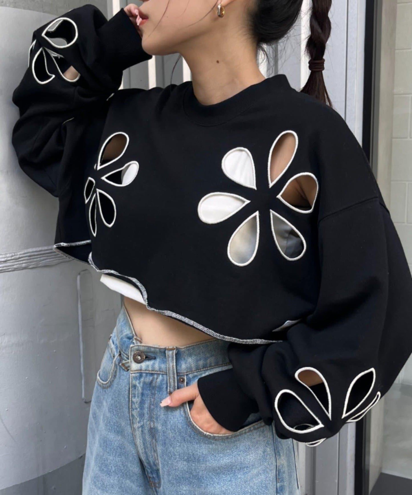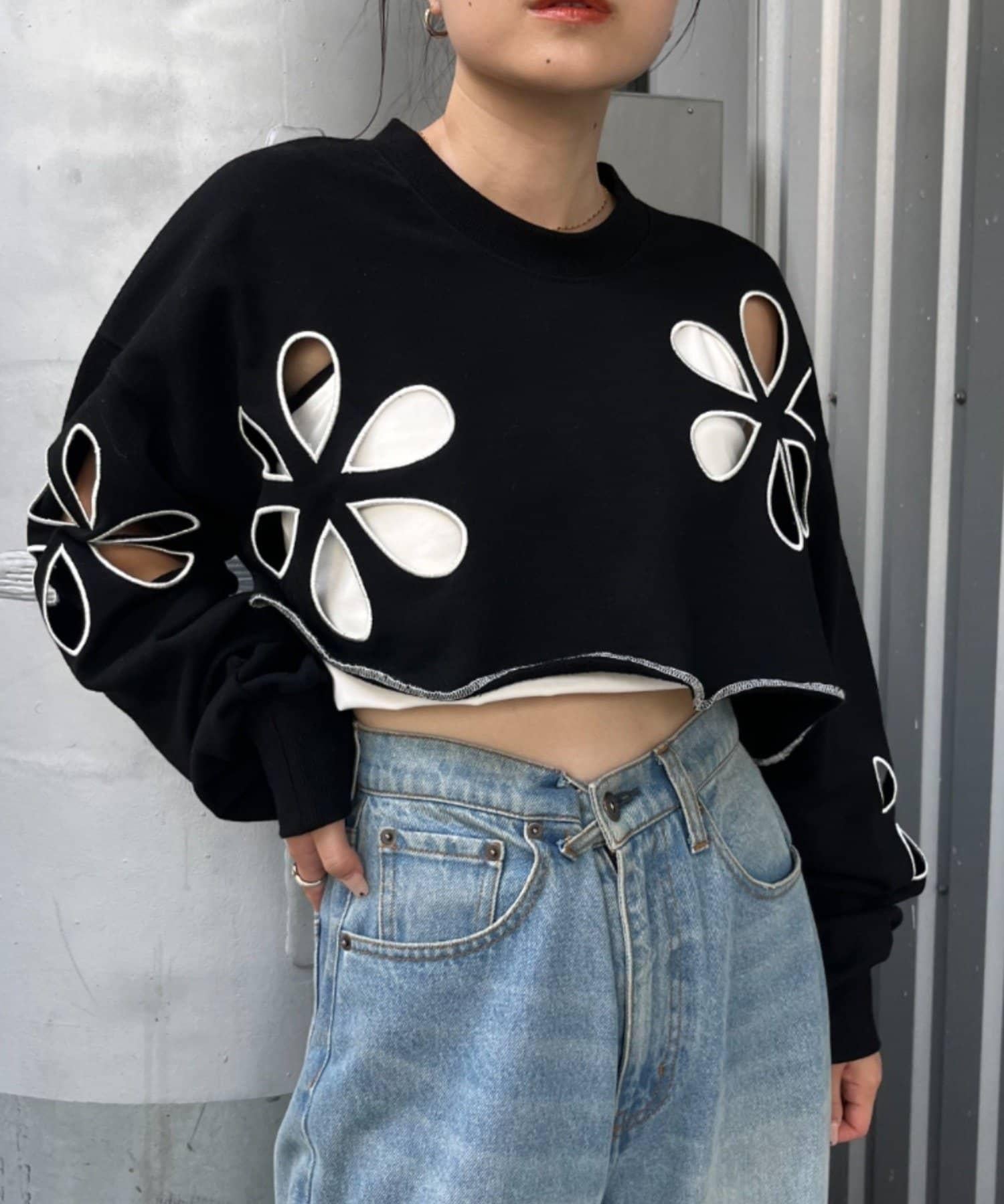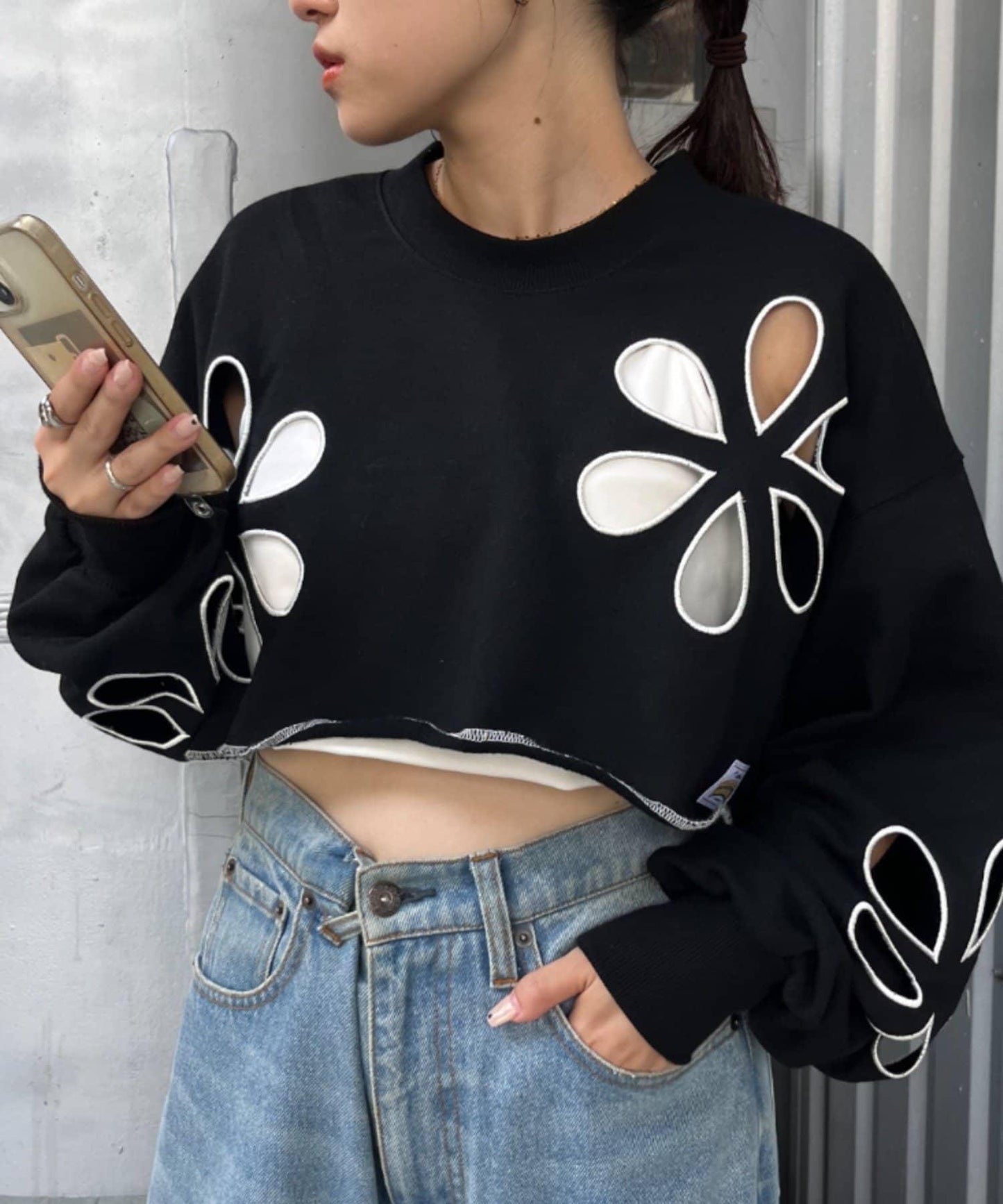 【HELLO.SANFRANCISCO】花朵剪裁短款衛衣