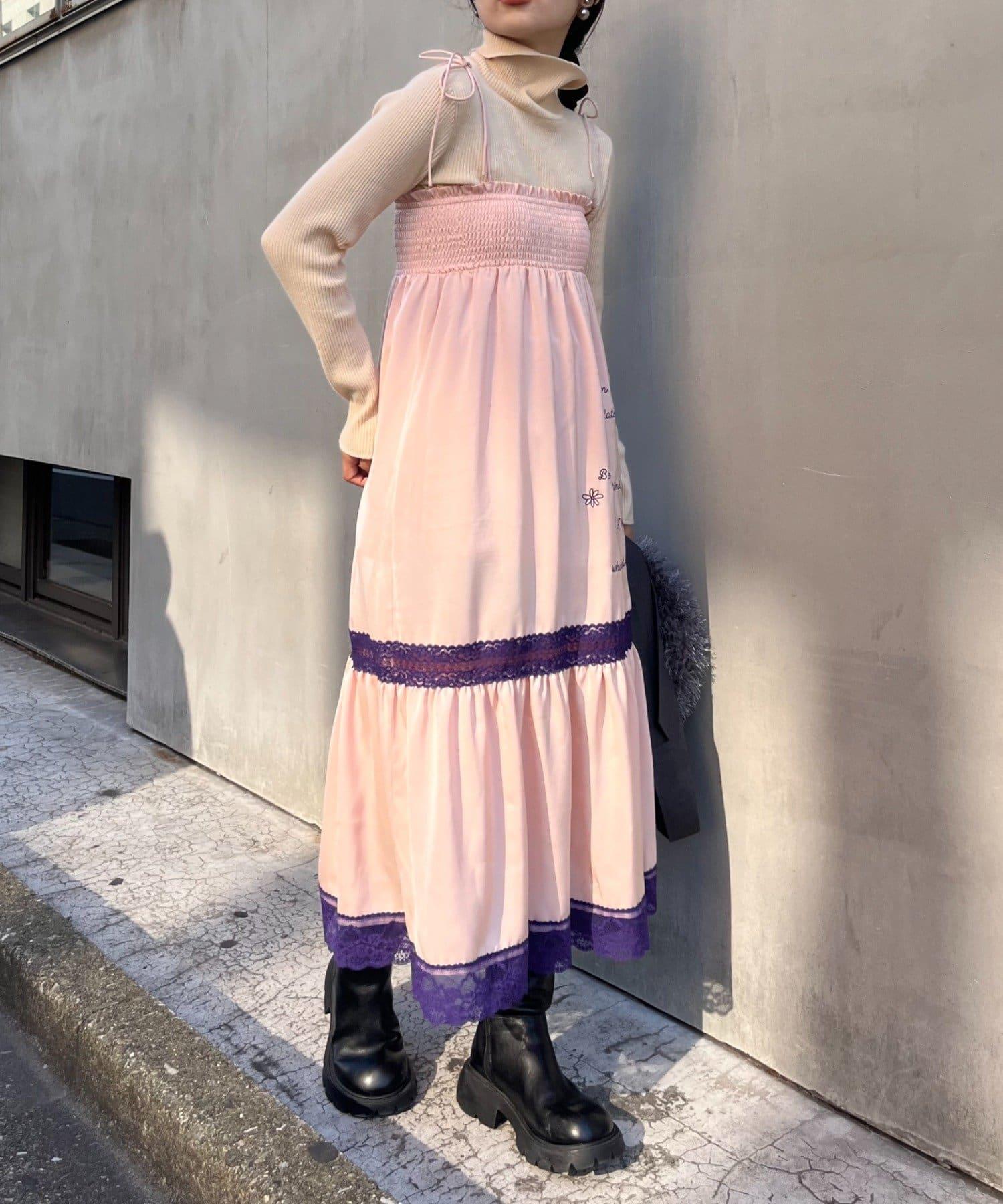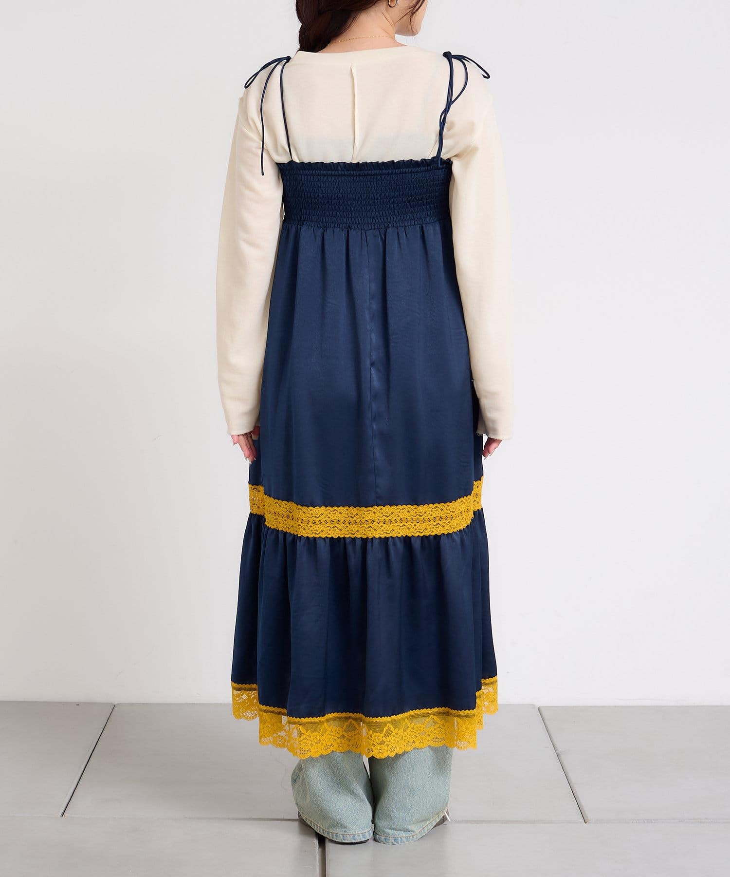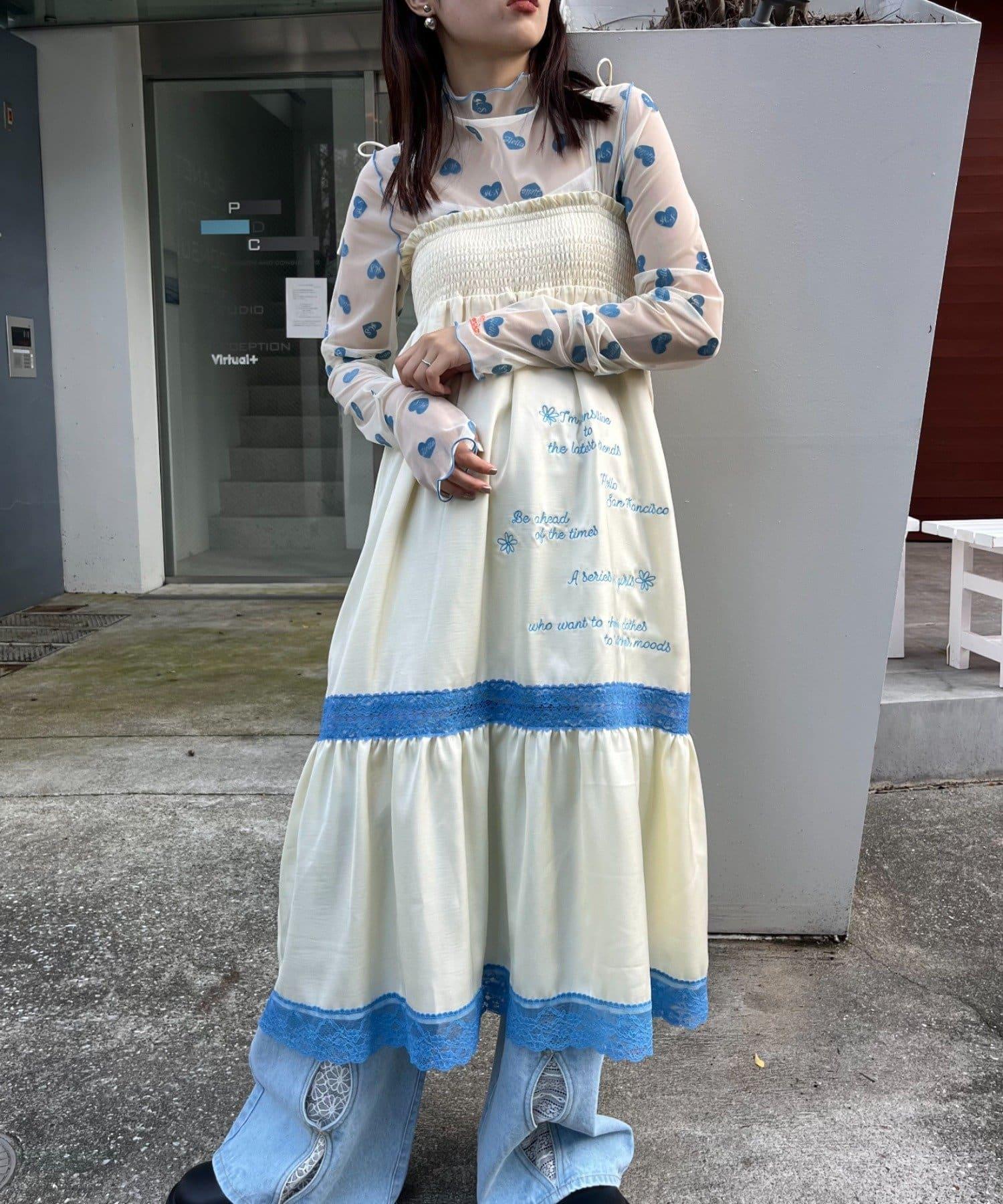 【HELLO.SANFRANCISCO】2WAY緞面刺繡蕾絲裙