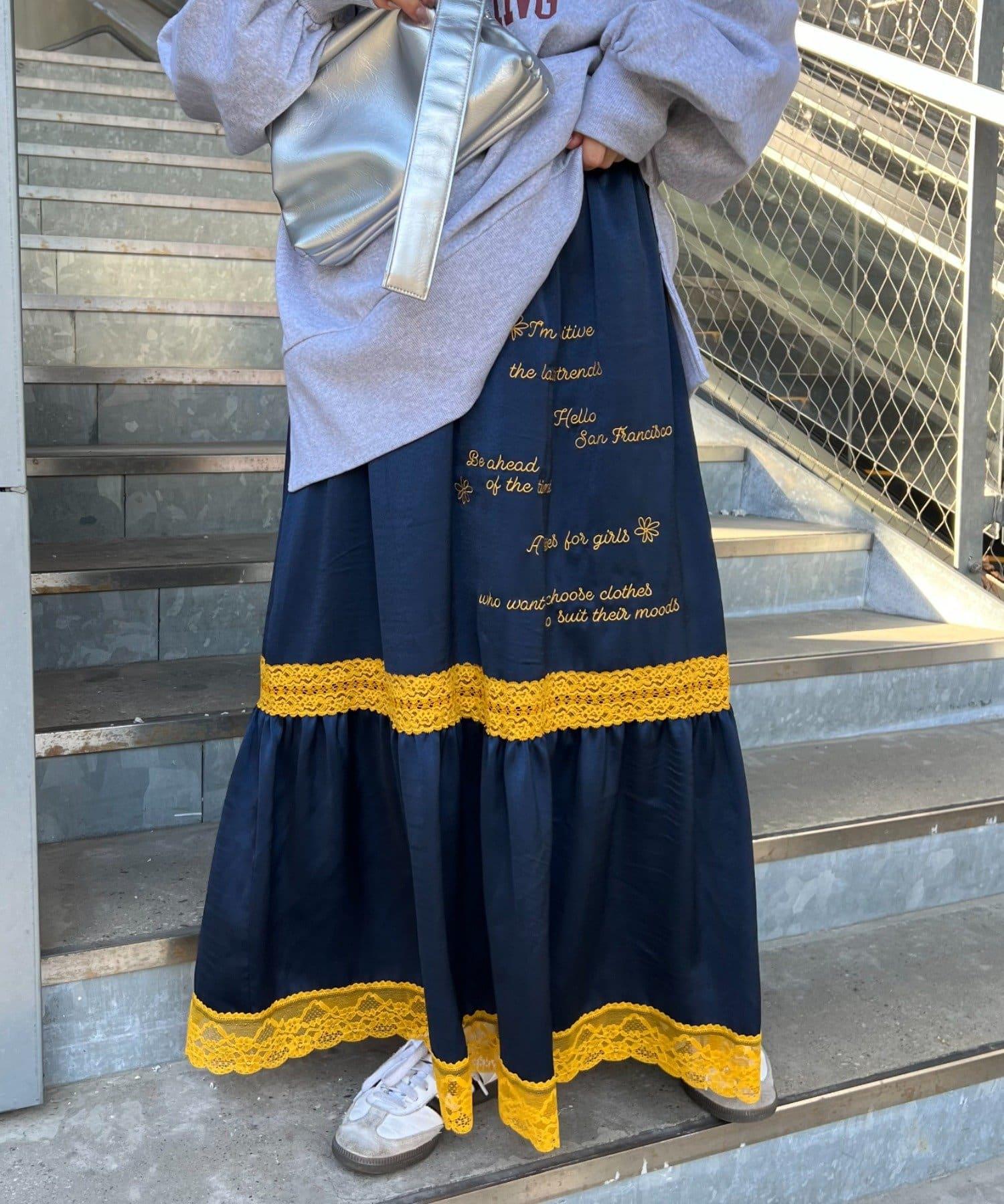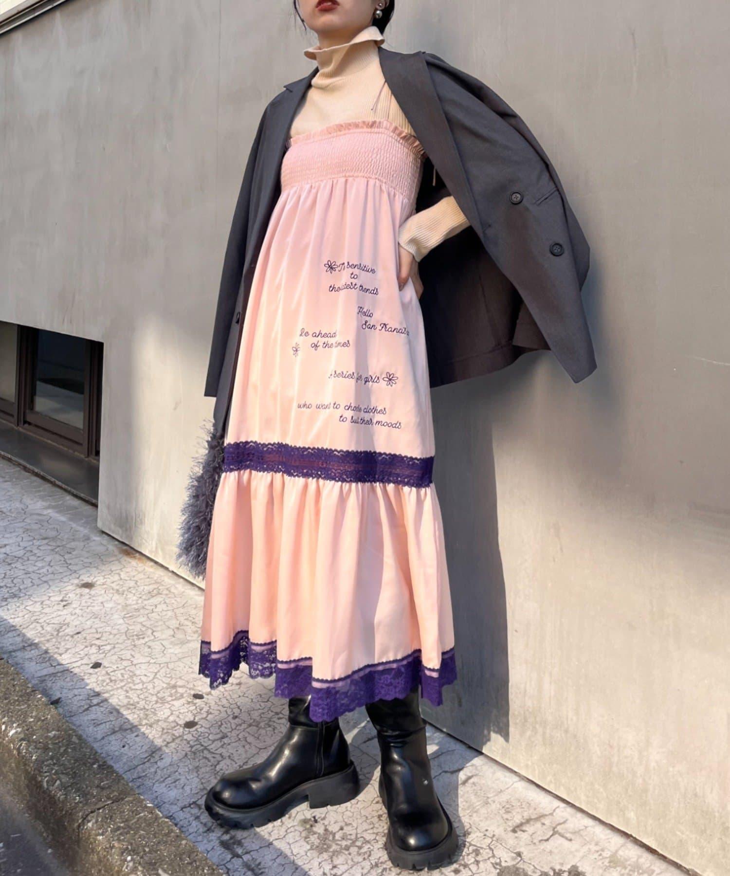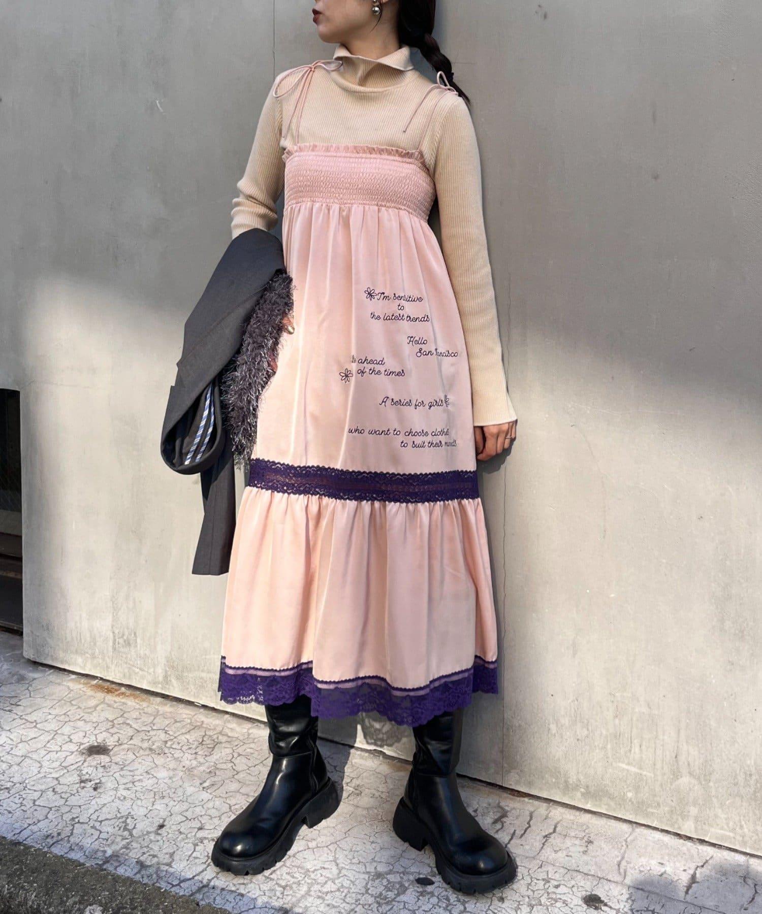 【HELLO.SANFRANCISCO】2WAY緞面刺繡蕾絲裙