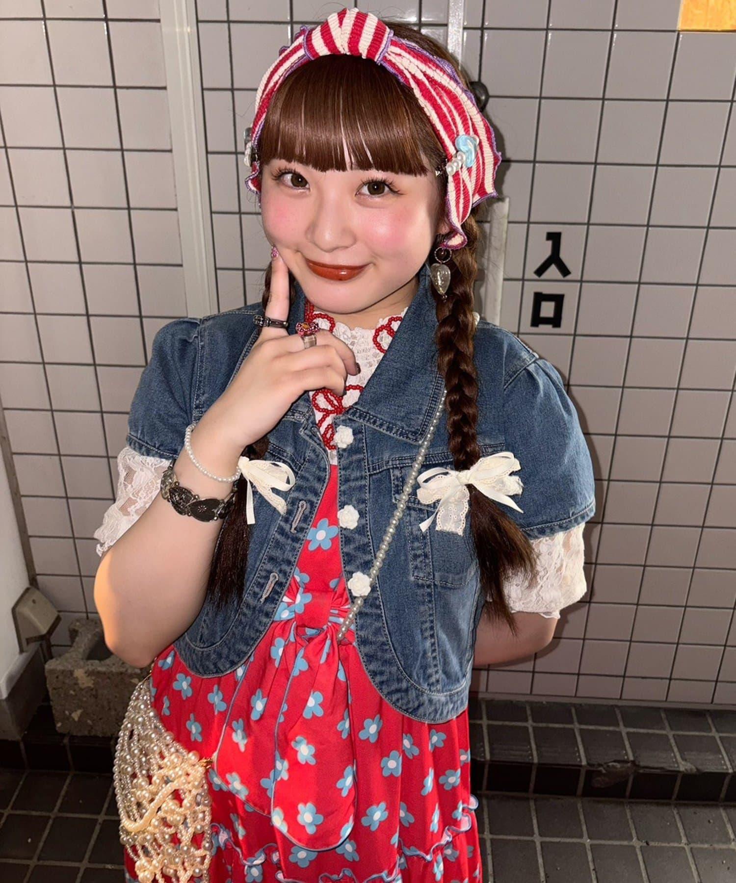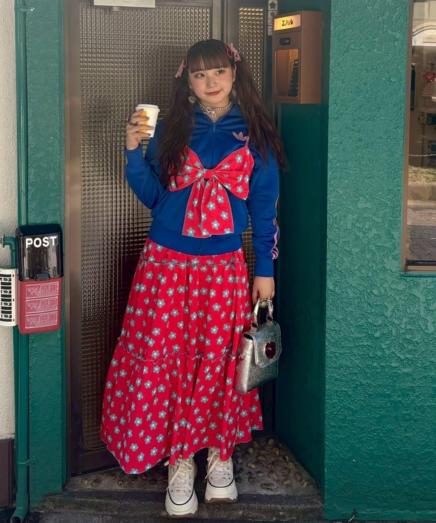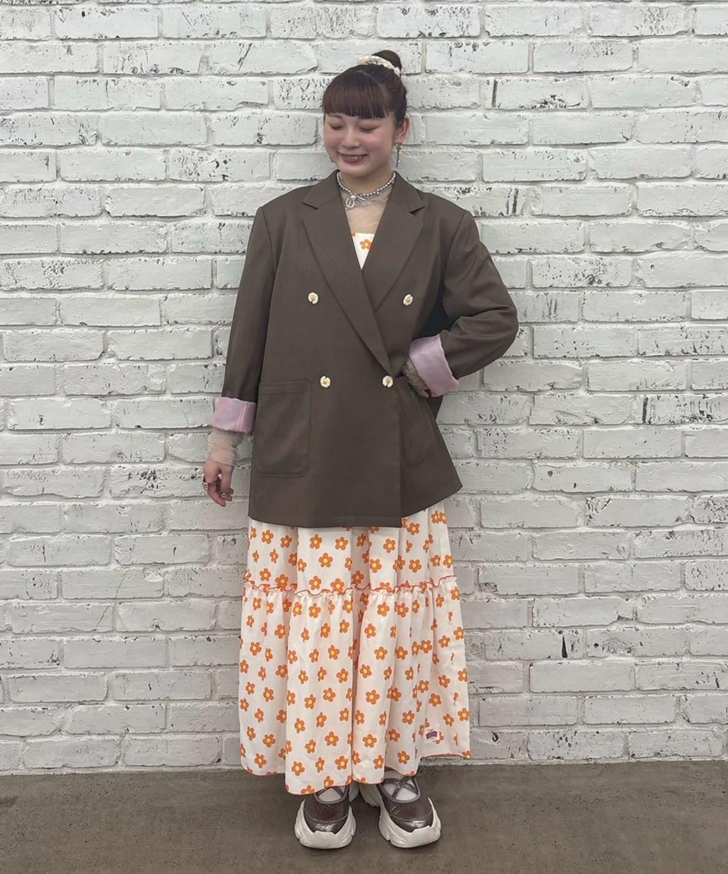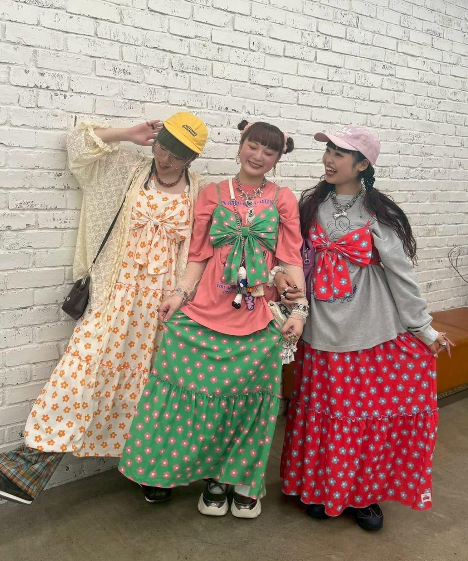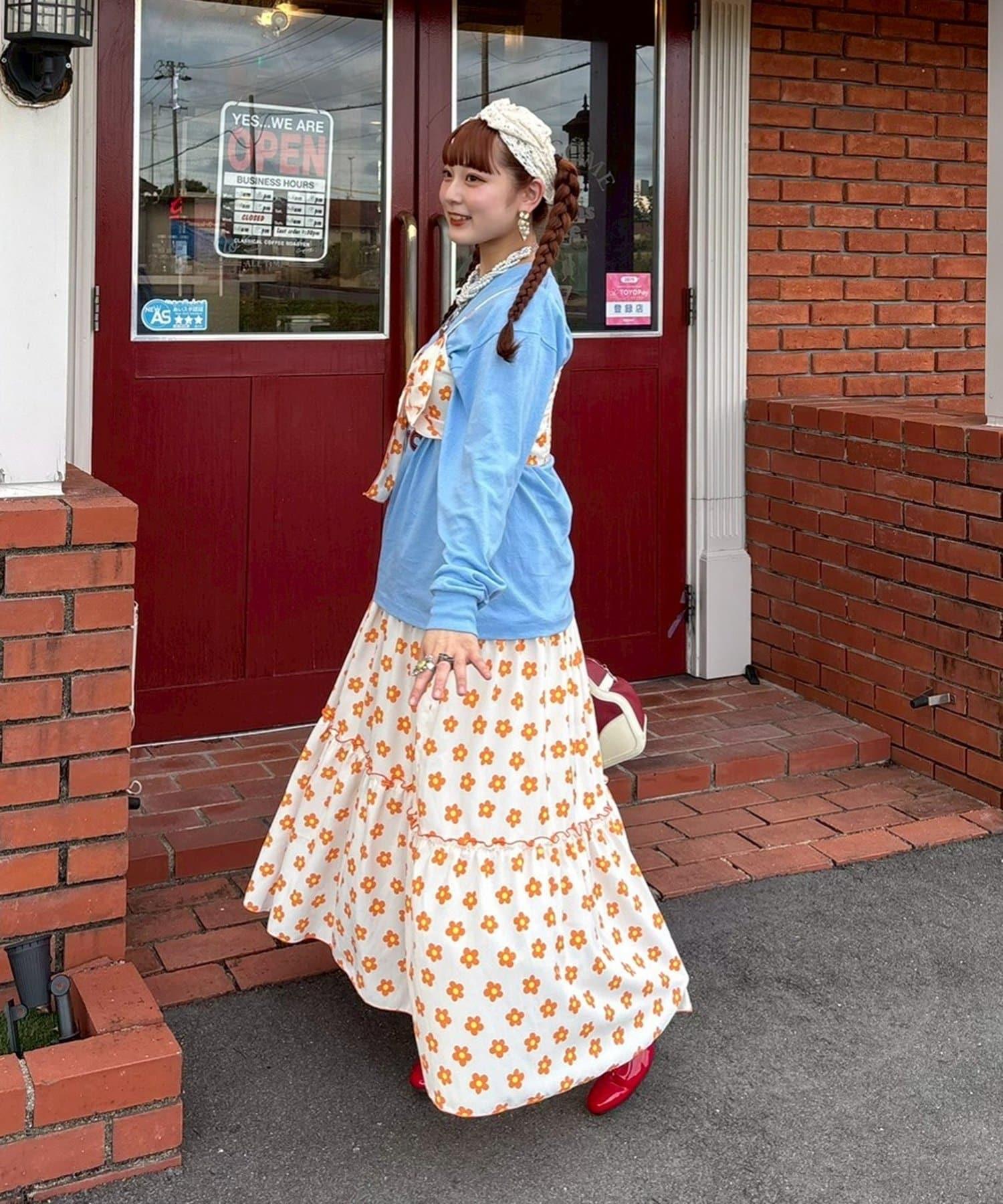 復古流行的花朵圖案,胸前的大絲帶是一大亮點!