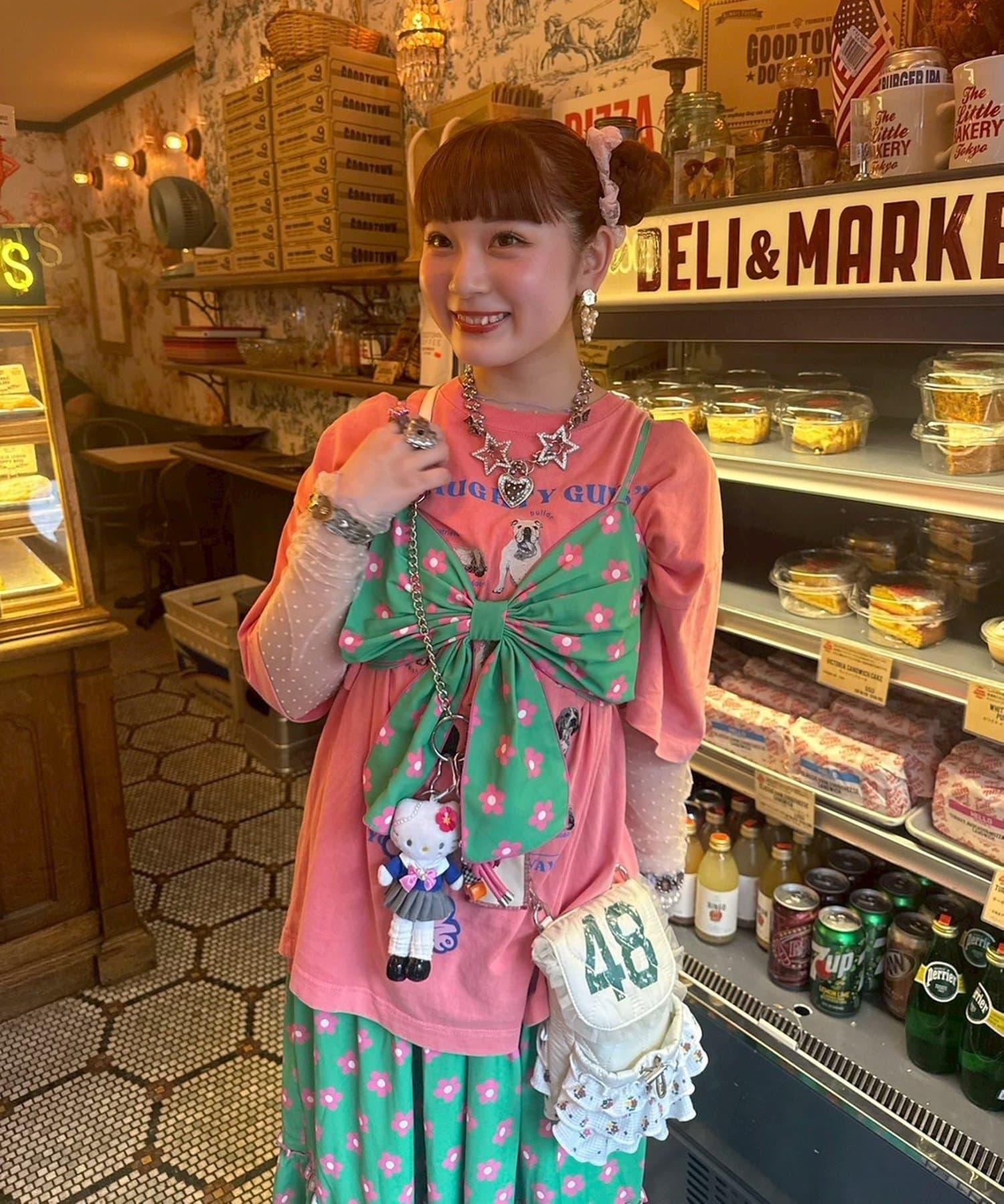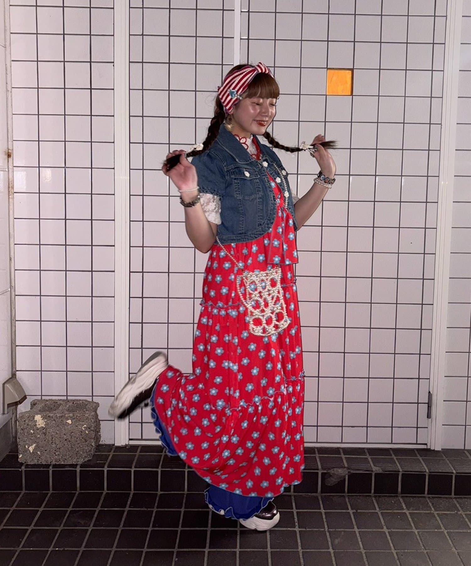 胸前的絲帶是一件半身裙,可以與連身裙分開穿著、