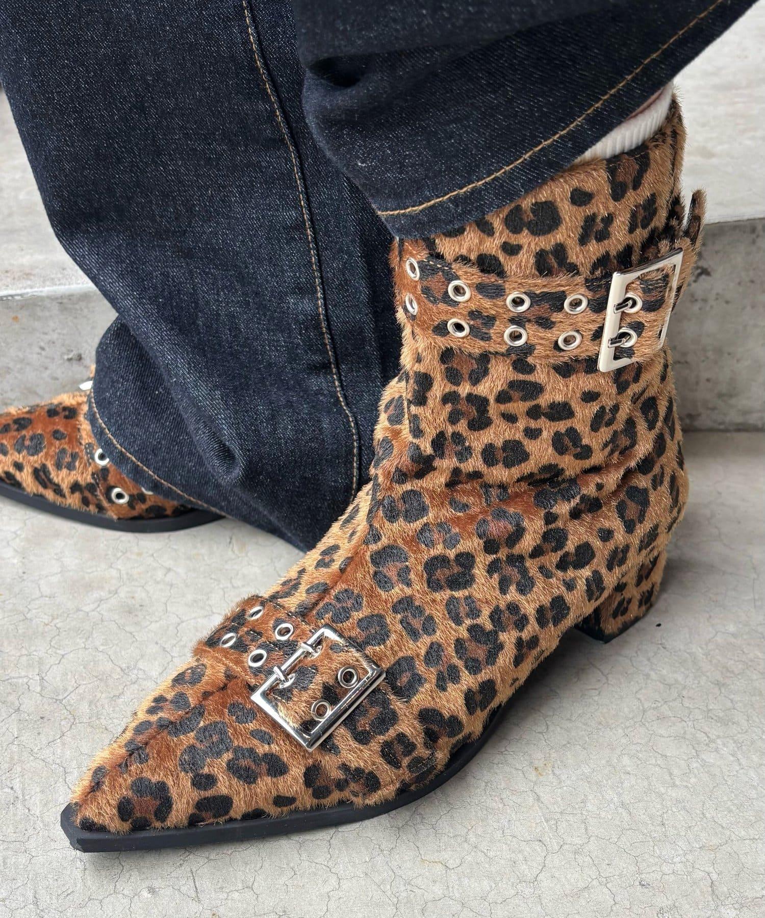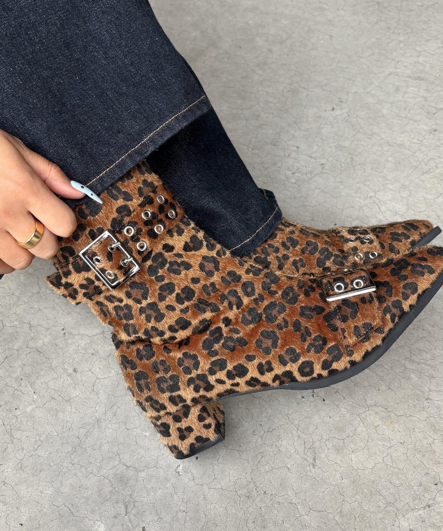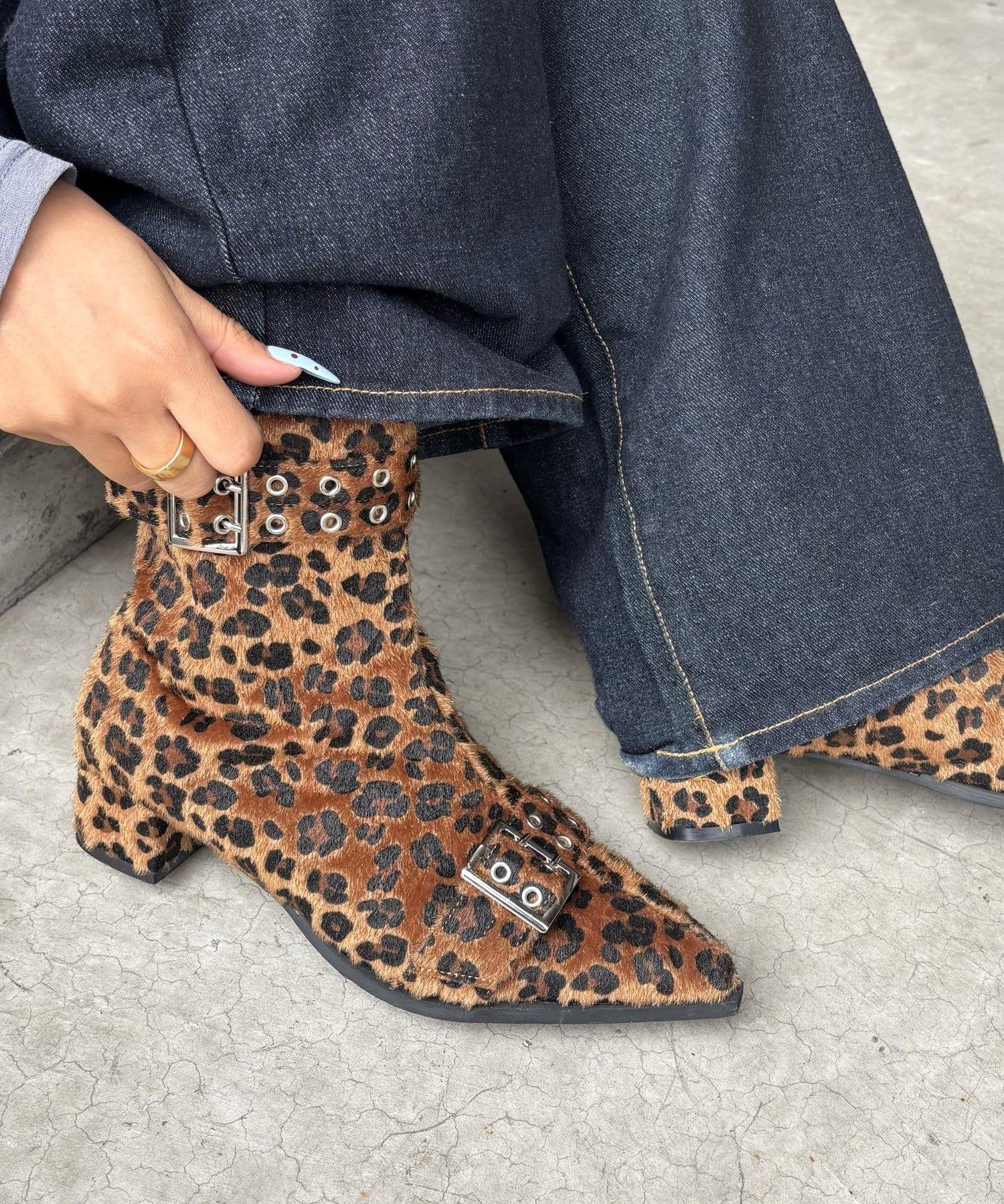 腳上的秋天豹紋短靴