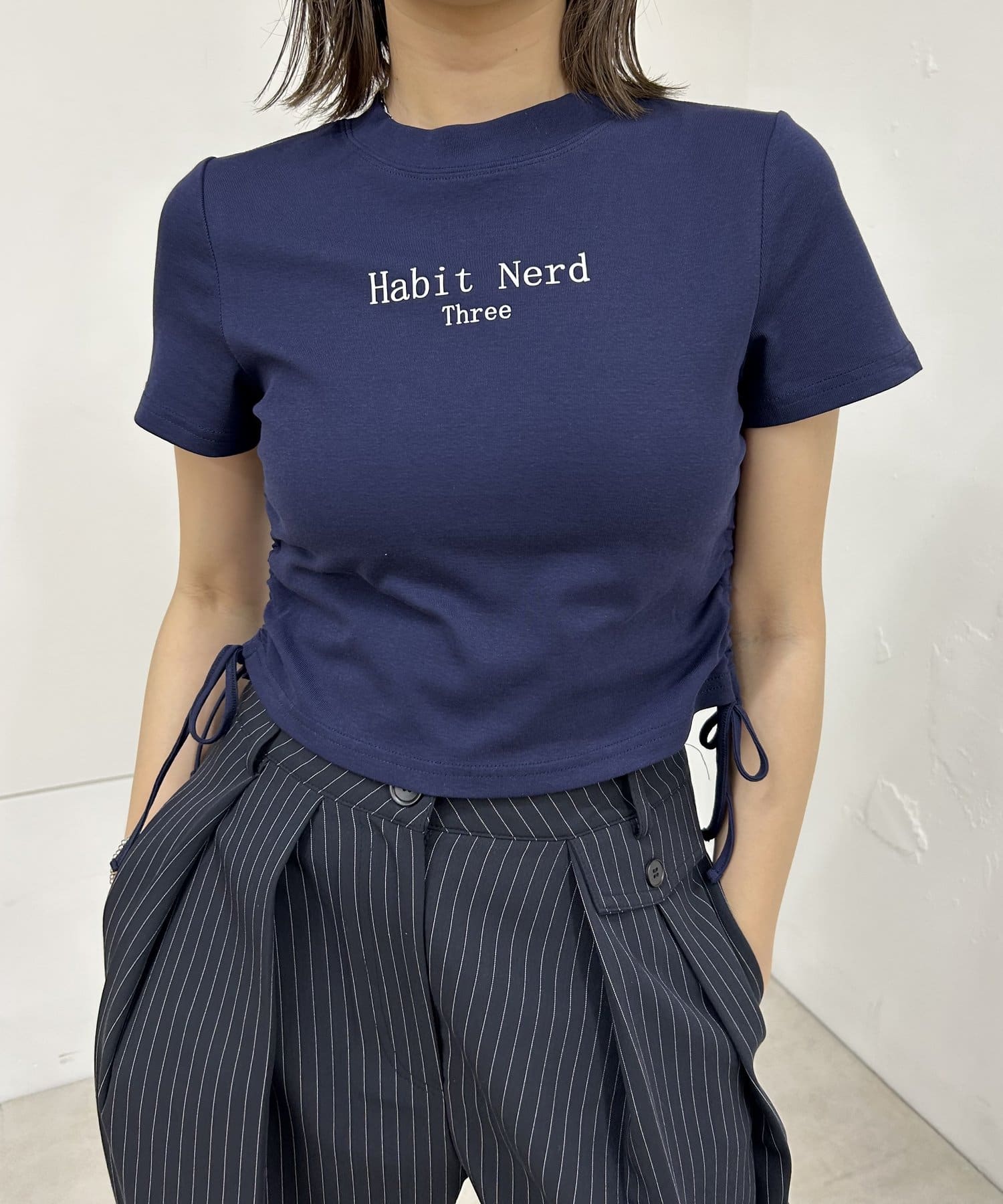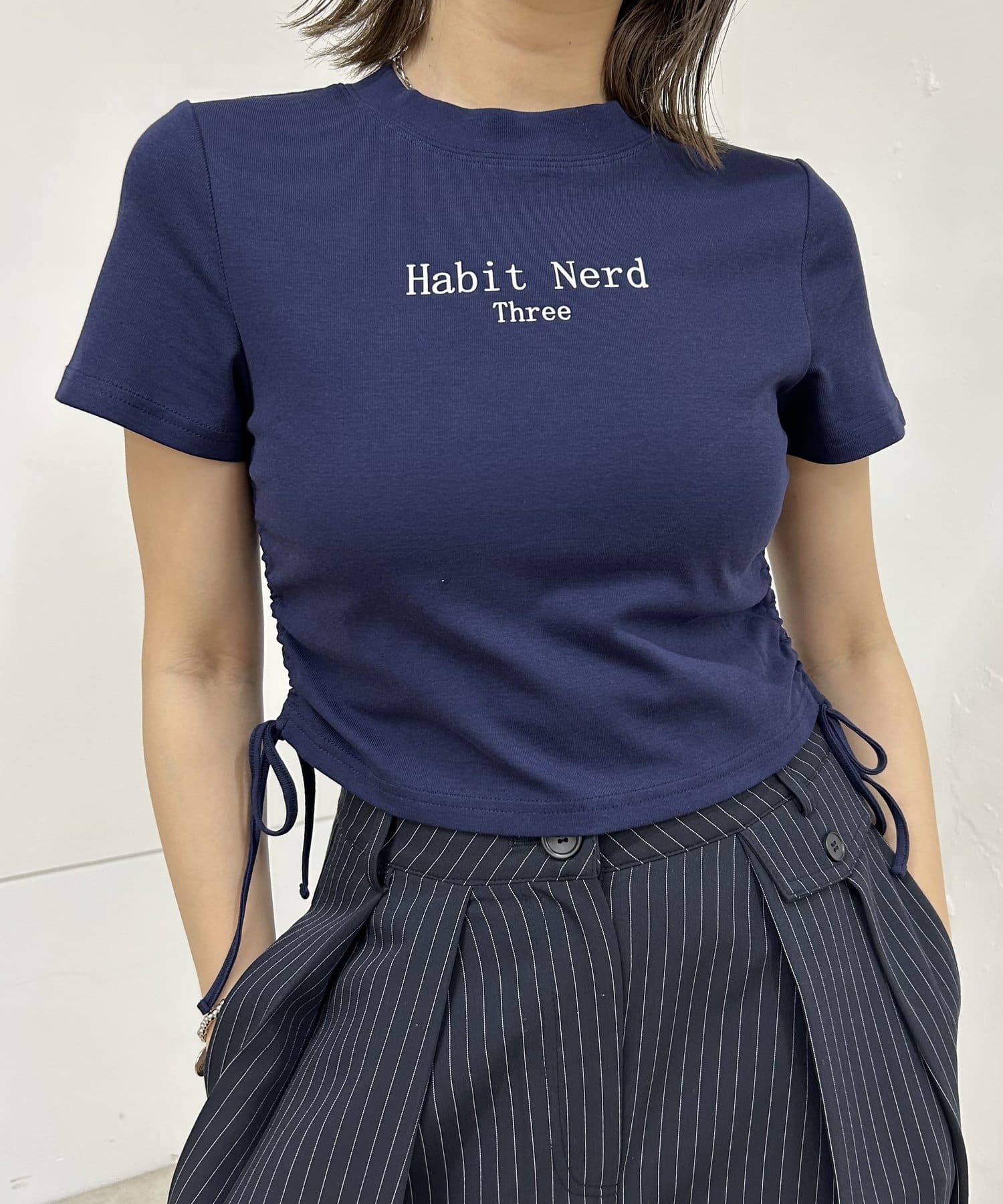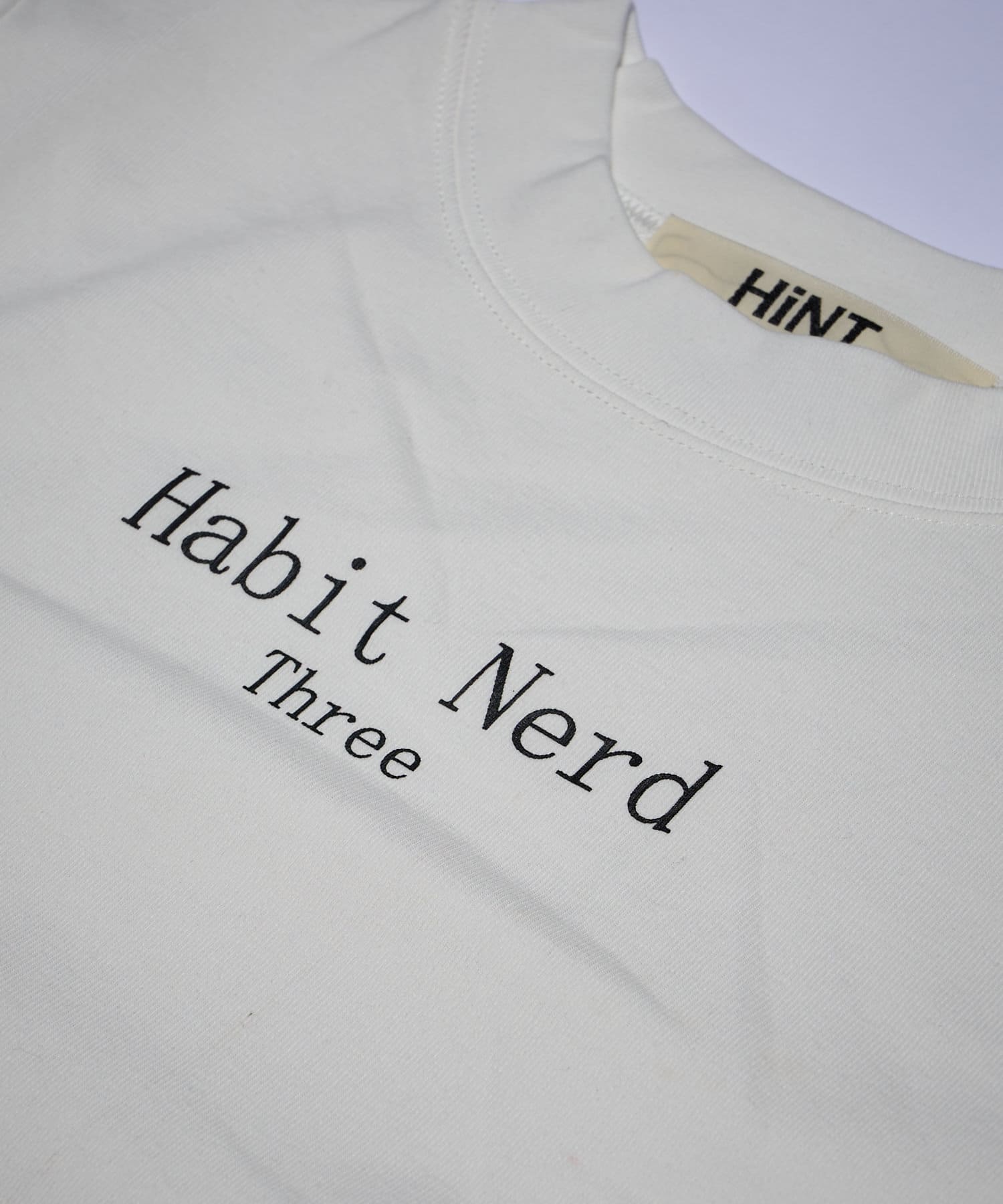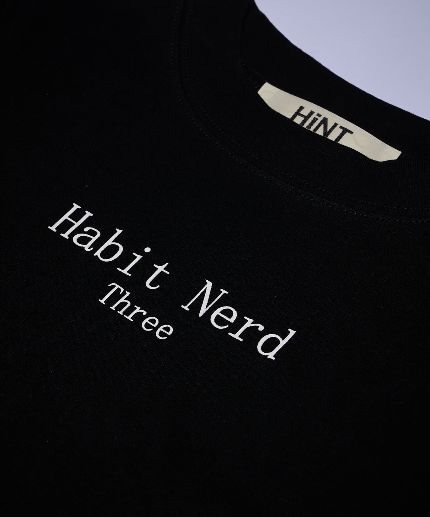 Habit/Nerd/Three的標誌,即HiNT的首字母,印在上衣上。