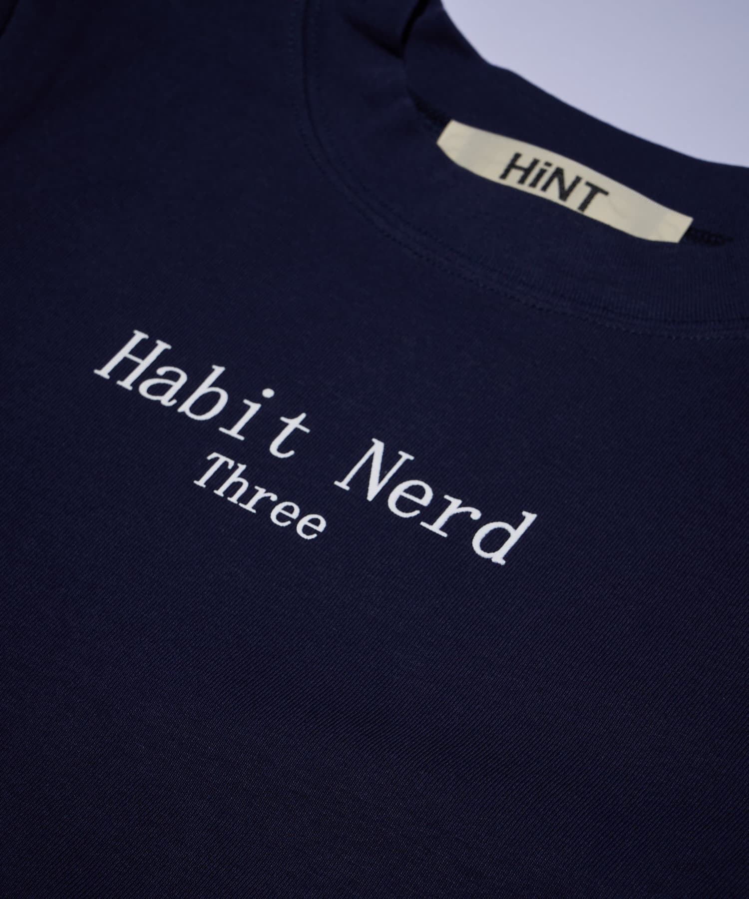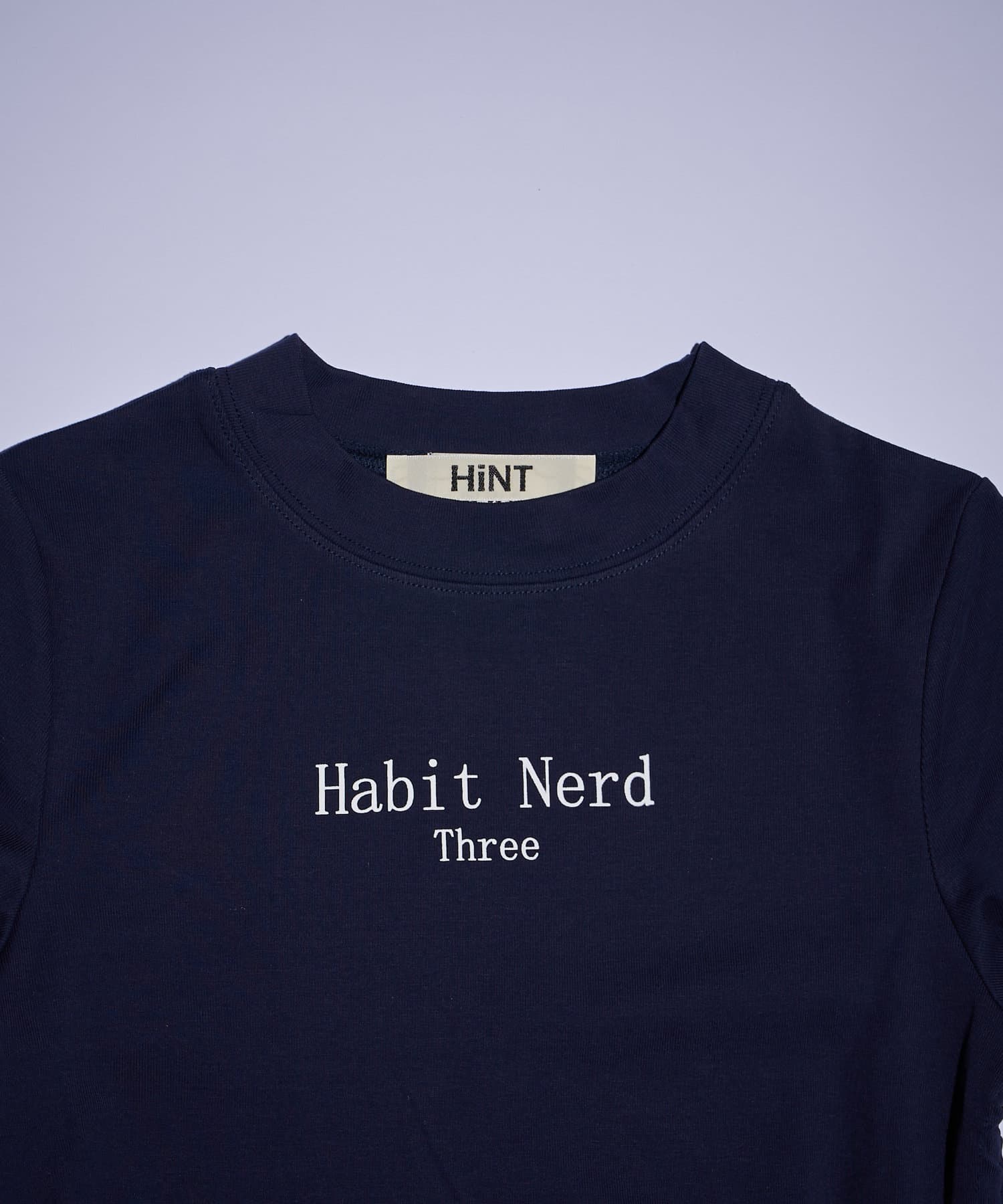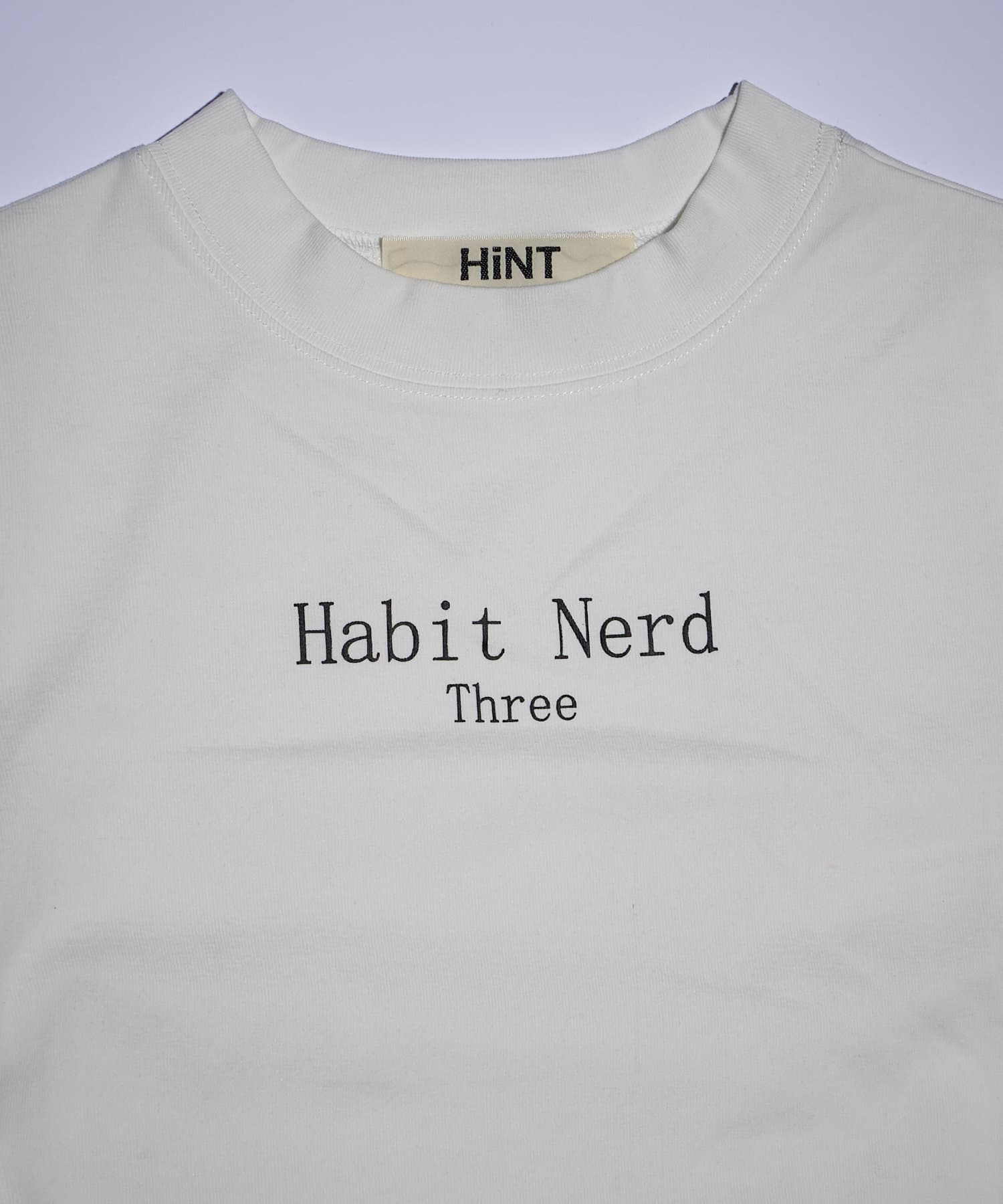 Habit/Nerd/Three的標誌,即HiNT的首字母,印在上衣上。