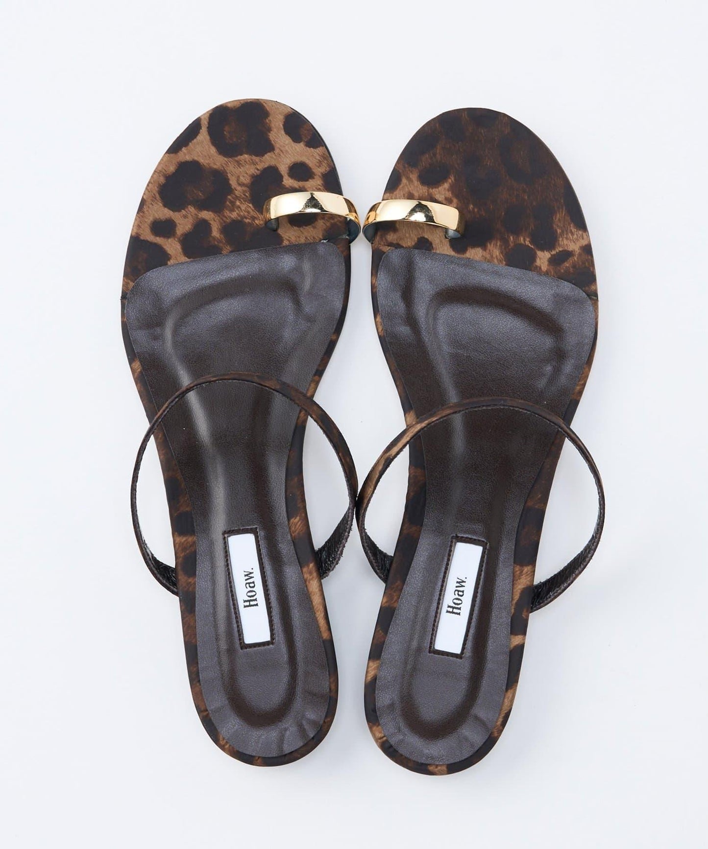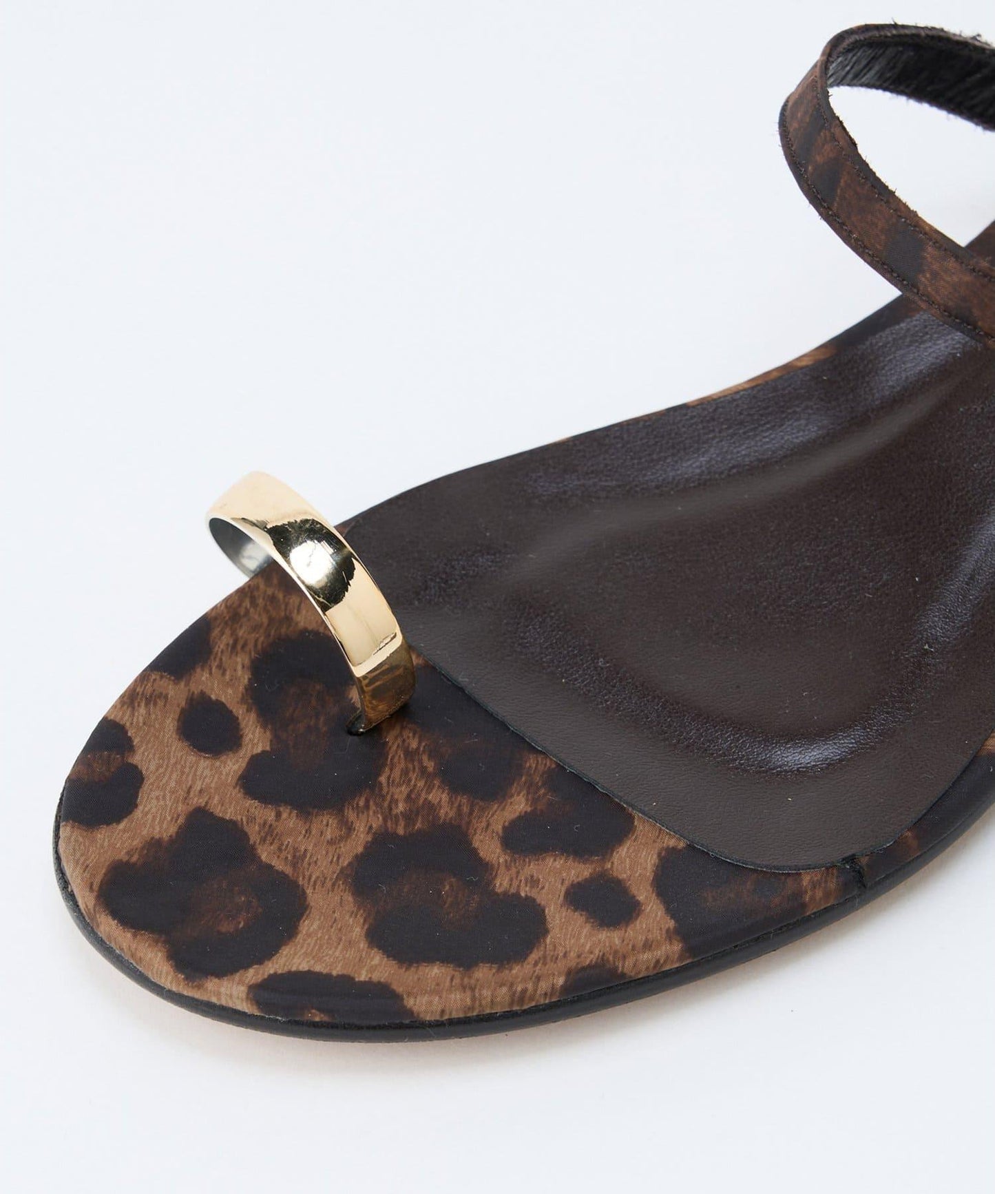 這款丁字涼鞋採用豐富的豹紋面料,讓腳部成為主角。