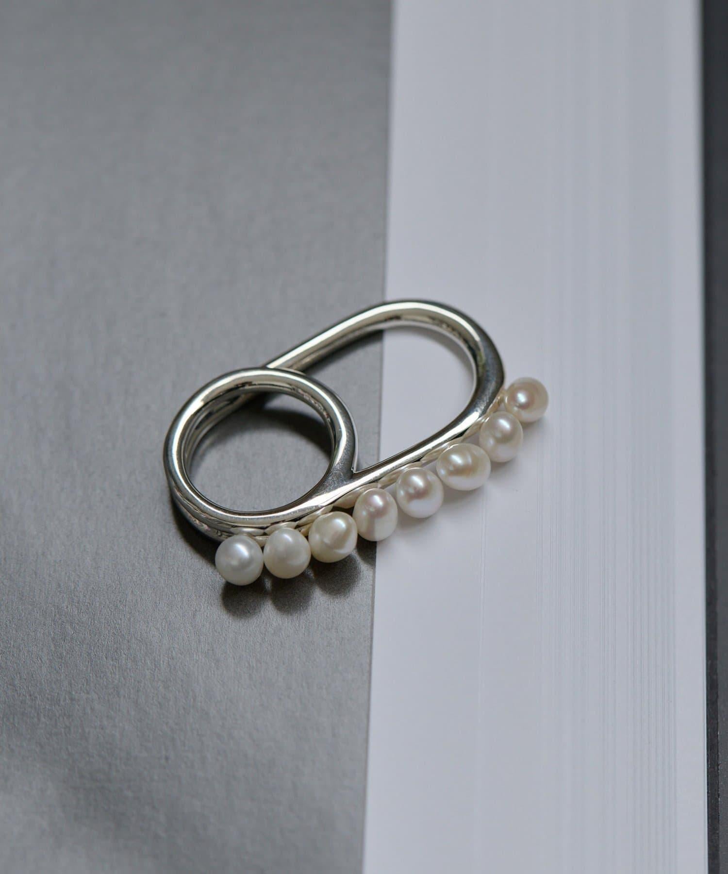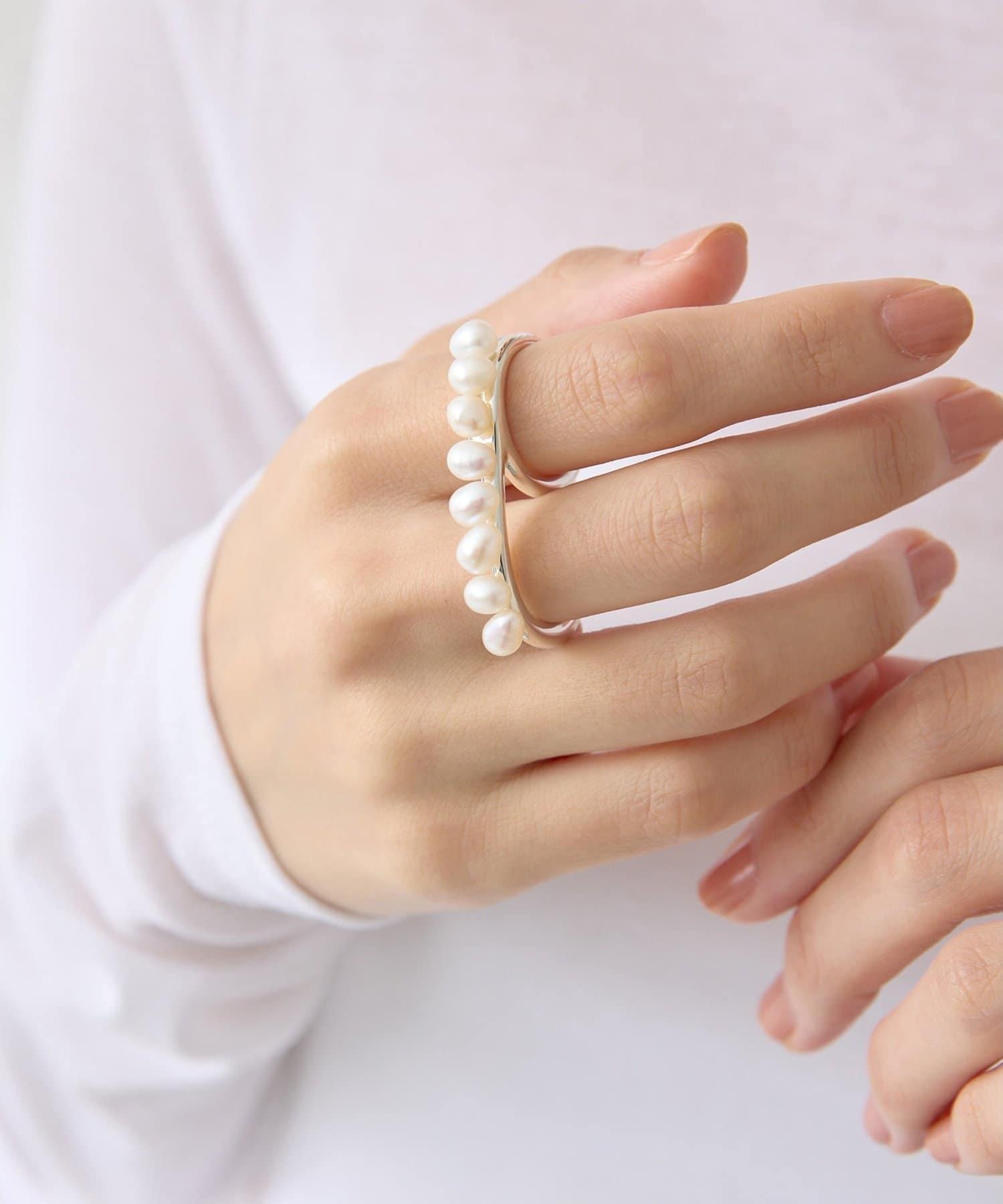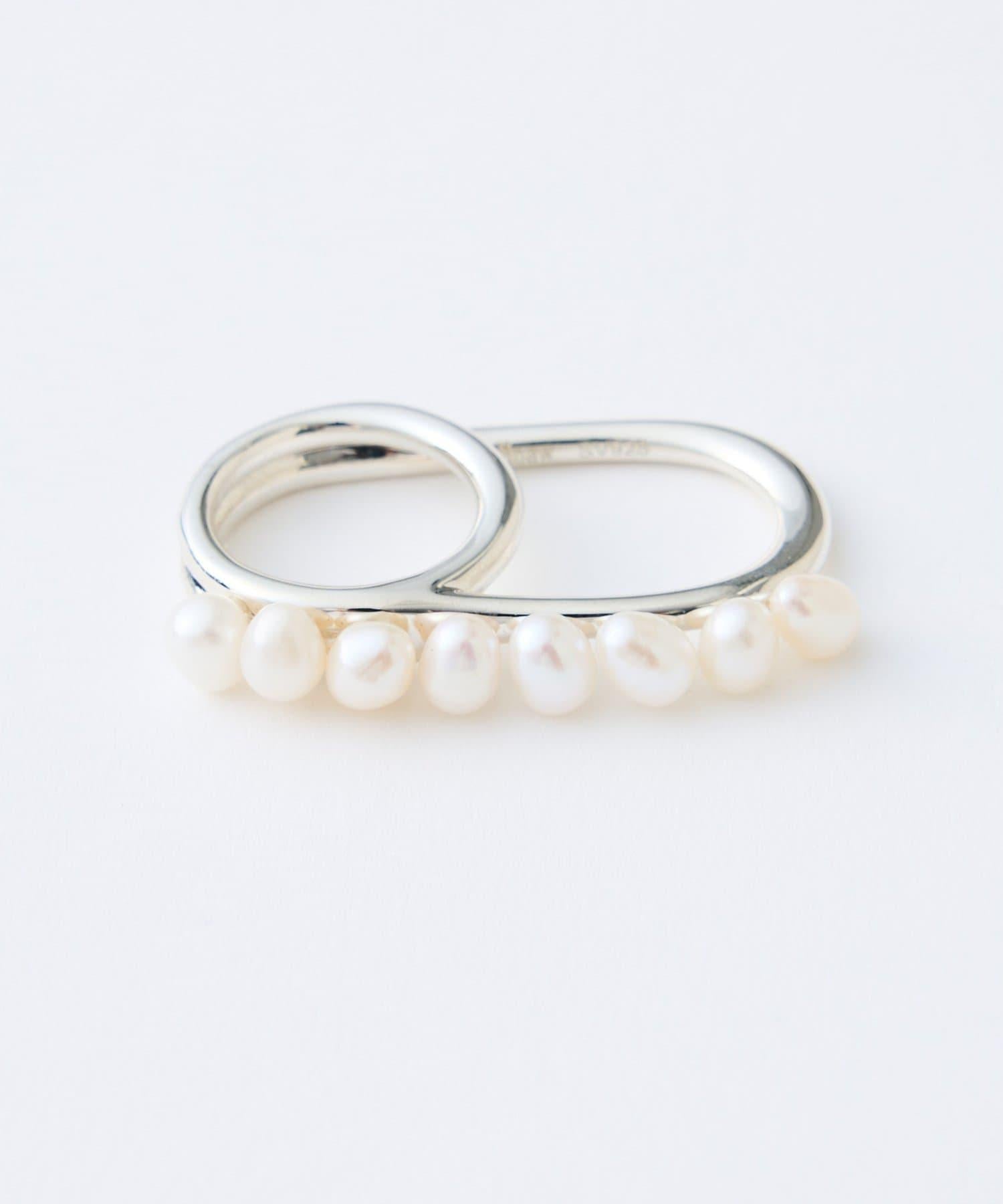 這款雙指環採用簡約的輪廓設計,與凹凸不平的珍珠巧妙地保持平衡。