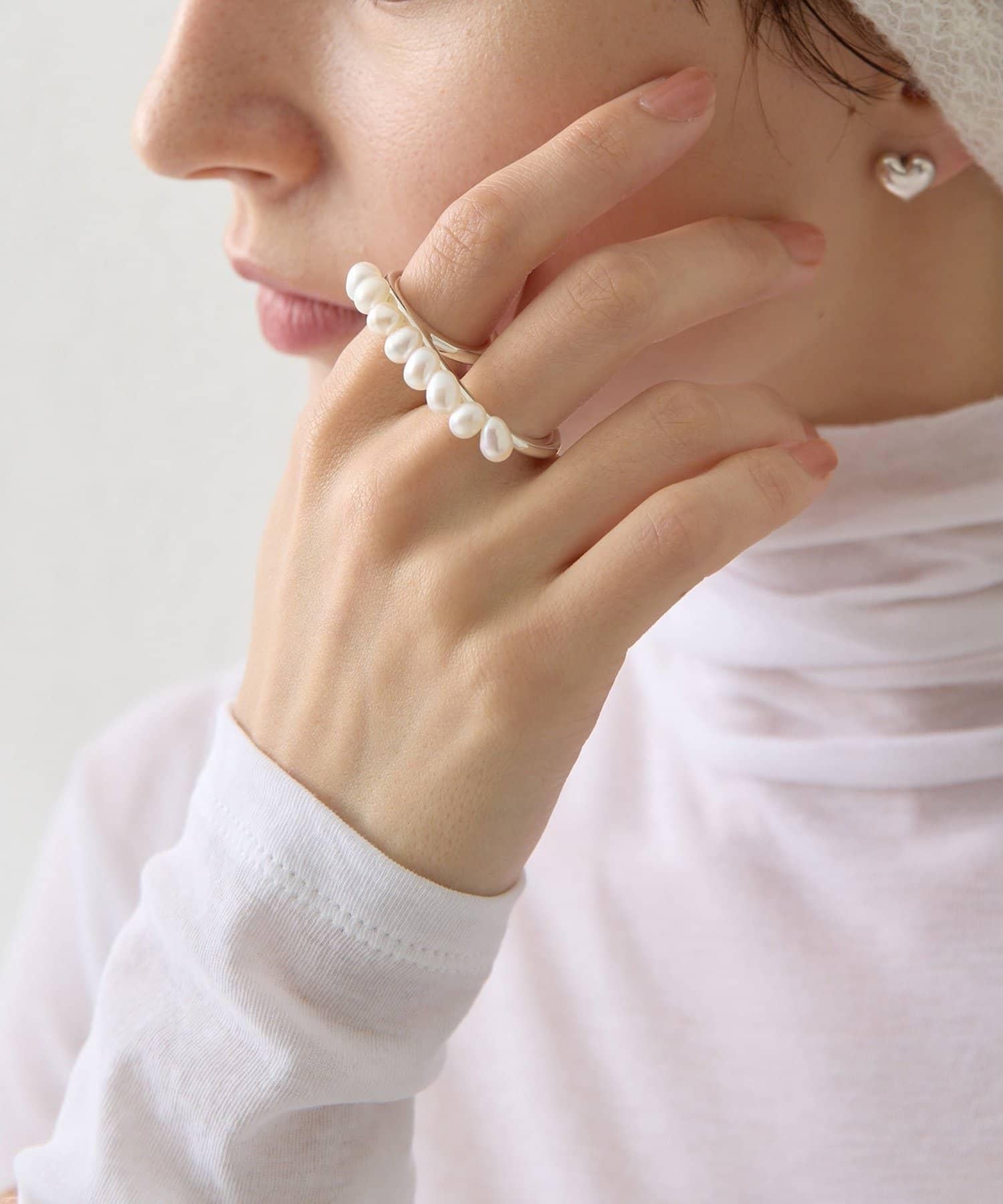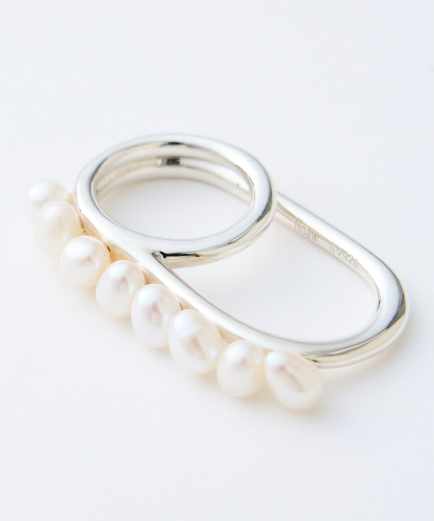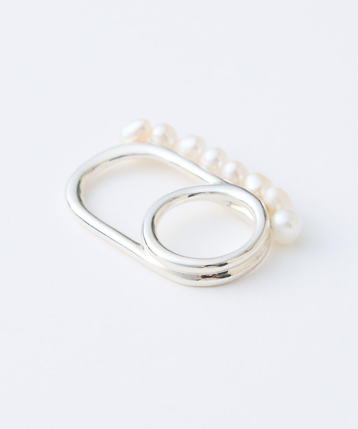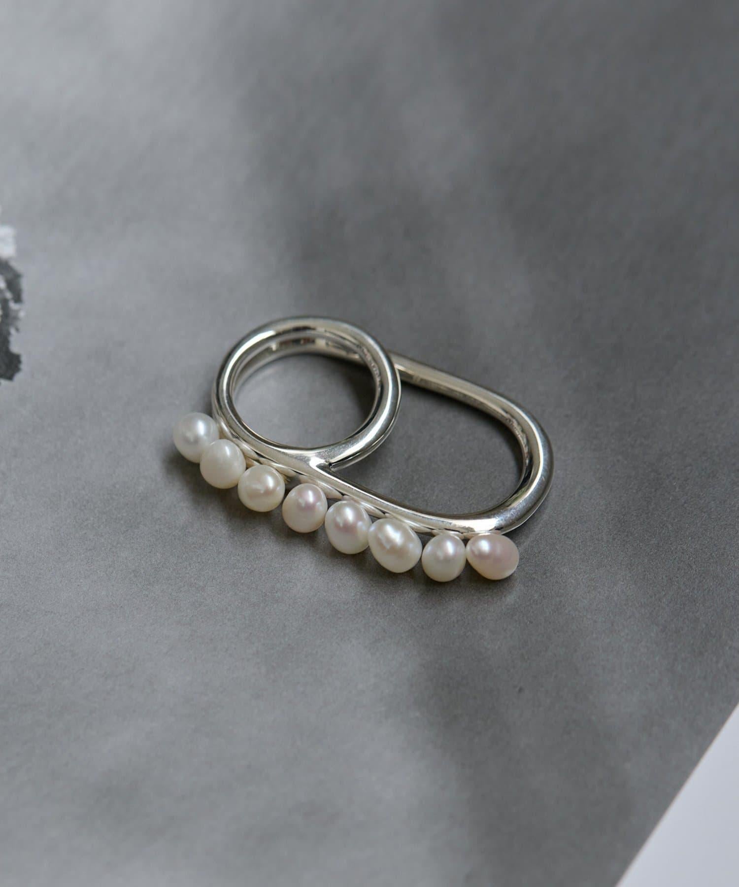 這款雙指環採用簡約的輪廓設計,與凹凸不平的珍珠巧妙地保持平衡。