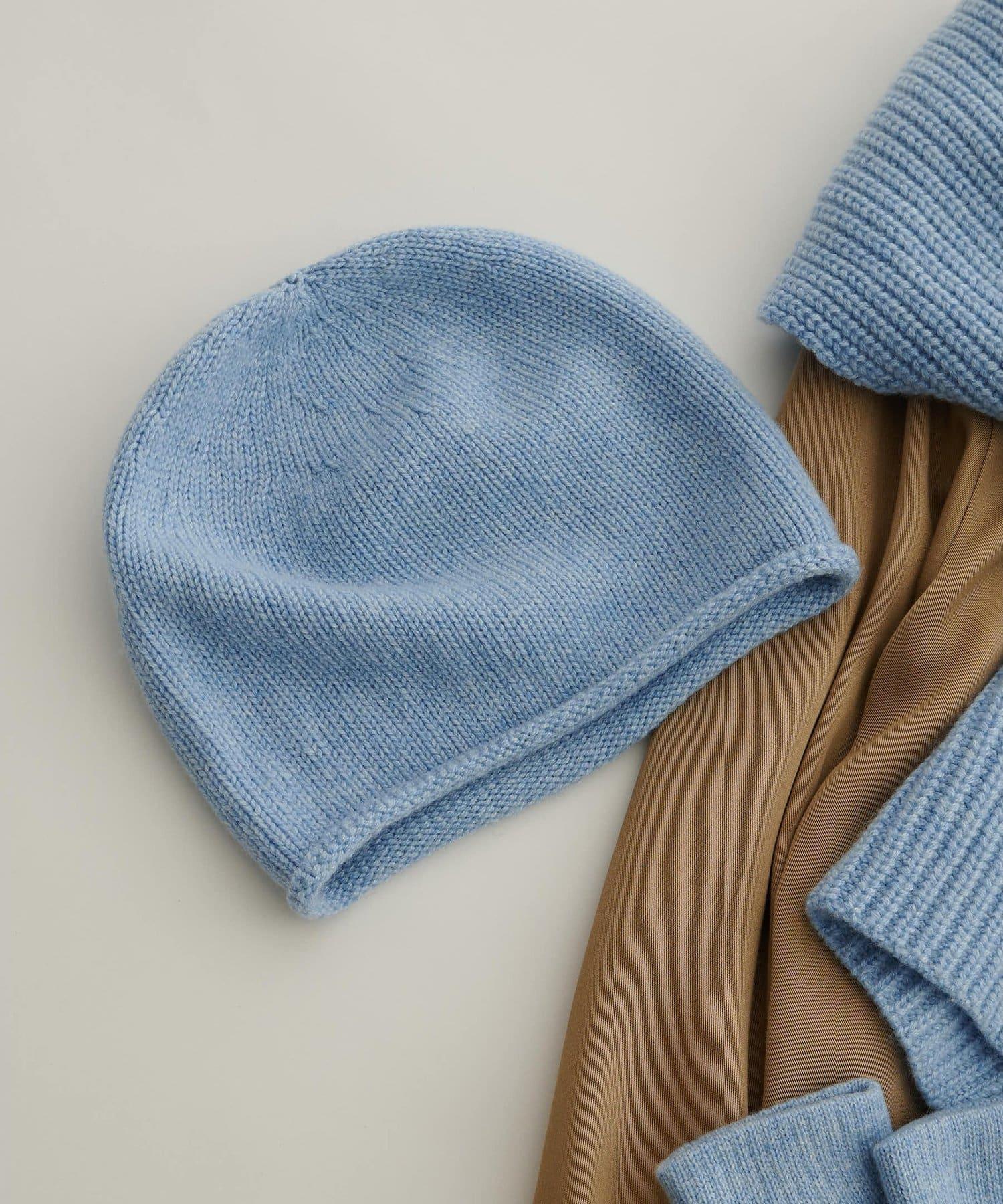 這款針織小圓帽採用細紗精心編織而成,下襬採用卷邊設計。